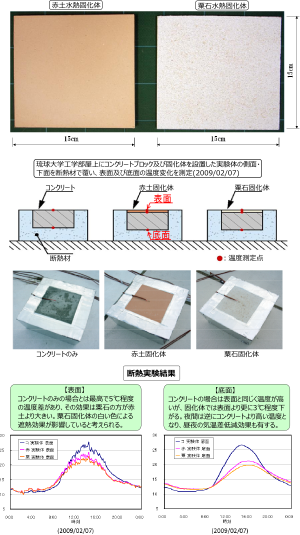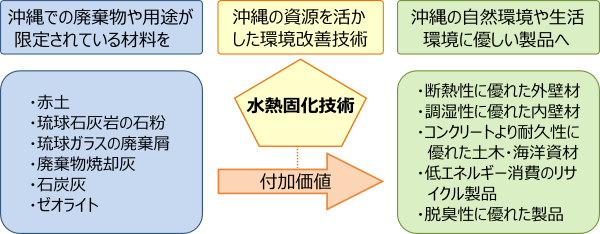 グリーンアースでは水熱固化技術を「沖縄の資源を活かした環境改善技術」として、沖縄での廃棄物や用途が限定されている材料を、沖縄の自然環境や生活環境に優しい製品へと、高い付加価値を付けるための研究開発を実施していきます。