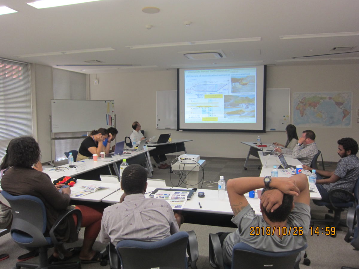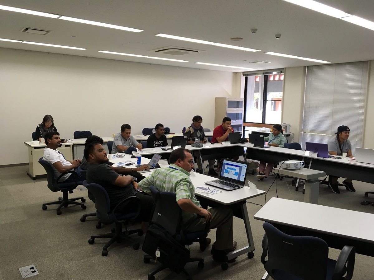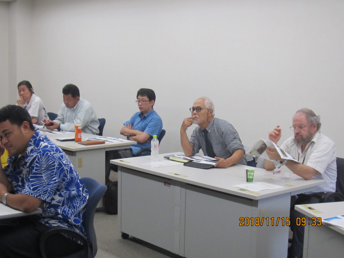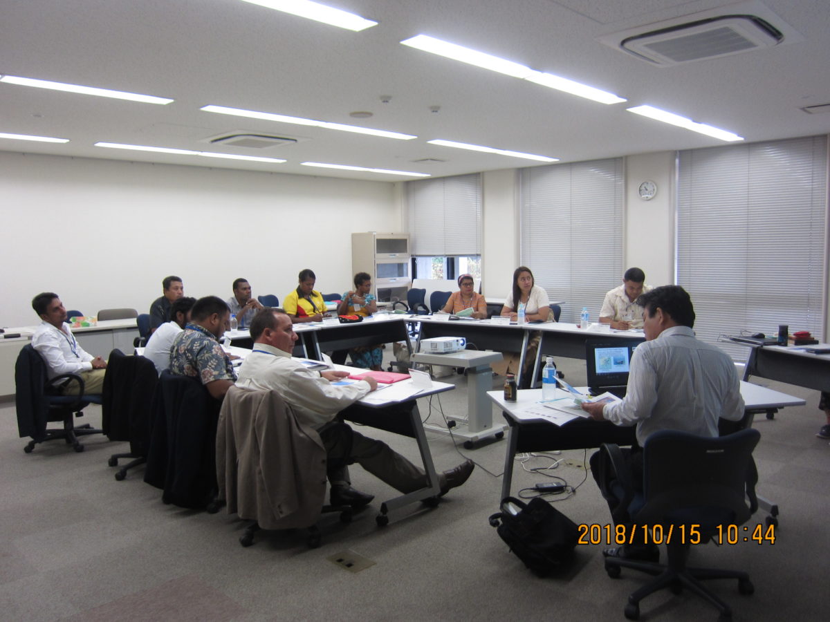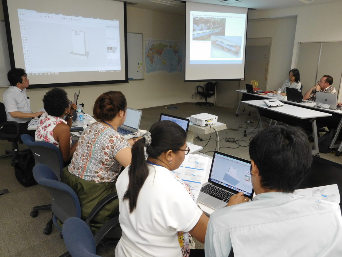 14日、15日はサマリーレポートの発表会でした。研修員がこの研修で学んだことを各自レポートに纏めて発表しました。コメンテーターとして、矢吹名誉教授(琉球大学)、藍檀教授(琉球大学)、望月企画調整官(沖縄総合事務局)、西里主任技師(沖縄県土木建築部)、及び松田課長(しまたて協会)にお越し頂き、各研修員のプレゼンに対して質疑応答をしました。各国の技術的な課題や本研修への提案も発表して頂きましたが、これからの研修会で検討して参ります。地震・津波・洪水等の災害に対する未然防止対策、備えや対応が各国共通の課題として述べられました。