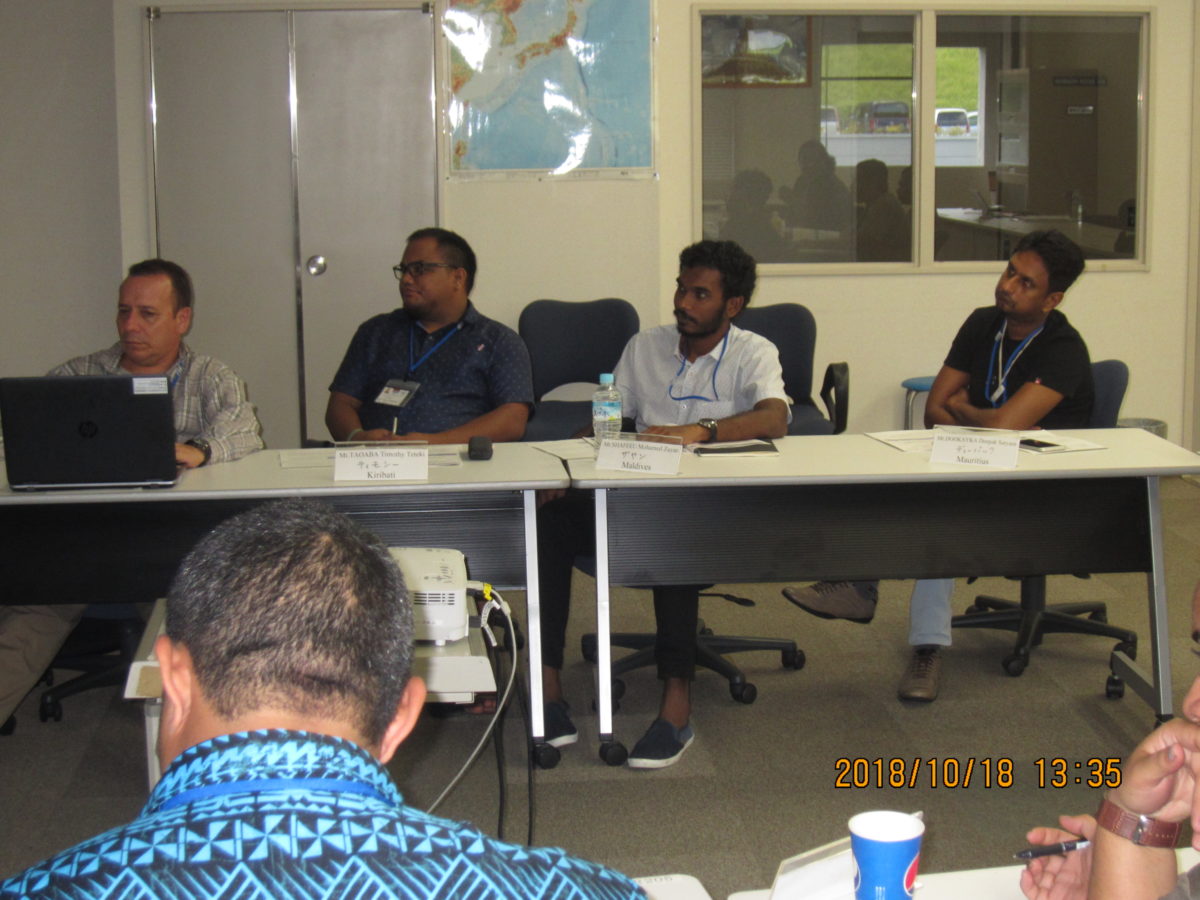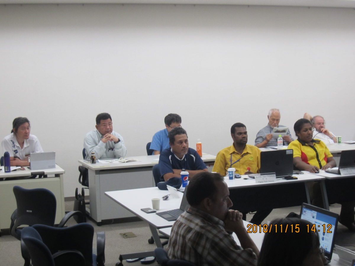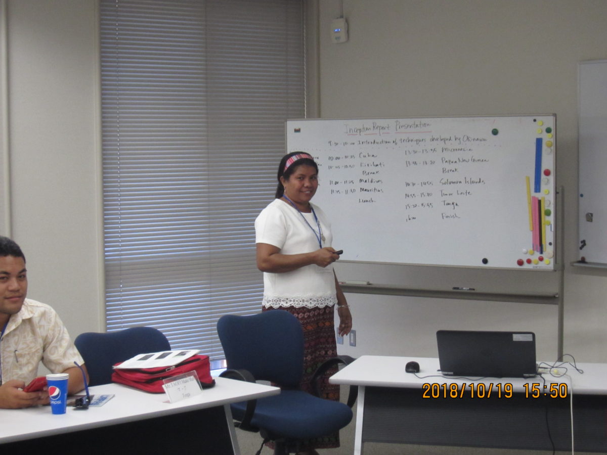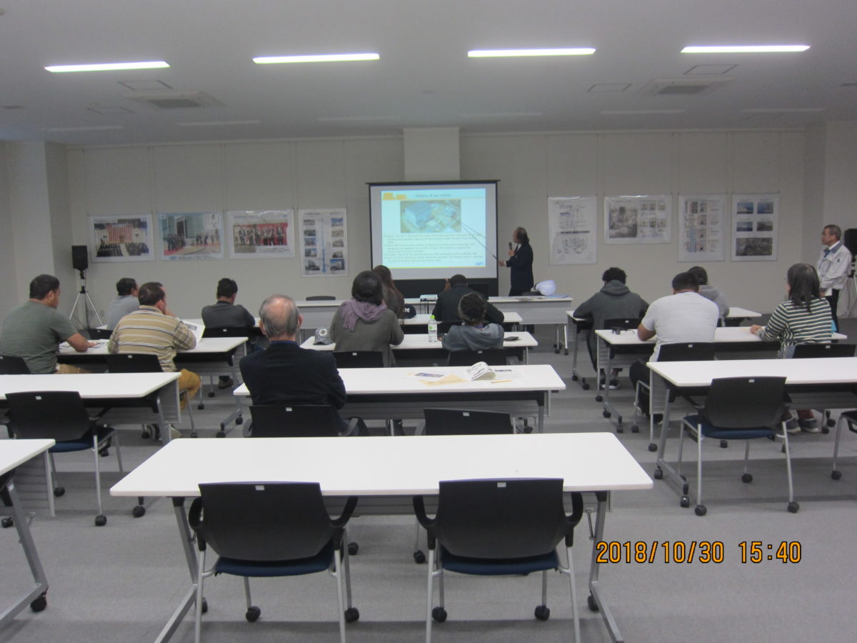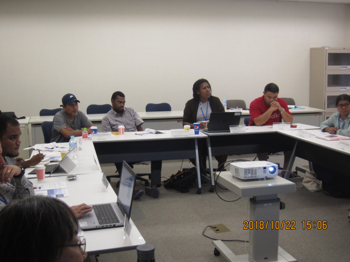 14日、15日はサマリーレポートの発表会でした。研修員がこの研修で学んだことを各自レポートに纏めて発表しました。コメンテーターとして、矢吹名誉教授(琉球大学)、藍檀教授(琉球大学)、望月企画調整官(沖縄総合事務局)、西里主任技師(沖縄県土木建築部)、及び松田課長(しまたて協会)にお越し頂き、各研修員のプレゼンに対して質疑応答をしました。各国の技術的な課題や本研修への提案も発表して頂きましたが、これからの研修会で検討して参ります。地震・津波・洪水等の災害に対する未然防止対策、備えや対応が各国共通の課題として述べられました。