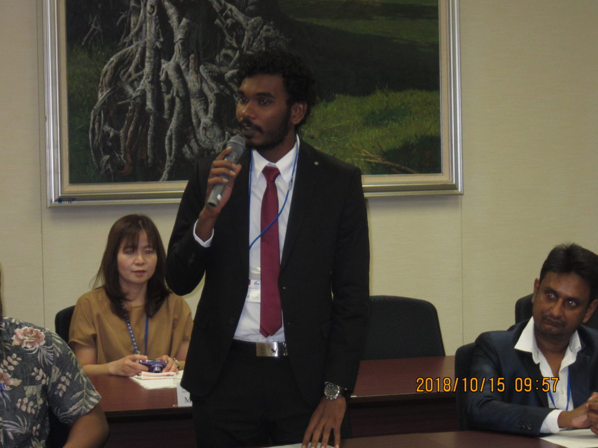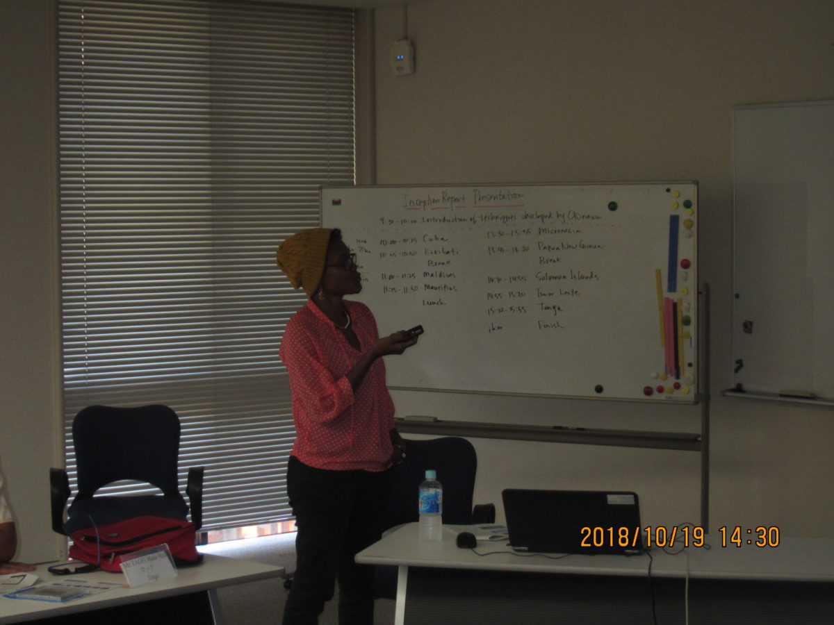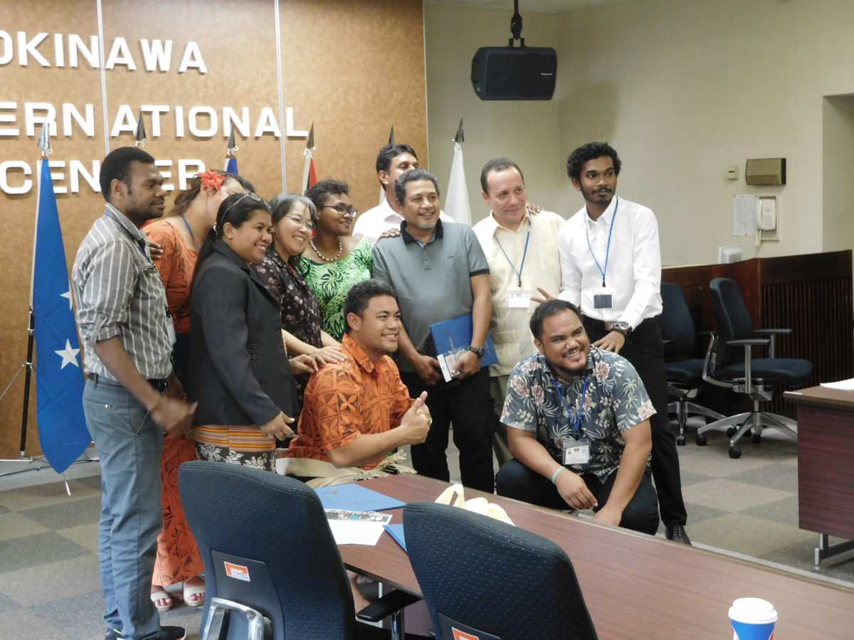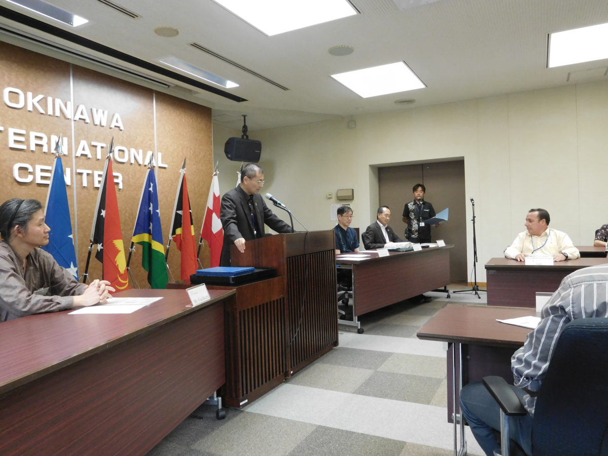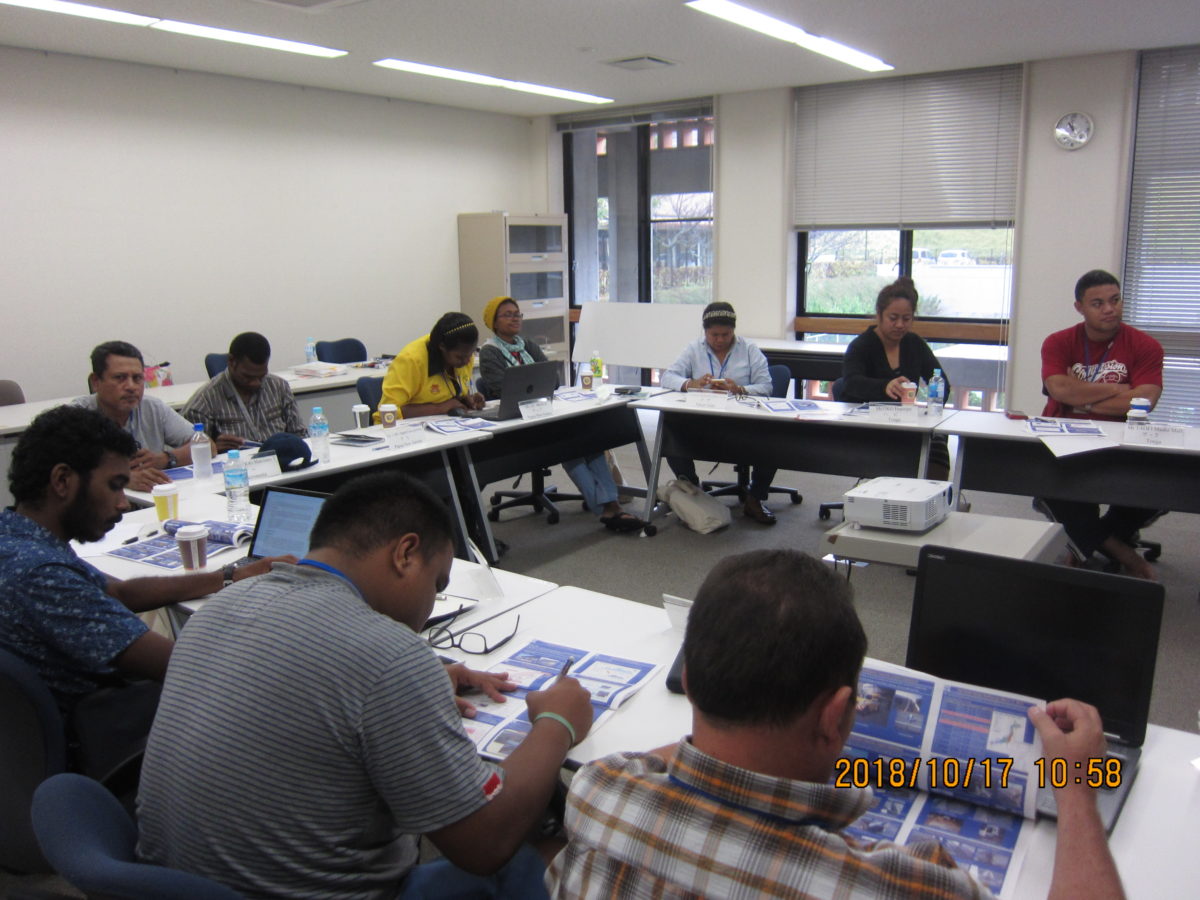 14日、15日はサマリーレポートの発表会でした。研修員がこの研修で学んだことを各自レポートに纏めて発表しました。コメンテーターとして、矢吹名誉教授(琉球大学)、藍檀教授(琉球大学)、望月企画調整官(沖縄総合事務局)、西里主任技師(沖縄県土木建築部)、及び松田課長(しまたて協会)にお越し頂き、各研修員のプレゼンに対して質疑応答をしました。各国の技術的な課題や本研修への提案も発表して頂きましたが、これからの研修会で検討して参ります。地震・津波・洪水等の災害に対する未然防止対策、備えや対応が各国共通の課題として述べられました。