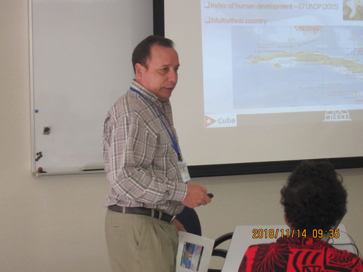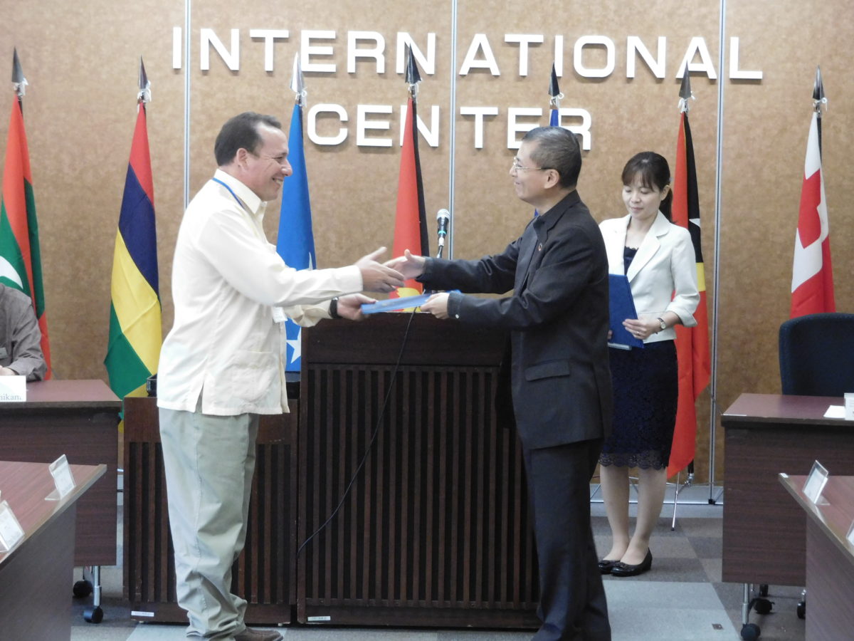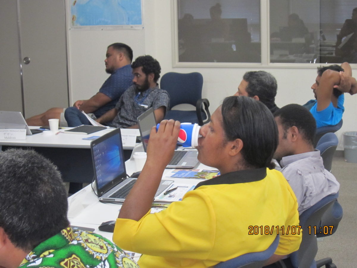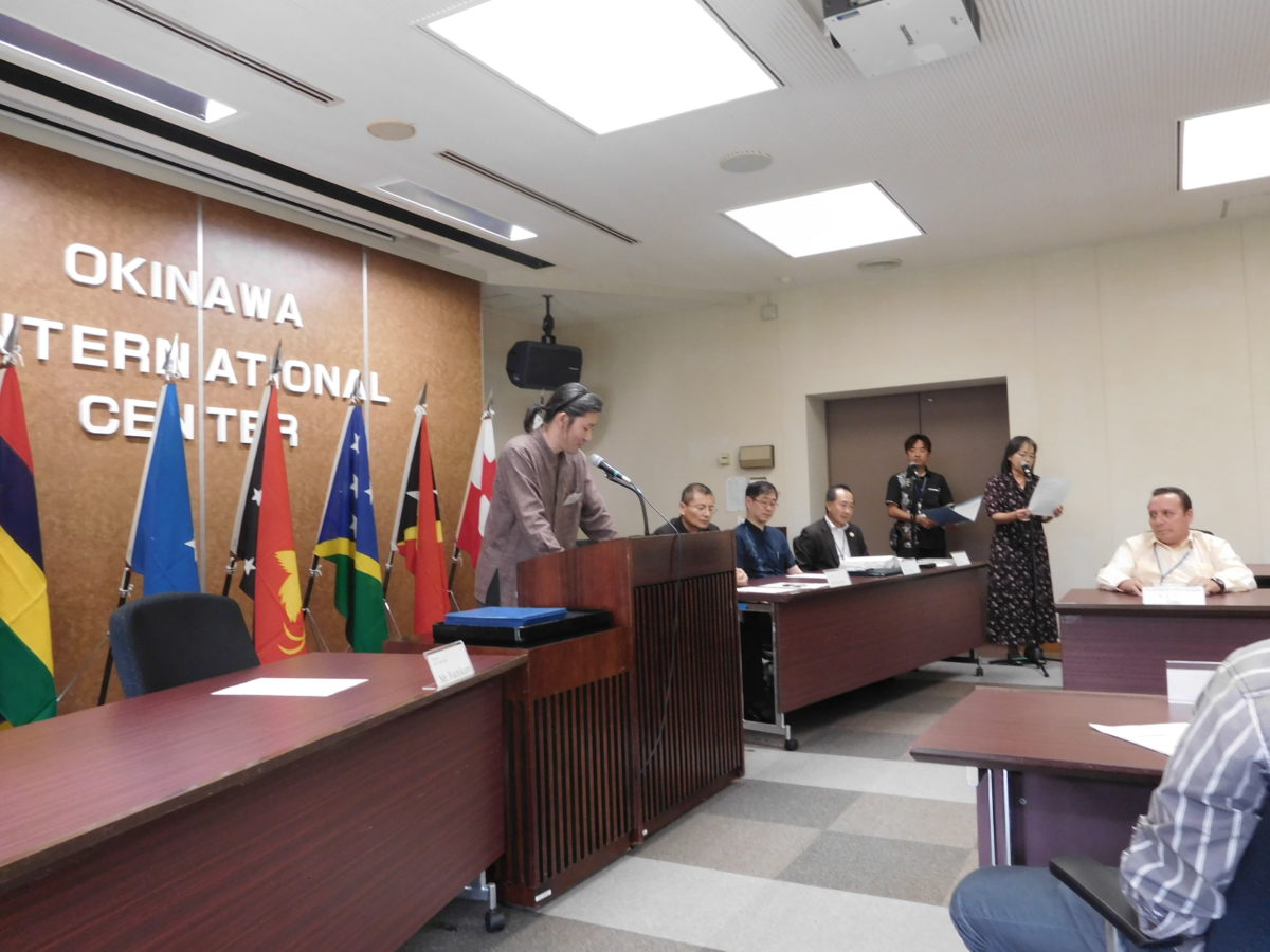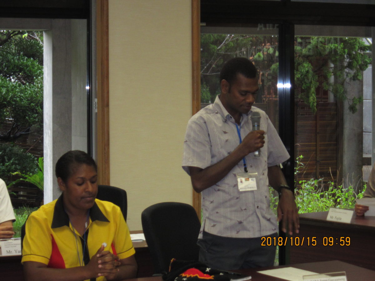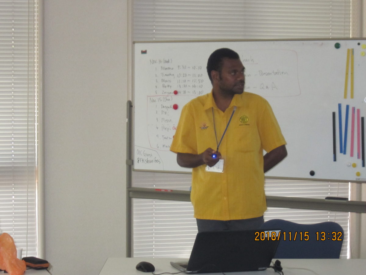 14日、15日はサマリーレポートの発表会でした。研修員がこの研修で学んだことを各自レポートに纏めて発表しました。コメンテーターとして、矢吹名誉教授(琉球大学)、藍檀教授(琉球大学)、望月企画調整官(沖縄総合事務局)、西里主任技師(沖縄県土木建築部)、及び松田課長(しまたて協会)にお越し頂き、各研修員のプレゼンに対して質疑応答をしました。各国の技術的な課題や本研修への提案も発表して頂きましたが、これからの研修会で検討して参ります。地震・津波・洪水等の災害に対する未然防止対策、備えや対応が各国共通の課題として述べられました。