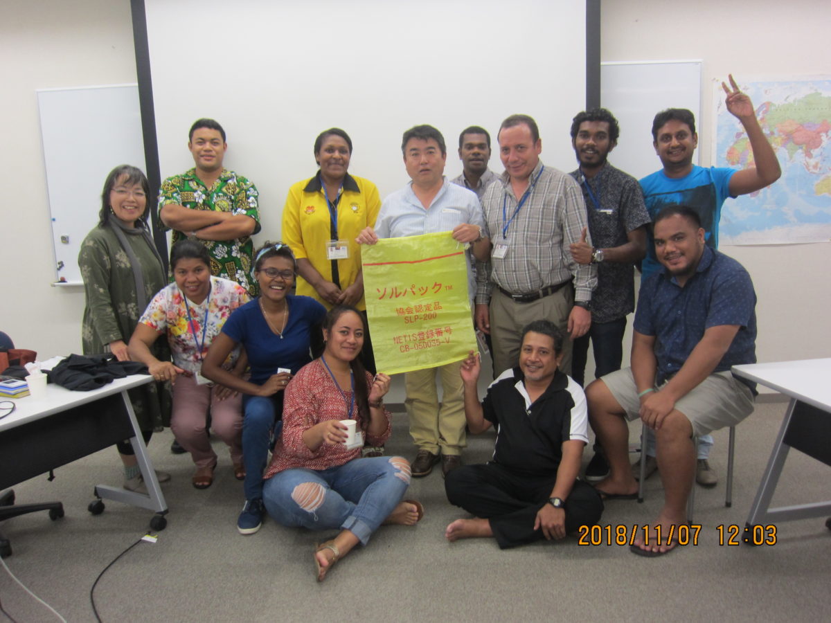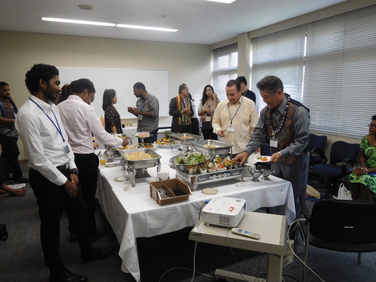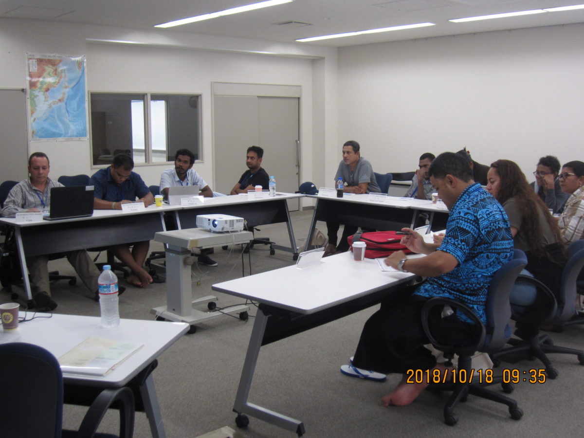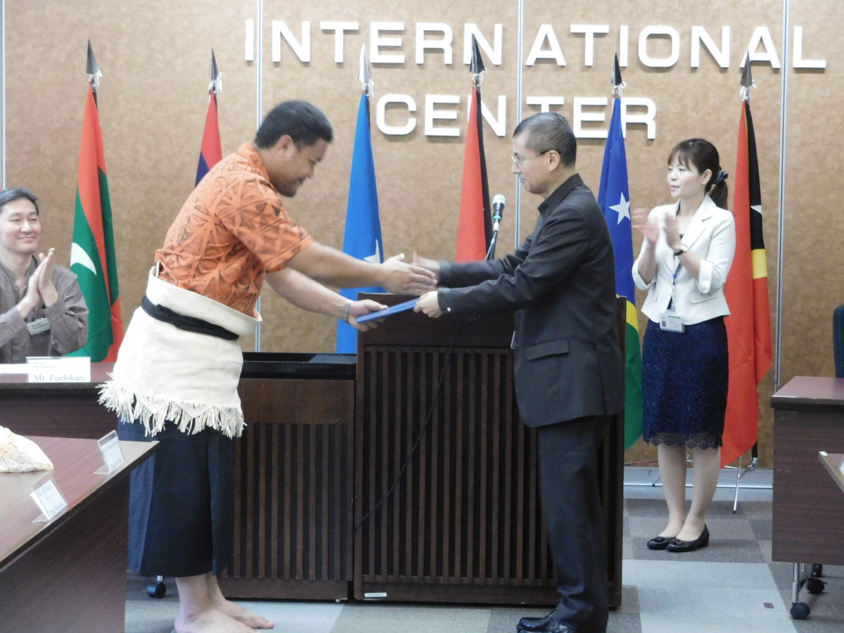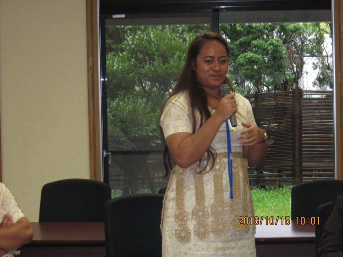 昨日で全ての研修プログラムが終了し、本日は朝10時から「Evaluation Meeting」と称し、各研修員から本コースに対する評価を聞きました。研修は満足度の高い評価を受けると同時に、さらに詳細な分野の研修コース(廃棄物処理、ドローン&3D、交通計画、構造物設計計算、現場安全管理 など)の創設を望む声が寄せられました。11:30からは閉講式を行い、その後閉講パーティが行われました。研修中の写真で作成したスライドショーやトンガの踊りなどが披露され、思い出に残るとても楽しい時間を過ごすことができました。