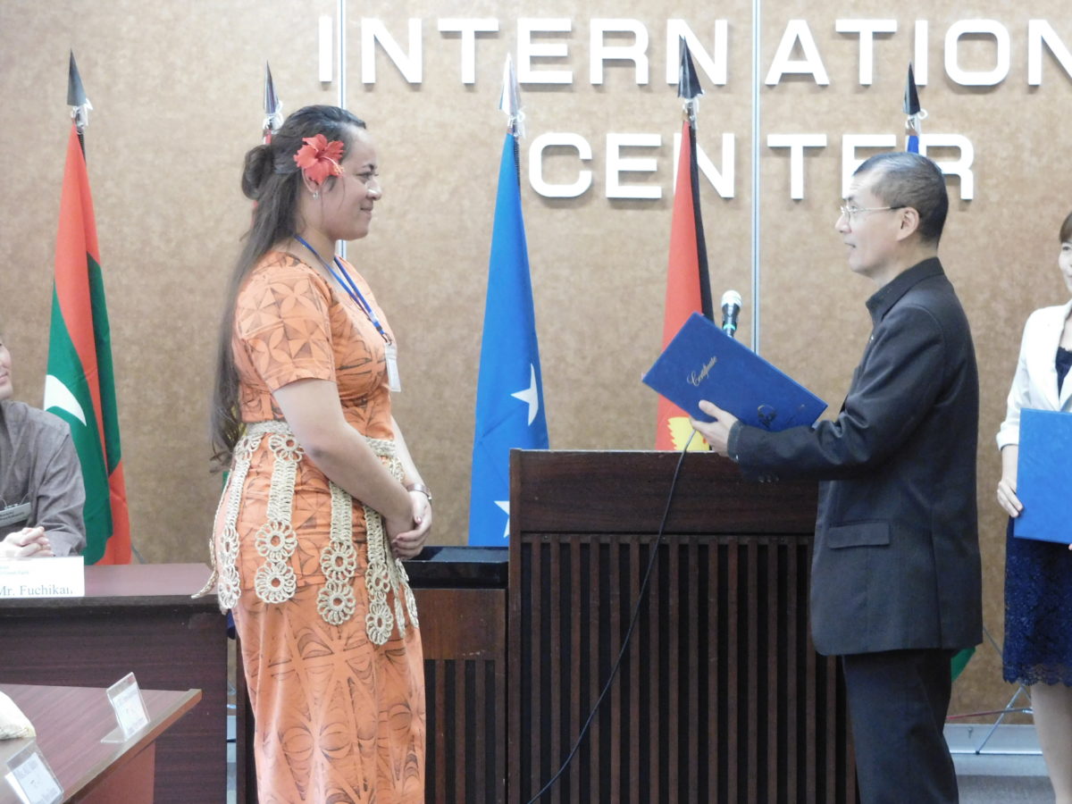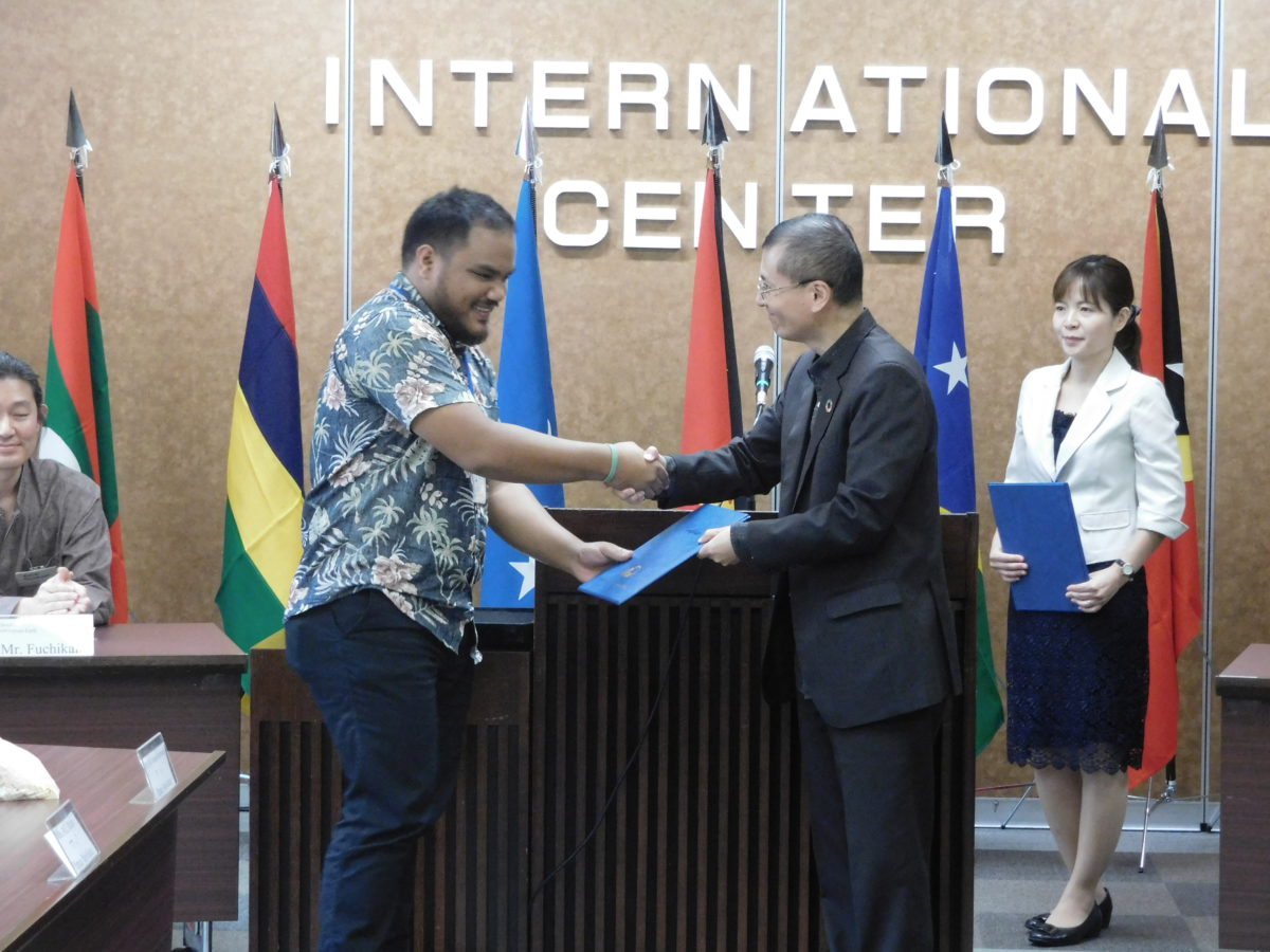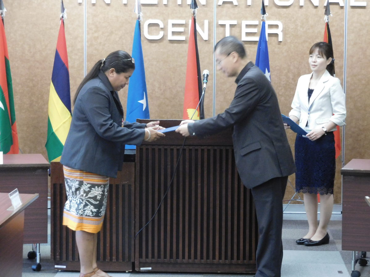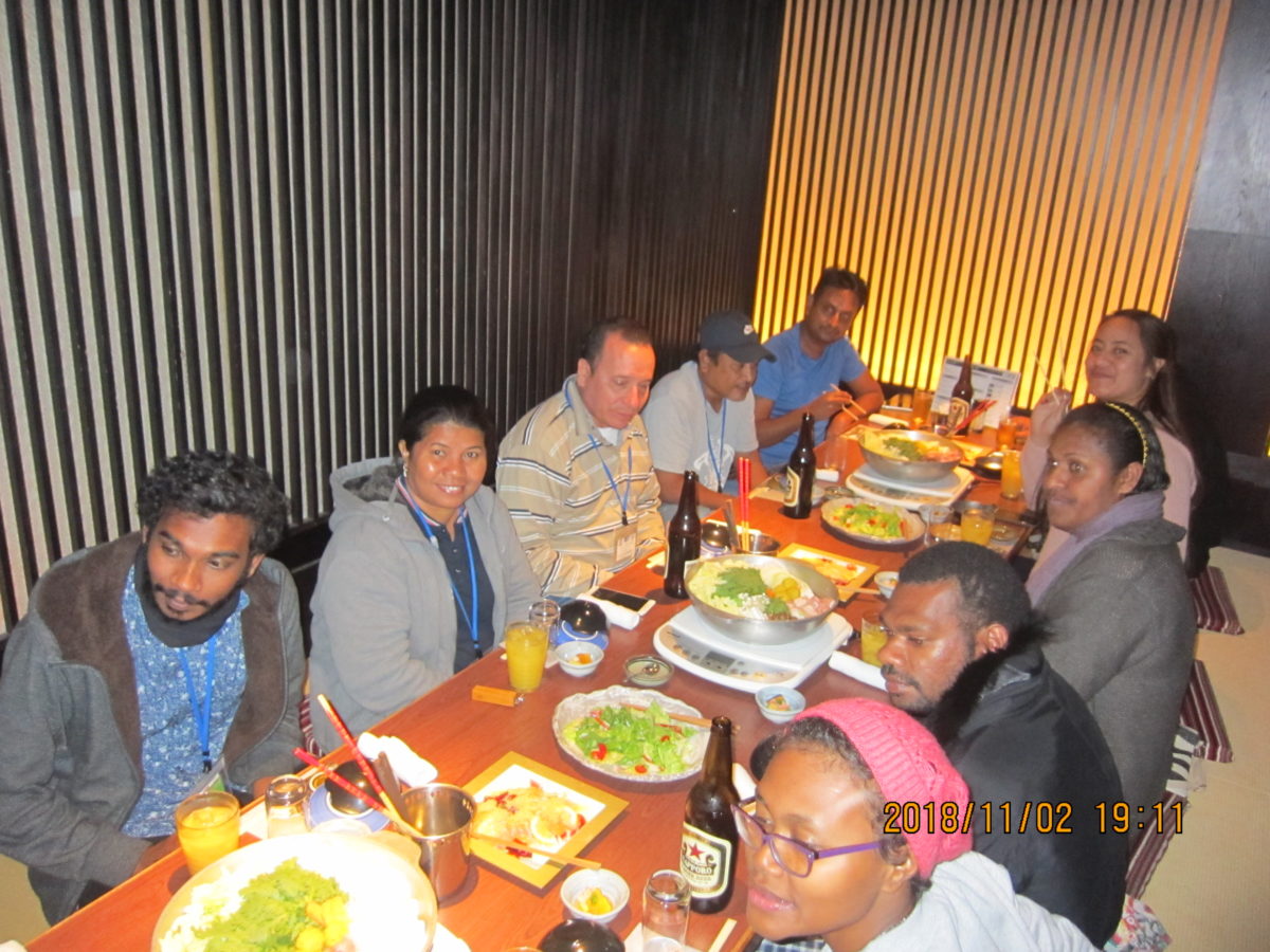昨日で全ての研修プログラムが終了し、本日は朝10時から「Evaluation Meeting」と称し、各研修員から本コースに対する評価を聞きました。研修は満足度の高い評価を受けると同時に、さらに詳細な分野の研修コース(廃棄物処理、ドローン&3D、交通計画、構造物設計計算、現場安全管理 など)の創設を望む声が寄せられました。11:30からは閉講式を行い、その後閉講パーティが行われました。研修中の写真で作成したスライドショーやトンガの踊りなどが披露され、思い出に残るとても楽しい時間を過ごすことができました。