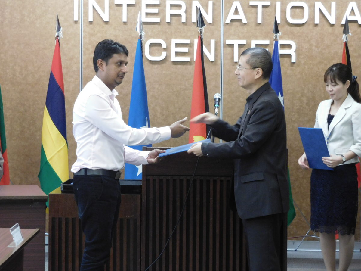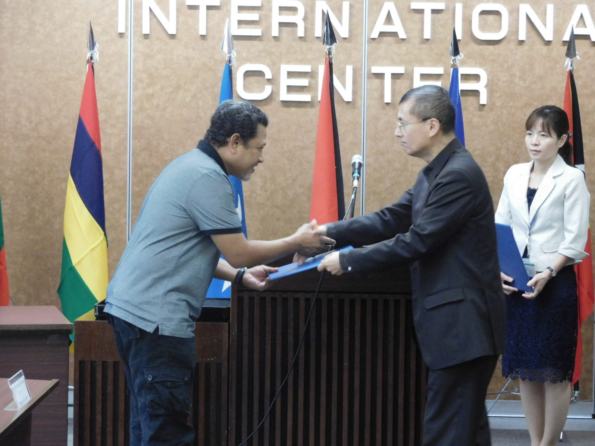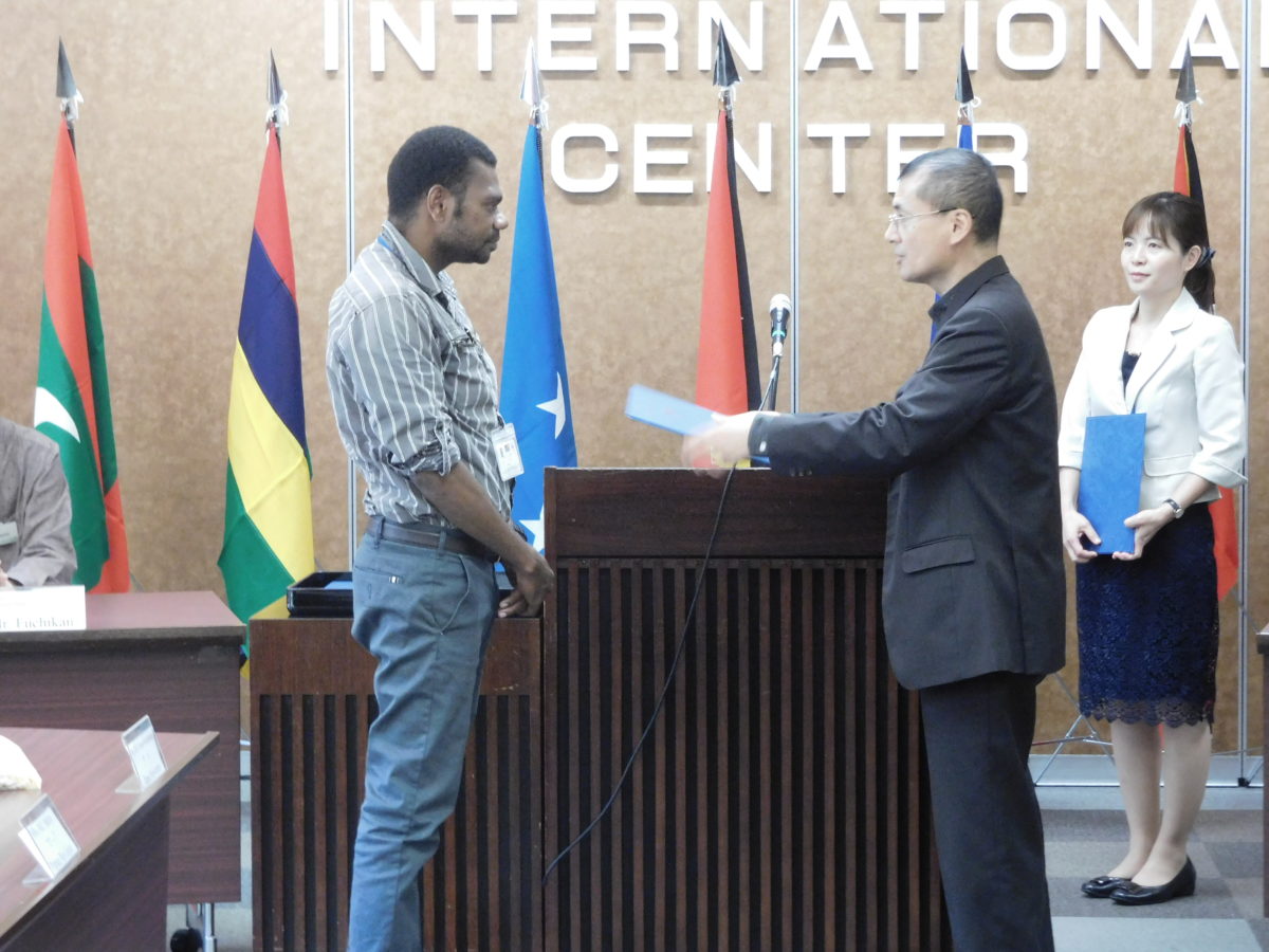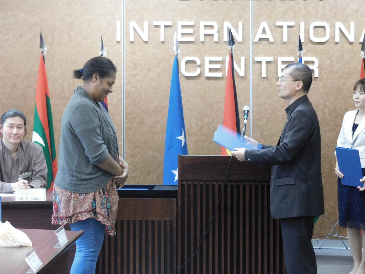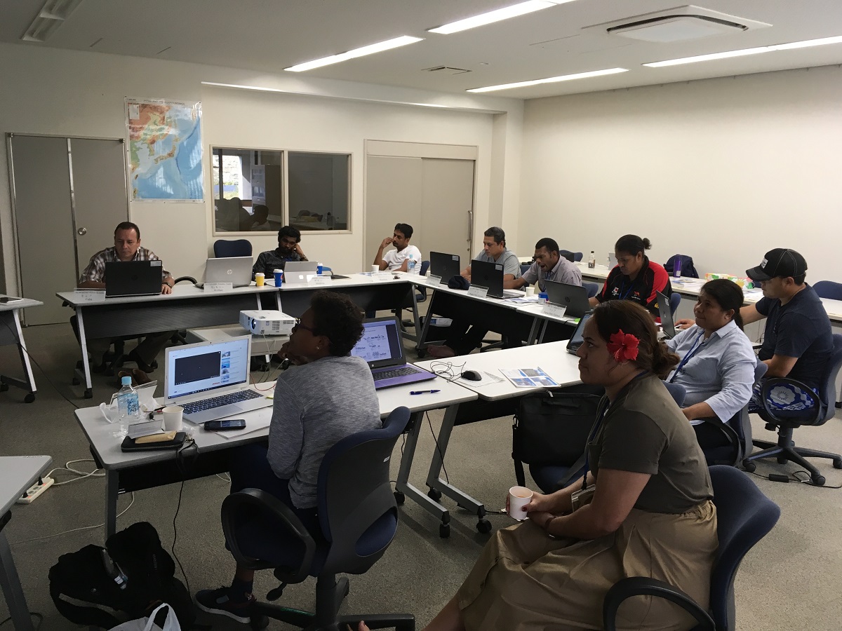 昨日で全ての研修プログラムが終了し、本日は朝10時から「Evaluation Meeting」と称し、各研修員から本コースに対する評価を聞きました。研修は満足度の高い評価を受けると同時に、さらに詳細な分野の研修コース(廃棄物処理、ドローン&3D、交通計画、構造物設計計算、現場安全管理 など)の創設を望む声が寄せられました。11:30からは閉講式を行い、その後閉講パーティが行われました。研修中の写真で作成したスライドショーやトンガの踊りなどが披露され、思い出に残るとても楽しい時間を過ごすことができました。