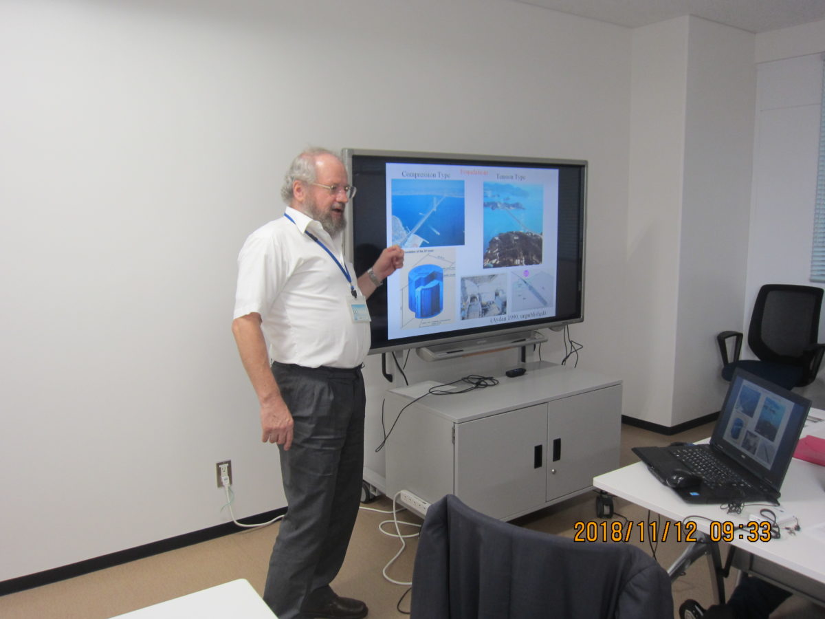 午後は(株)NDCの西川社長による「NATMの概論と施工」と題した山岳トンネルの設計・施工についての講義を受けました。母国においてトンネル建設の必要性が少ない研修生が多い状況に配慮し、基礎的な話をビデオやアニメを使ってわかりやすく解説する工夫をしました。