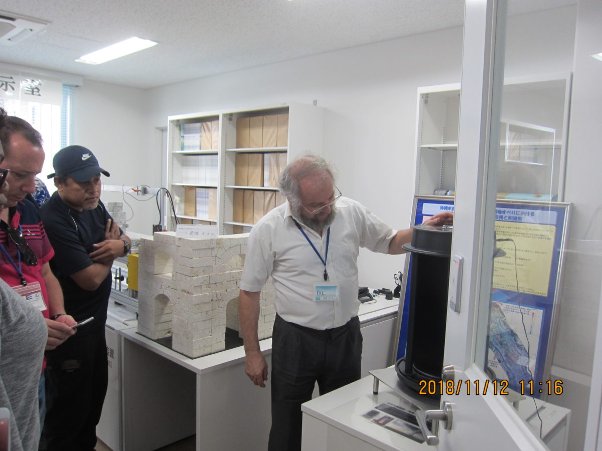 The group attended a lecture, "Road Engineering II", given by Prof. Omar Aydan at a conference room of Integrated Innovation Center for Community Building. In his presentation, he showed many pictures illustrating damages to infrastructure (road, bridge, tunnel, slope, embankment) in Japan, in particular, and in the world. He introduced examples and elaborated on the issues in road maintenance, non-destructive tests, and new design techniques utilizing Finite Element Method and drone. He then invited the group to his laboratory to show simulation tests of earthquake and tsunami.