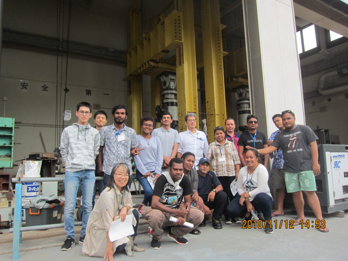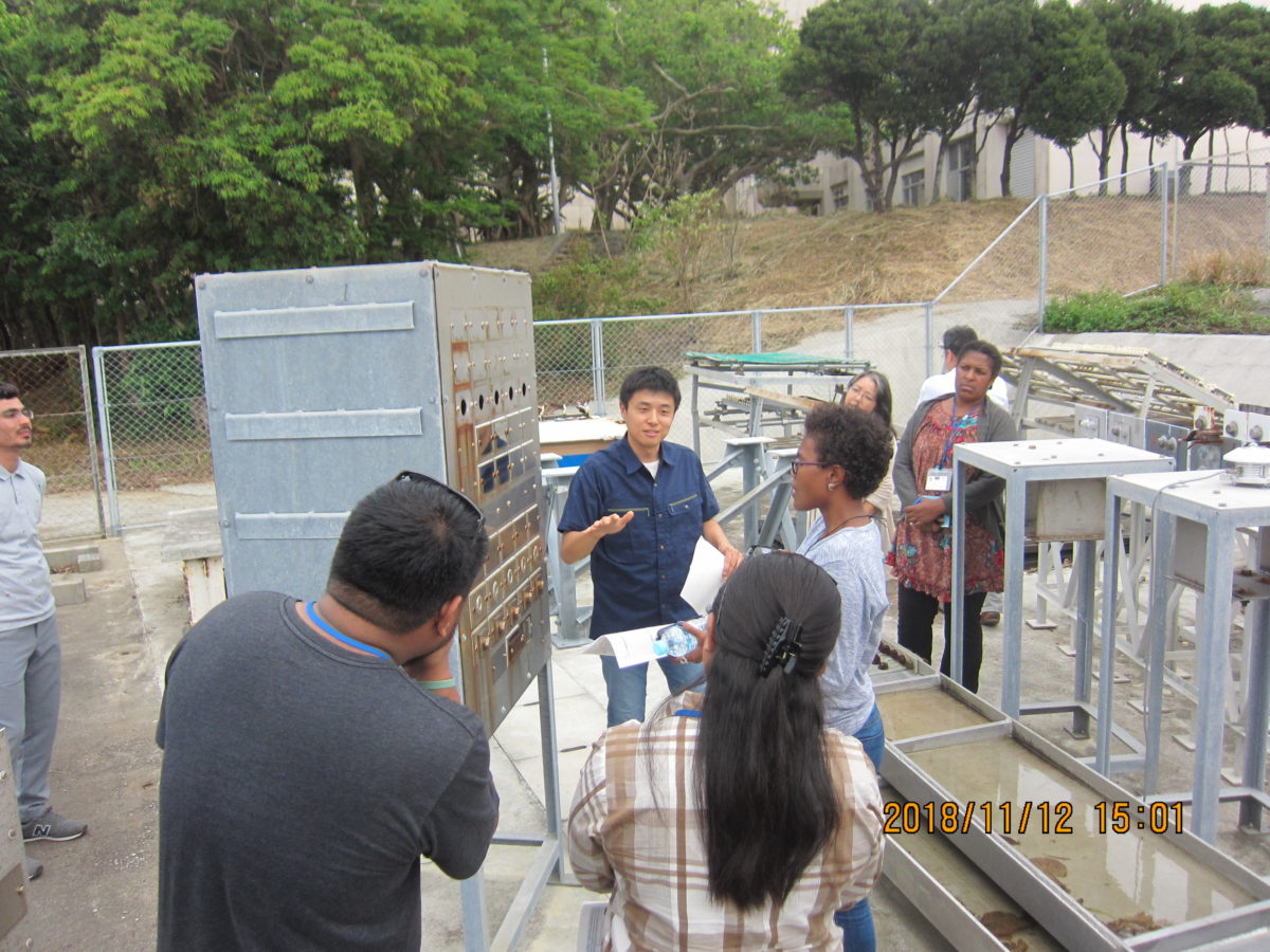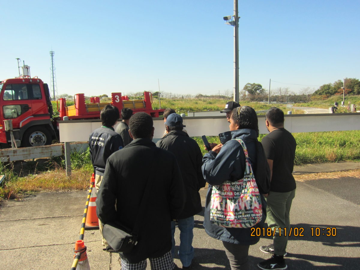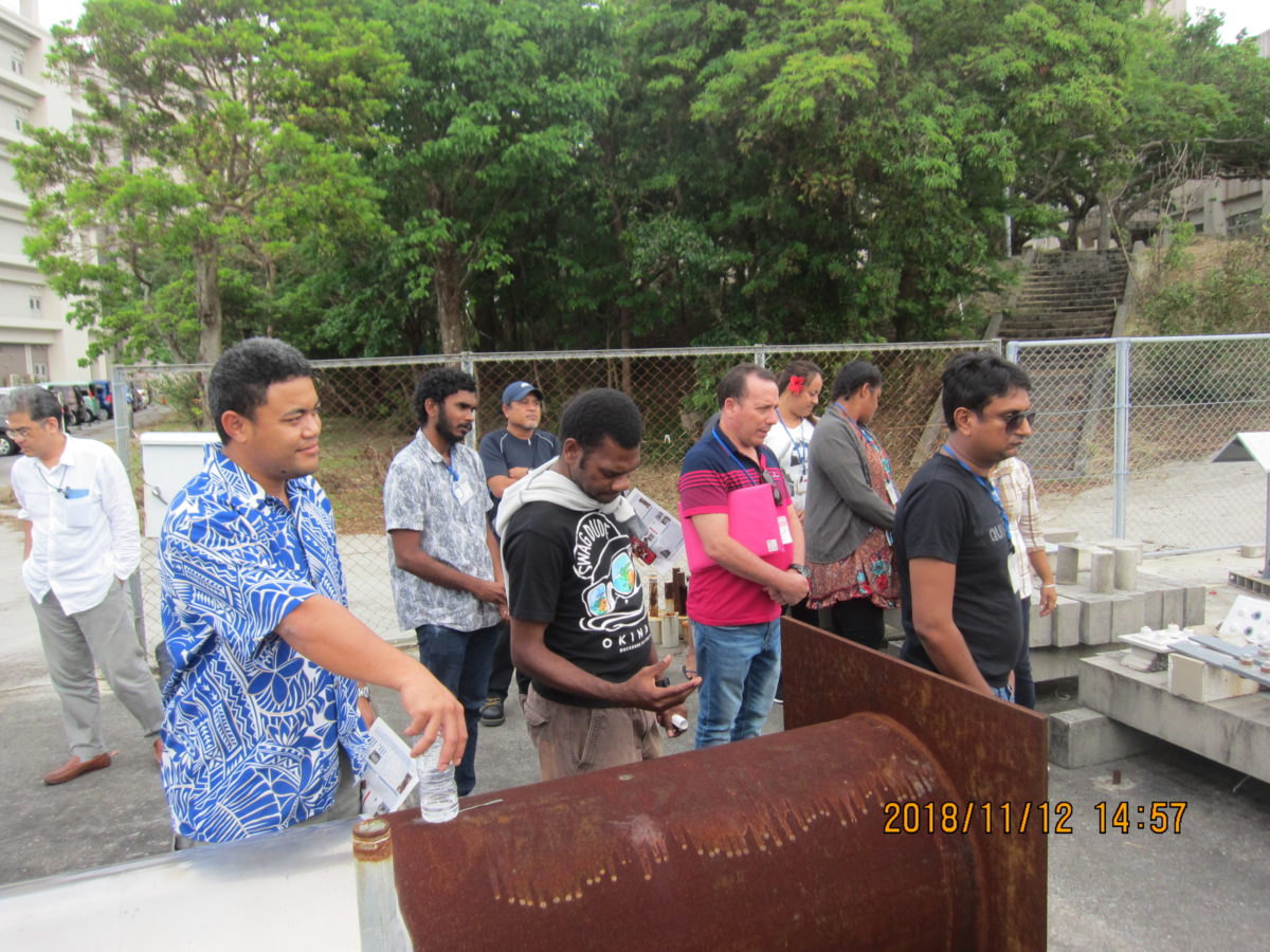 In the afternoon, Dr. Shimozato, Associate Professor, spoked about salt attack in Okinawa in his lecture at a conference room in Department of Engineering. One of his graduate students from overseas presented about hist study on load test on bridge girders. Then the faculties showed us their research equipment such as 100t load test machine and exposure test facility.