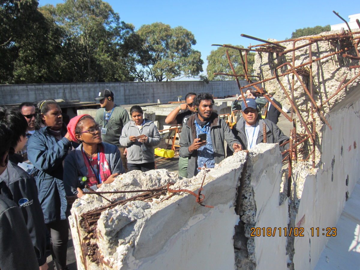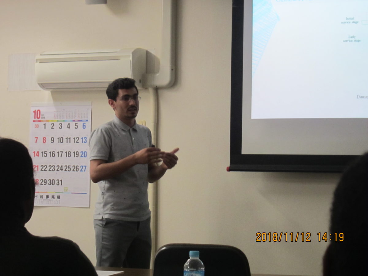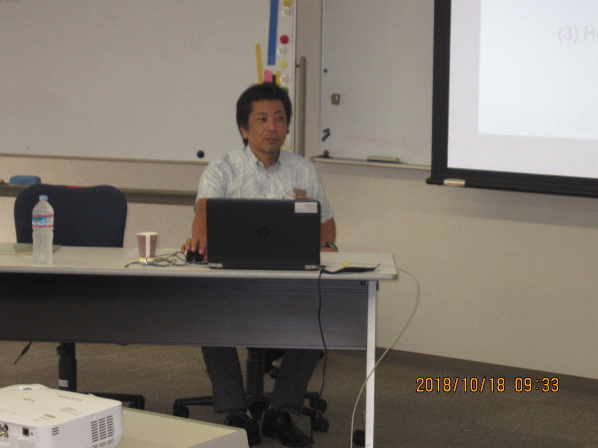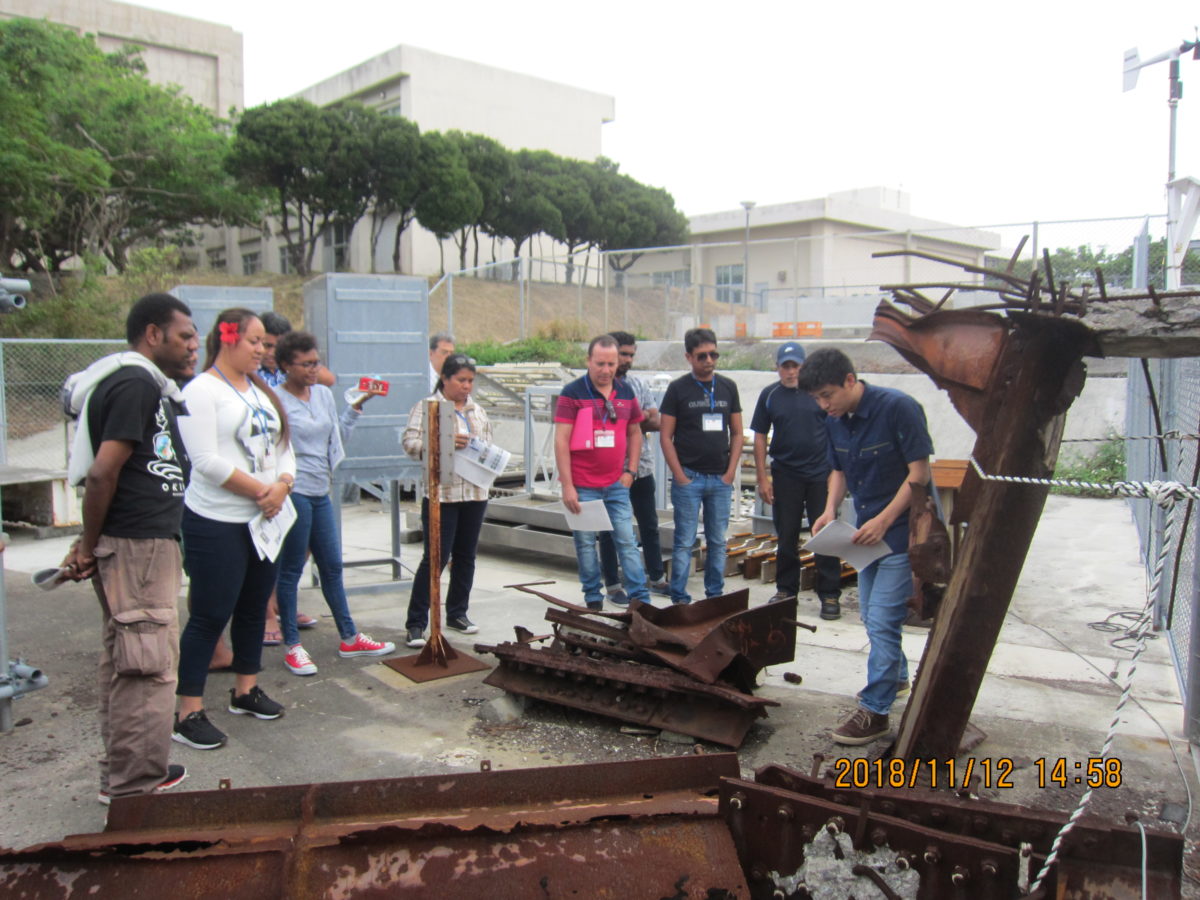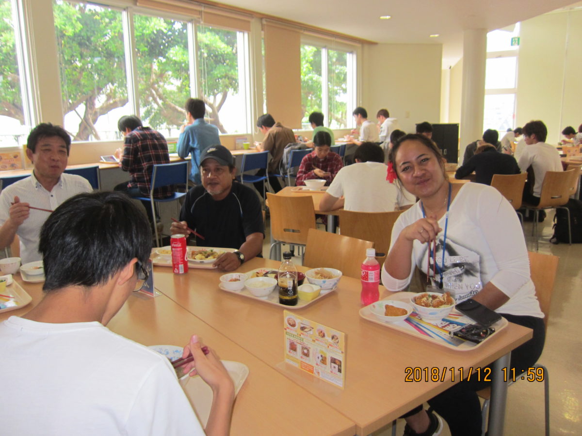 In the afternoon, Dr. Shimozato, Associate Professor, spoked about salt attack in Okinawa in his lecture at a conference room in Department of Engineering. One of his graduate students from overseas presented about hist study on load test on bridge girders. Then the faculties showed us their research equipment such as 100t load test machine and exposure test facility.