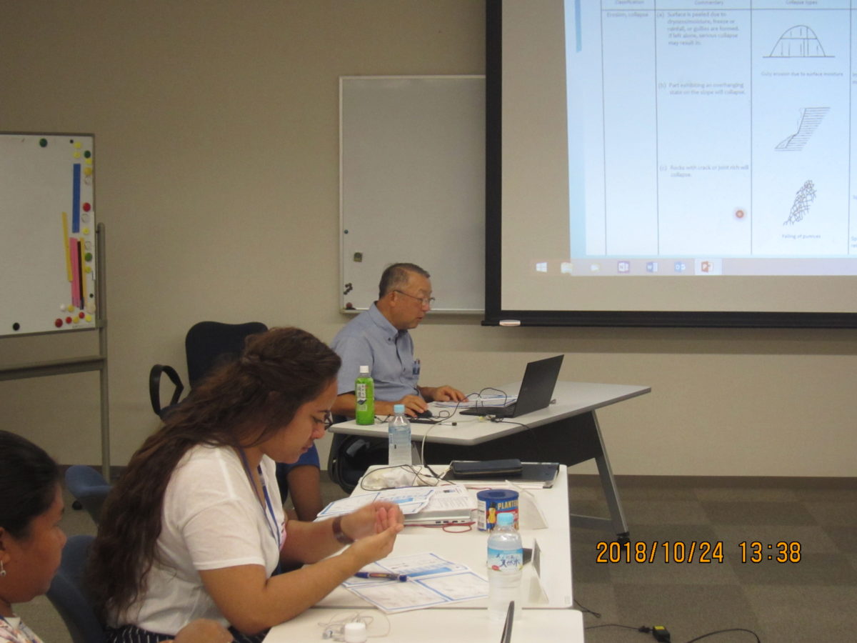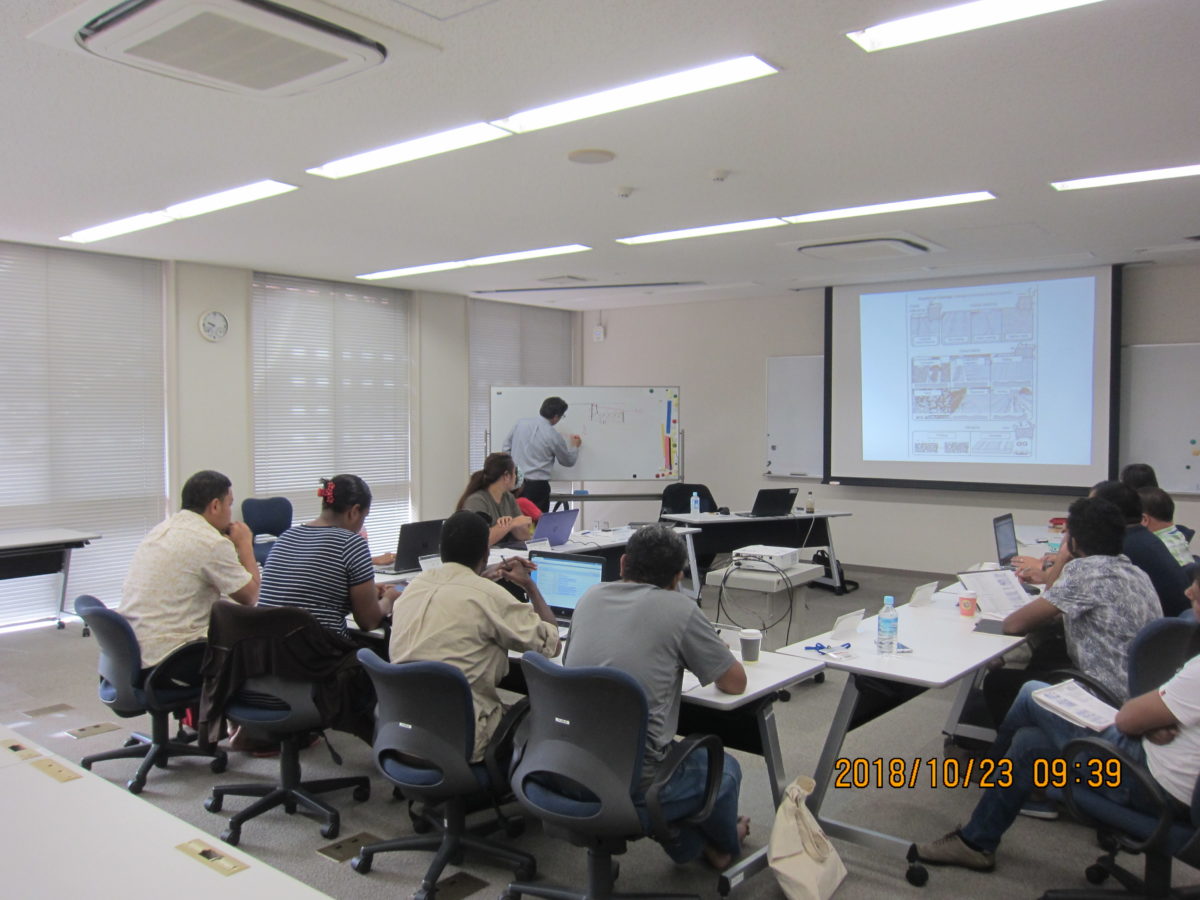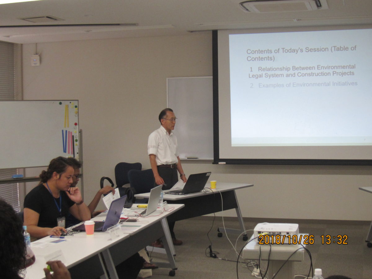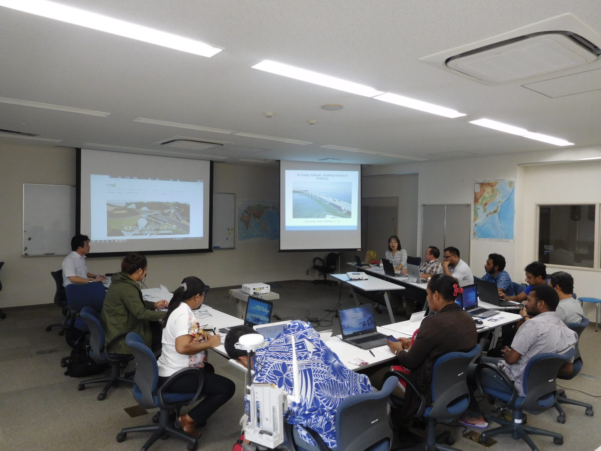 In the morning, Dr. Yabuki, Emeritus Professor at University of the Ryukyus, delivered a lecture on "Basic Concept of Infrastructures". Participants were listening attentively to his lecture. He gave some examples in Okinawa (e.g. Irabu Great Bridge) and in Tokyo (e.g. Tokyo Sky Tree). At the end of the lecture, Dr. Yabuki led a discussion with participants.