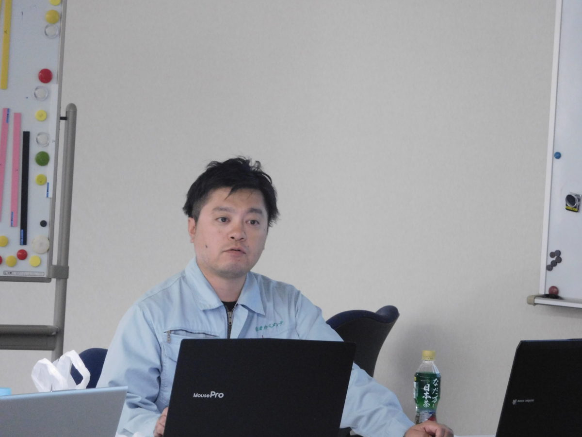 午後は、長寿補強土工の三田和朗社長に「法面マネジメント」の講義を受けました。まず、2009年の震度6弱の地震により被害を受けた東名高速道路の盛土崩壊箇所を、4日間(通常は2週間以上)で復旧した事例の紹介があり、研修員は日本の技術力の高さに驚いていました。次に、現状の法面補強の脆弱性を写真で見せながら、LCC(Life Cycle Cost)の重要性と法面に関する新たな技術や商品の説明があり、研修員は高耐久性部材に興味を示していました。