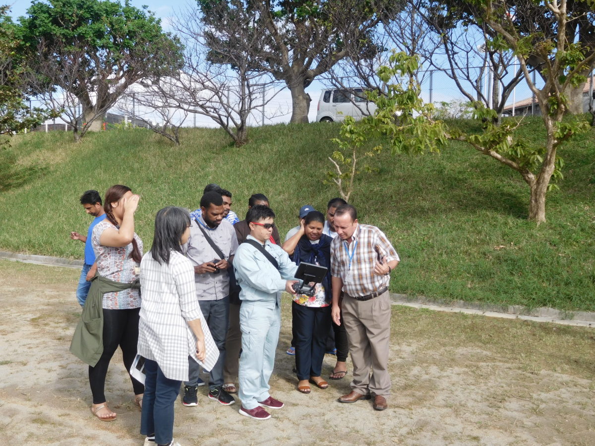 The lecture in the morning was titled, "Road Administration in Okinawa", delivered by Mr. Nagamine, Chief Engineer, Mr. Kohatsu, Chief Examiner, and Ms. Kawakami, Section Chief at Road Administration Division, Department of Civil Engineering and Construction, Okinawa Prefectural Government. Participants learnt the conditions of road and administration system in Okinawa, routine maintenance duties, various projects, and authorization and permit. The participants showed a special interest in the authorization and shared some cases in their counters. There are some countries who have not established legal structure as an enactment of road act.