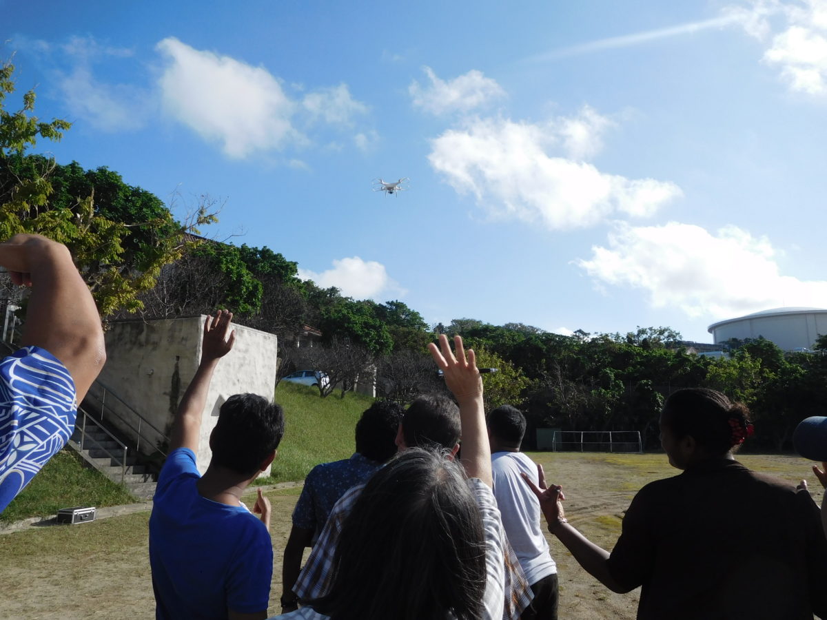 In the afternoon, after covering the outline of 3D geological survey with aerial photo taken by drone and some matters that required attention for operating drone, each participant had an experience of flying drone at OIC playground. In classroom, they checked the aerial photos, movie taking by drone, and 3D models. Participants became well aware of the significance of survey with use of drone.