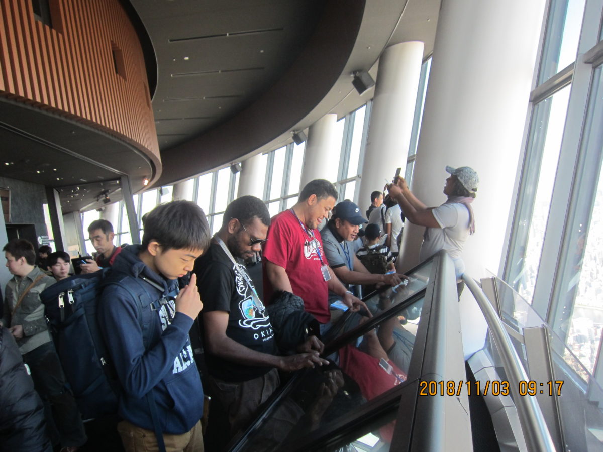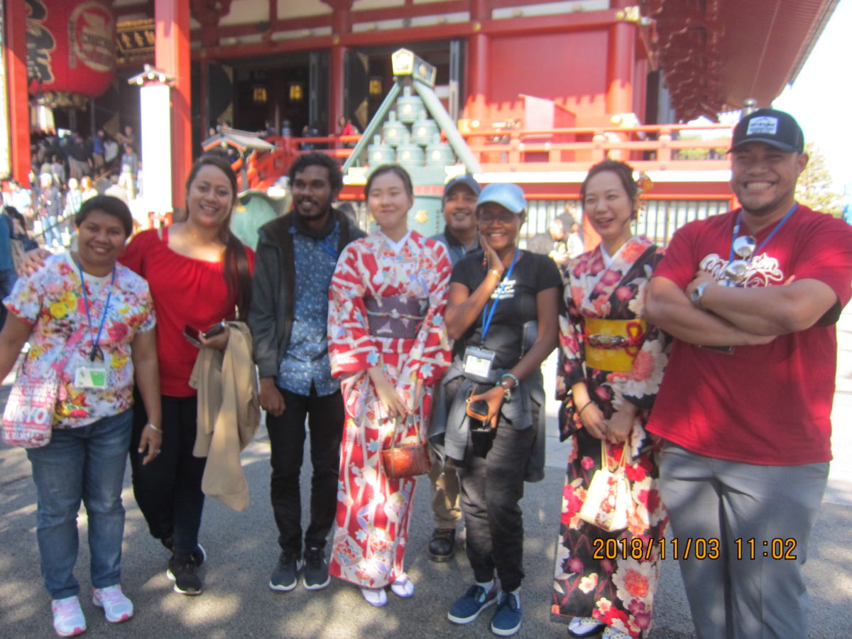 Last day in Tokyo, the group observed Asakusa area to study community road where visitors can appreciate its history, tradition, art and culture. We first went up to the observatory of Tokyo Sky Tree tower, 350m from sea level, to observe streets in Tokyo near and far from the tower and beautiful sceneries of Japan. Then we walked through Rokku- Kogyogai and Sensoji Temple, enjoying different cultural features contained in the downtown Tokyo. To our surprise, we had a wonderful encounter of a special parade of "Shirasaki-no-mai" (Dances of White Heron). We gazed in the performance, feeling as if we looked at an old painting. The whole schedule of Tokyo tour was tight but we arrived to its end. We landed in Naha before 7pm.