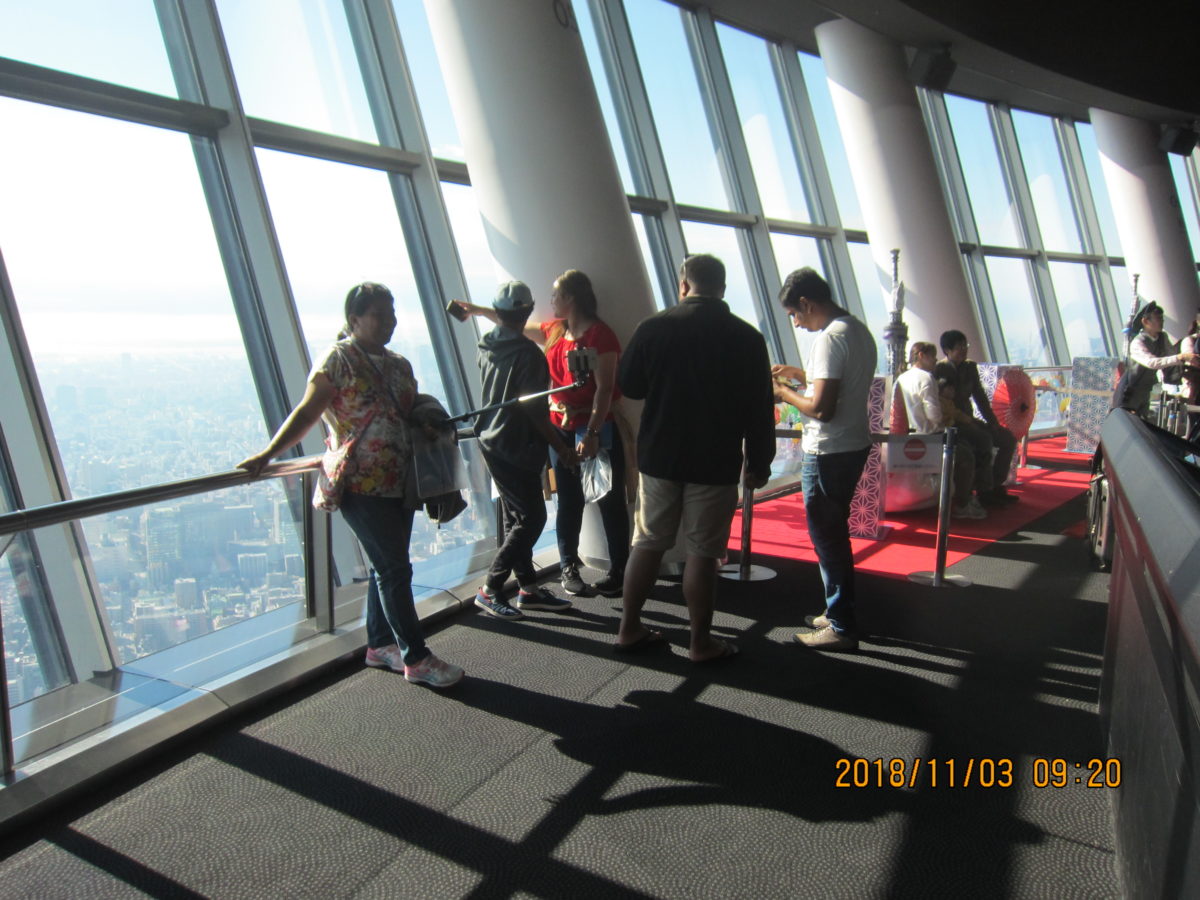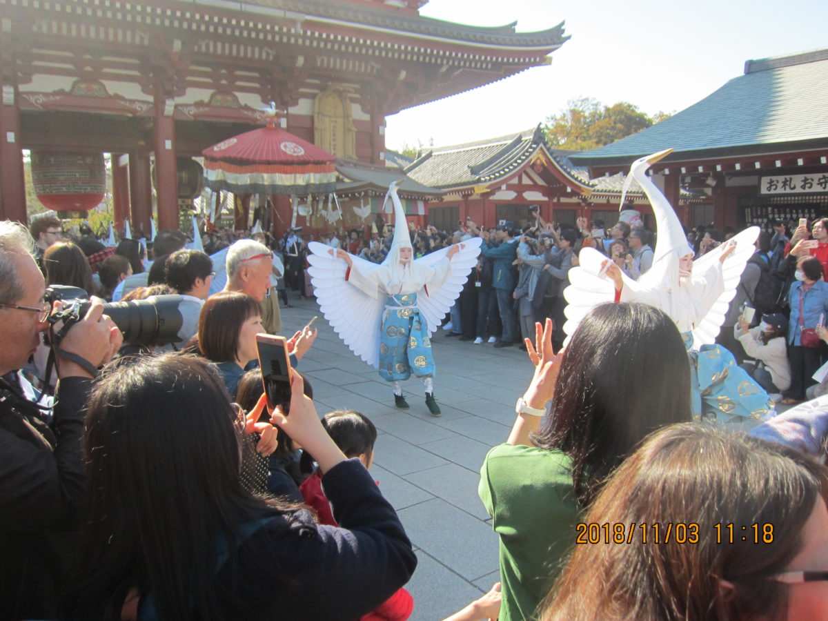 東京視察の最終日は、歴史と伝統・芸能文化に培われた街づくり、及び道路の事例として浅草地区の視察でした。まず、新タワーであるスカイツリーの350m展望台から東京の街並みや遠くの日本風景を楽しみ、次に浅草寺から六区興行街を散策し、様々な色合いの残る下町らしさを堪能しました。偶然にも、白鷺の舞の行列の行事が行われていて、優雅な絵巻に酔いしれていました。強行スケジュールにも関わらず、午後7時前に全員那覇空港に無事帰ってきました。