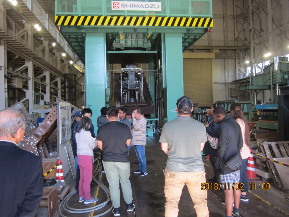 We visited National Institute for Land and Infrastructure Management (NILIM) and Public Works Research Institute (PWRI) in the morning. We were shown the test run field, paved road test field, experimental facilities for structure members, and stockyard of removed members from bridges all over Japan. The staff in charge of each section explained in detail. As an experience, our bus run the test bank at the speed of 100km/h which was one exciting event. We saw in awe the Japan's largest loading test machine which presses test structure member by the force of 30MN.