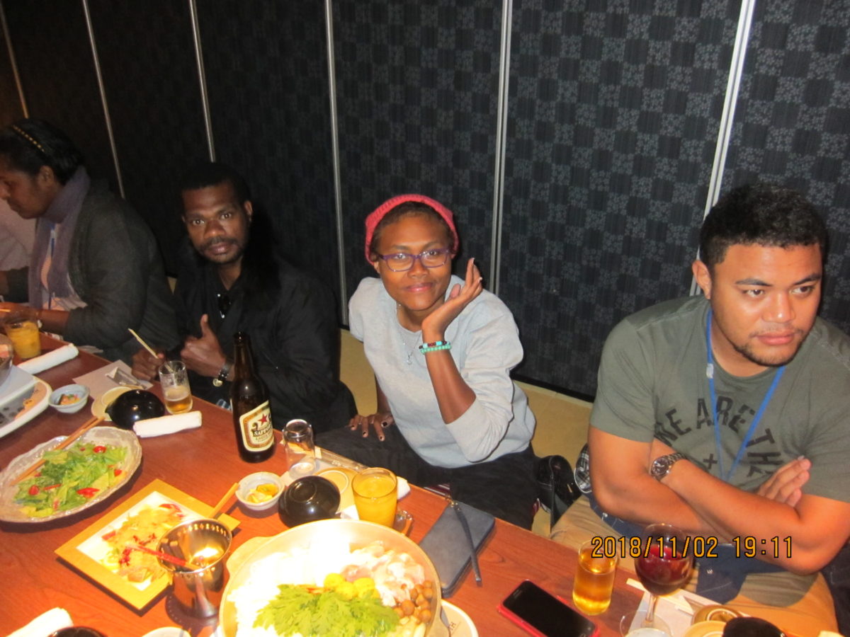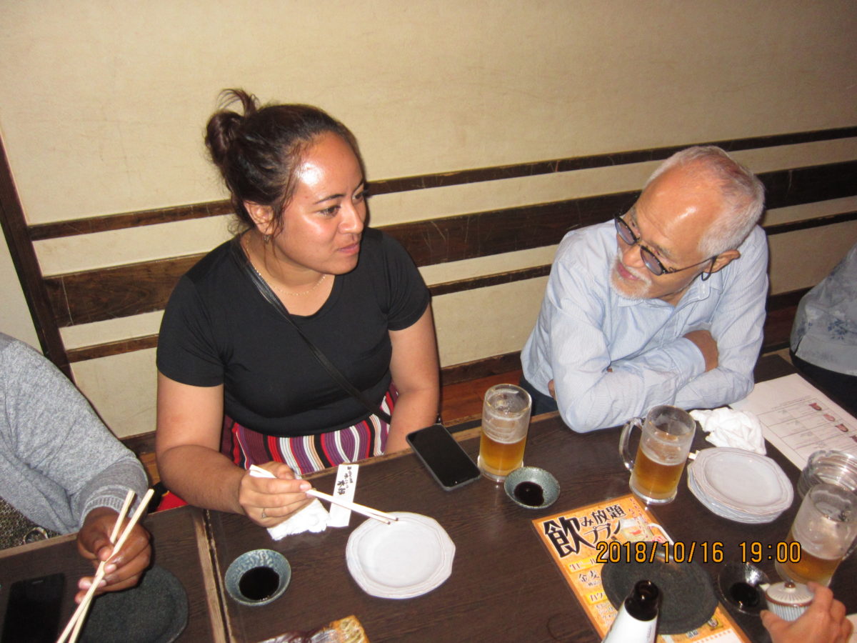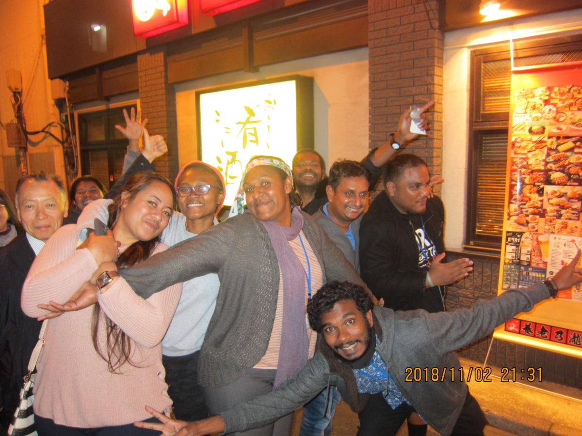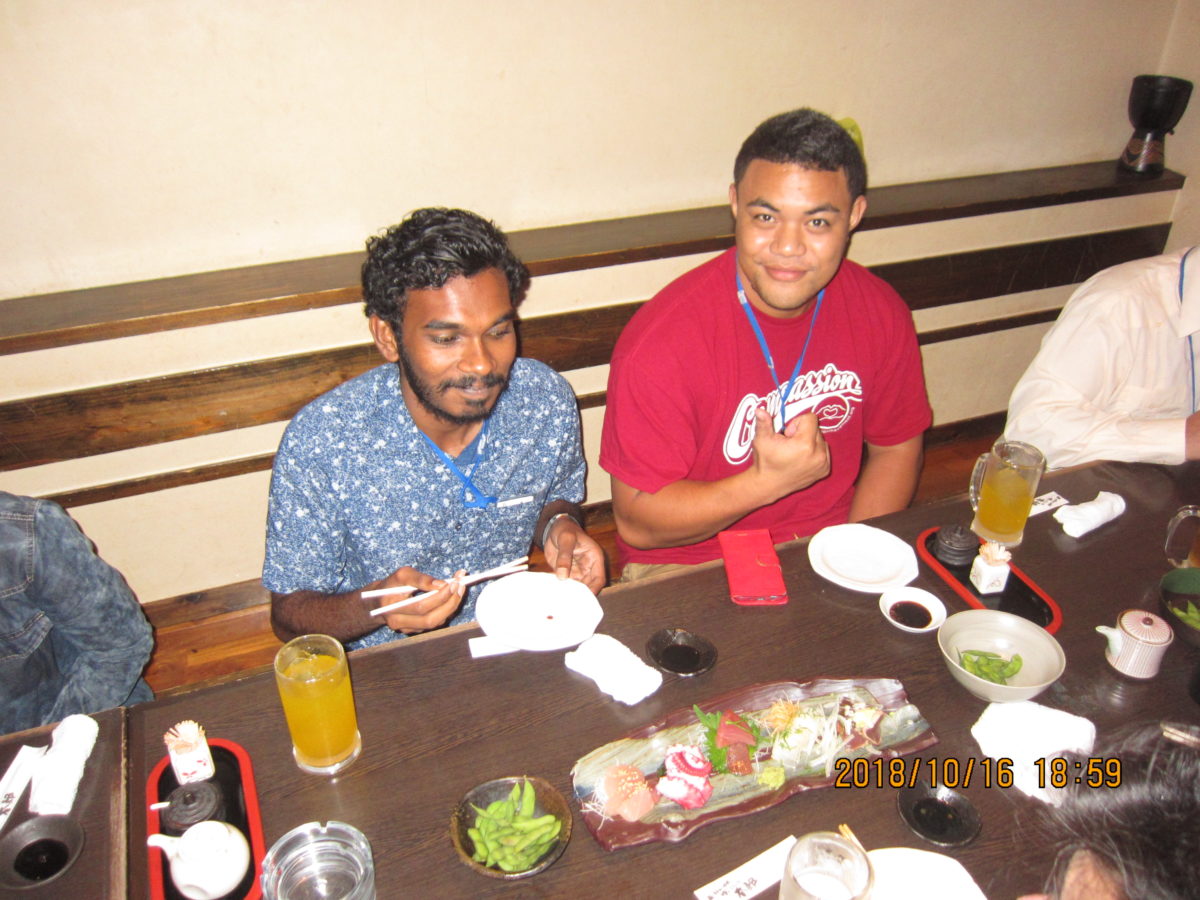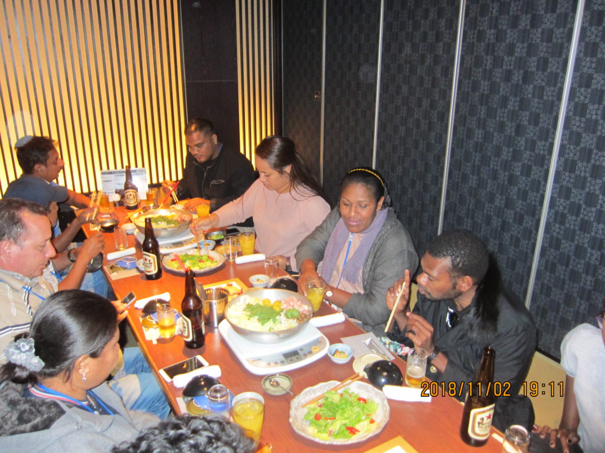 また夜には、秋葉原駅近くの「土風炉」で午後7時から全員参加の懇親会でした。意外にも鍋料理が好みのようで、最後のラーメンまで残らず完食でした。研修生の歌や踊り?も飛び出し、和気藹々の雰囲気でした。