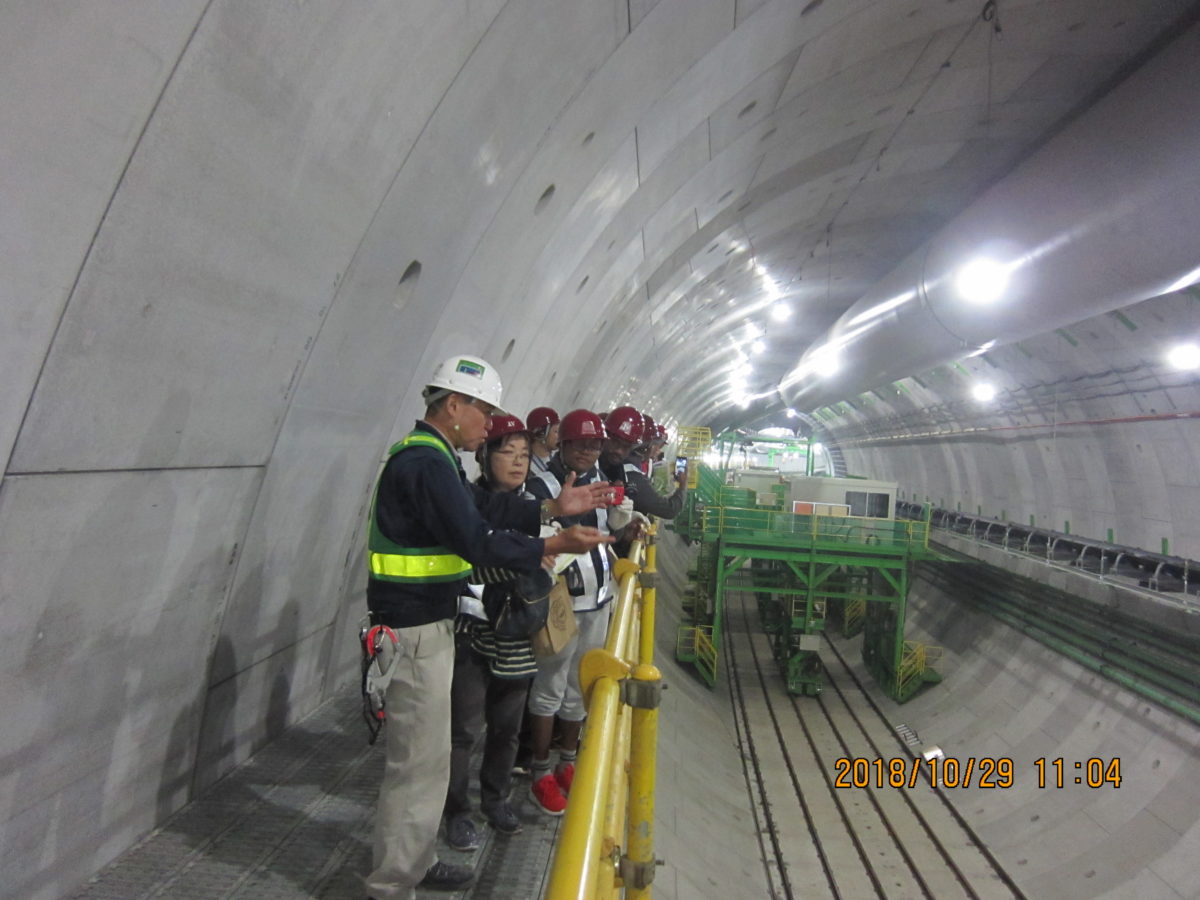 Weobserved the construction site of Main Line Tunnel (south bound) Tomei North Section, ordered by NEXCO East Japan Expressway Co. Ltd. It was the Japan's largest tunneling work with 15.8m of outer tunnel diameter (14.5m inner tunnel diameter) and 9,155m of tunnel length. Last year, the work was still at the initial stage of excavation. But in this year, it has been making a steady progress since April, and advanced up to about 500m. Mr. Mochiki, vice director of the main tunneling work, briefed us on the work outline in meeting room. Then all participants wore helmet and safety vest, and were escorted to the actual tunneling site. As it was the first time for the participants to see the shied tunnel work, they showed great interest in it and were overwhelmed with its hugeness. After the observation, the group moved from Tokyo to Koriyama by shinkansen. Upon arrival, some participants put on coats as they found Koriyama was much colder than Tokyo.