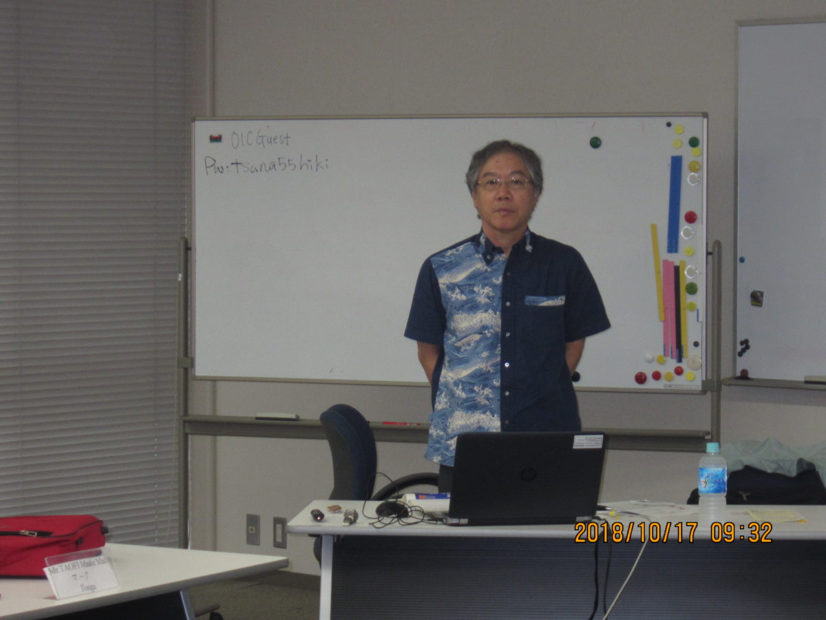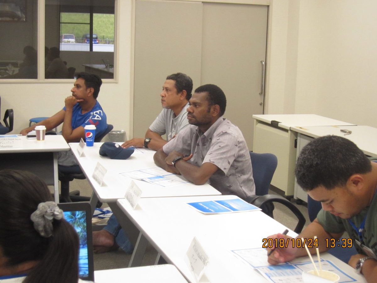 The title of morning lecture was "Natural Disaster Prevention System" given by Mr. Uehara, Chief of Disaster Prevention Section, Development and Construction Department, Okinawa General Bureau. He explained about the system of disaster prevention against earthquake, tsunami, volcanic eruption, and severe rain. The participants shared the same concerns and tried to understand the difference in the system of disaster prevention and response between their countries and Japan. They asked for administrative manual (translated into English) for disaster response. As globalization is in progress, we found that some local municipalities translated their disaster response guideline for local citizens into English.