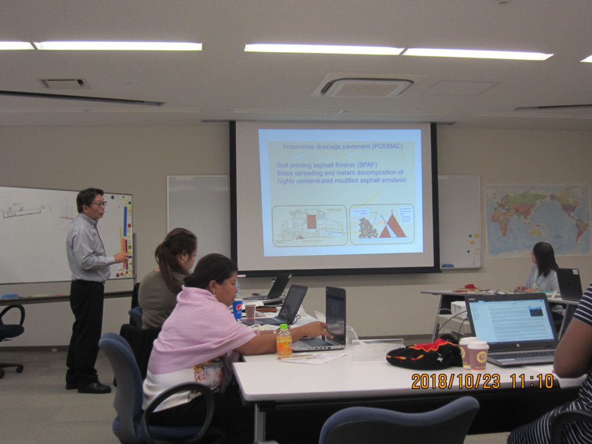 In the afternoon, we had a lecture, "Planning of highway Bridges", delivered by Mr. Okada, Chief Researcher at NILIM, followed by another lecture, "Pavement Technologies and Management in Japan", by Mr. Kawakami, Researcher at PWRI.