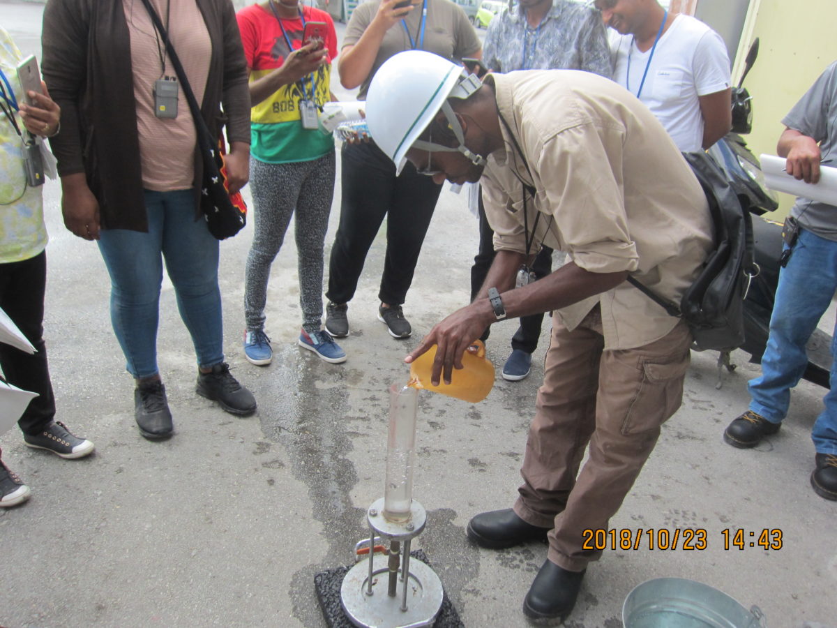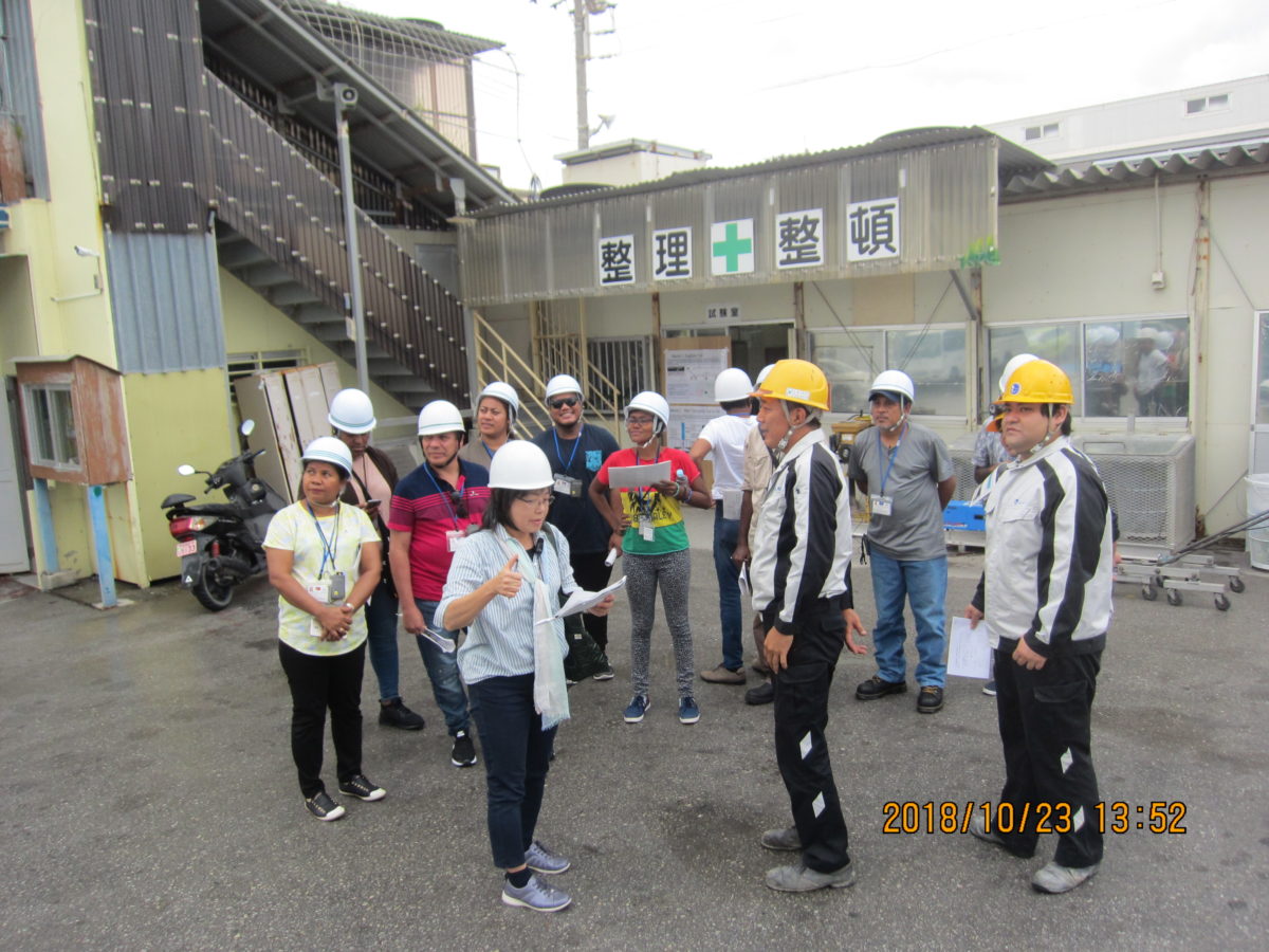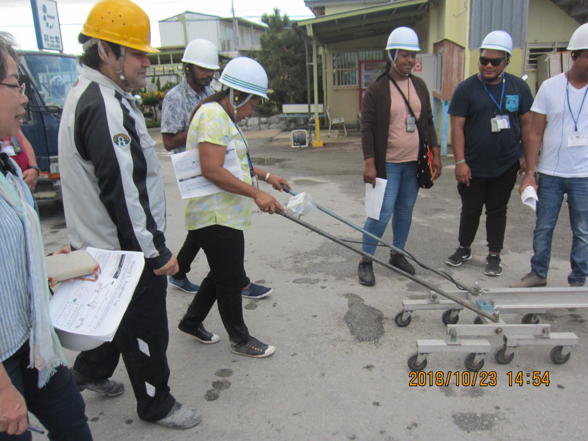 The group visited Okinawa Prefectural Center of Construction Technology in the morning. There, two lectures were given, "Recycling Materials" and "Paving Material Test". Participants developed interest in the tests as the explanation given by Mr. Akamine was in detail and easy to understand, and asked questions. They showed interest in recycled materials as well and asked many questions such as the usage of the recycled materials and the prices.