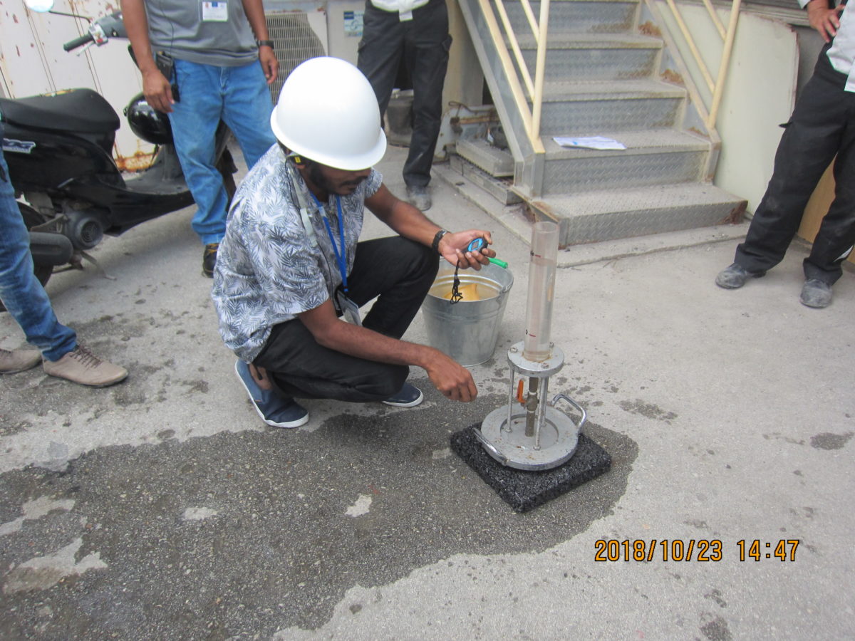 In the afternoon, Mr. Shinoda (Dr. Engineering, Professional Engineer, Authorized Concrete Diagnosis & Maintenance Engineer) delivered a lecture on "Corrosion-induced Damage due to Salt Attack and Durability of Concrete Structure" and "Basics of Concrete Pavement". He started his lecture by asking questions about the basics of concrete. Then he continued explaining in detail the mechanism and progression of salt attack, contributing factors to deterioration and countermeasure technology against salt attack (e.g. use of stainless reinforcement) from the perspective of durability of concrete, asking questions to participants at times. The participants showed their interest in criteria of salt attack and changes in deterioration factors. Then towards the end of lecture, the participants learned the basics of concrete pavement.