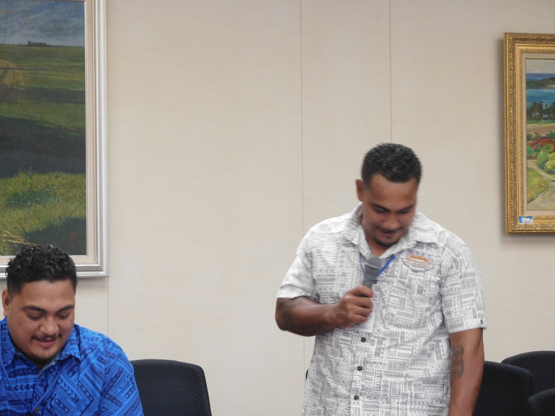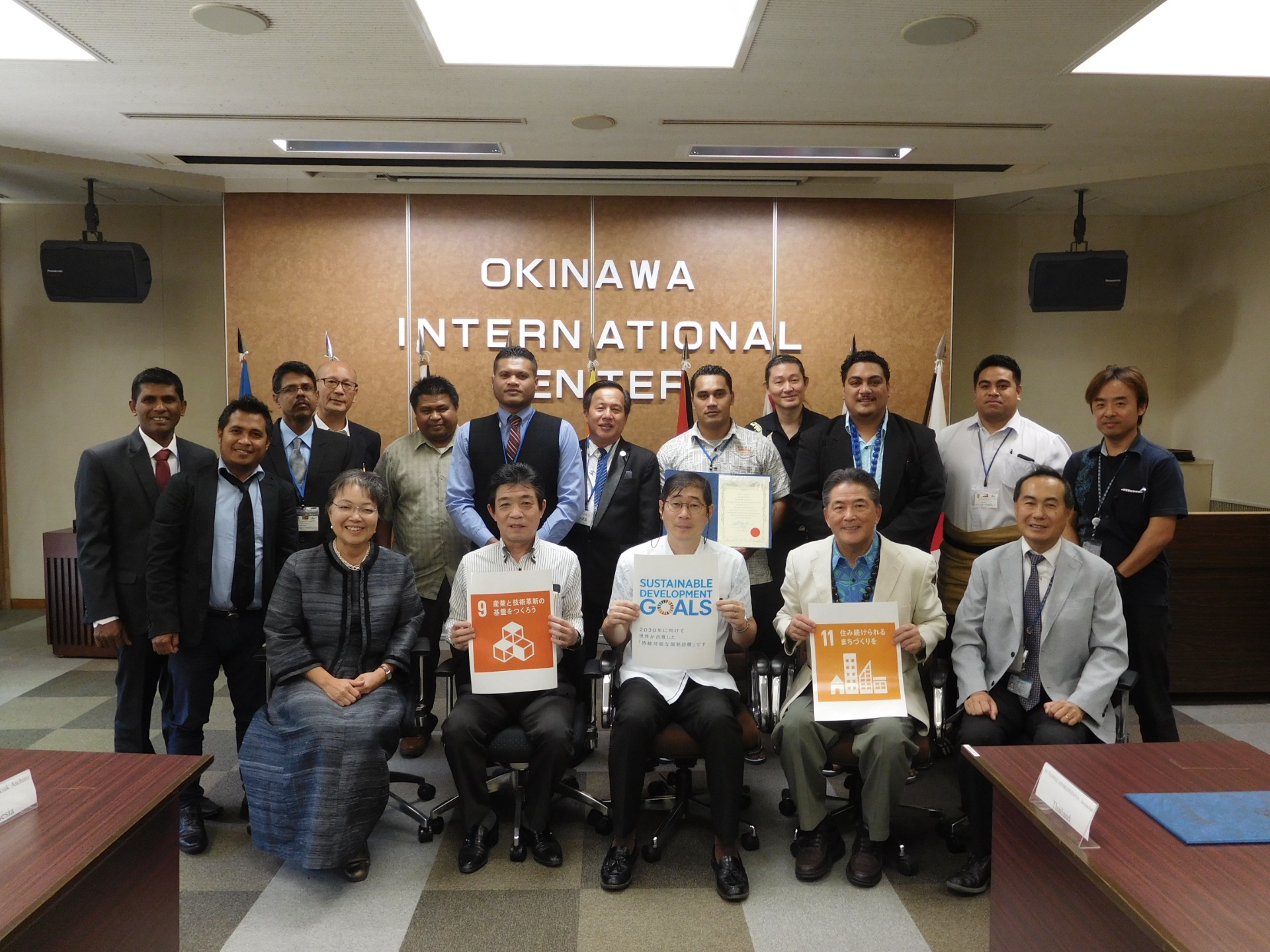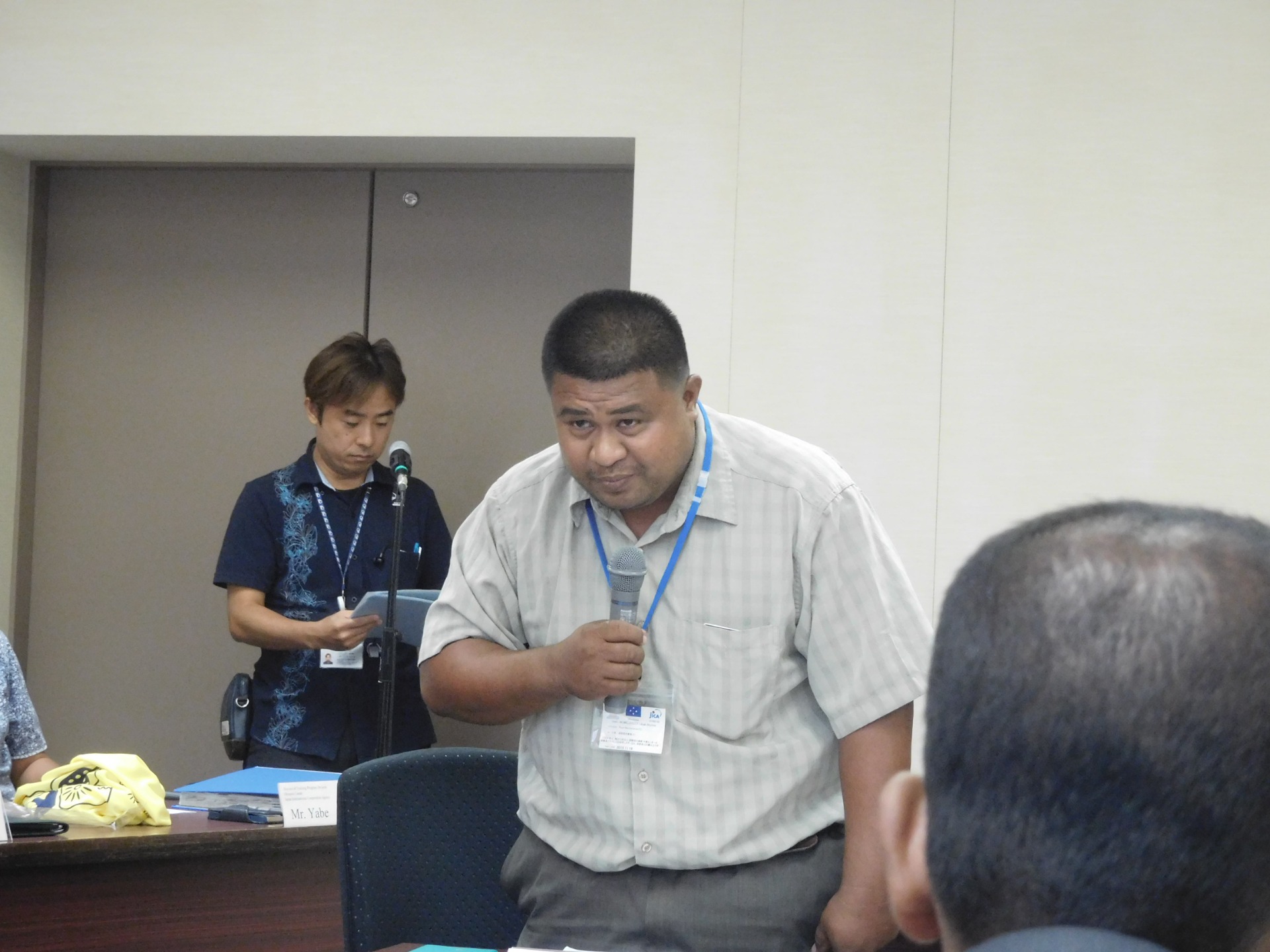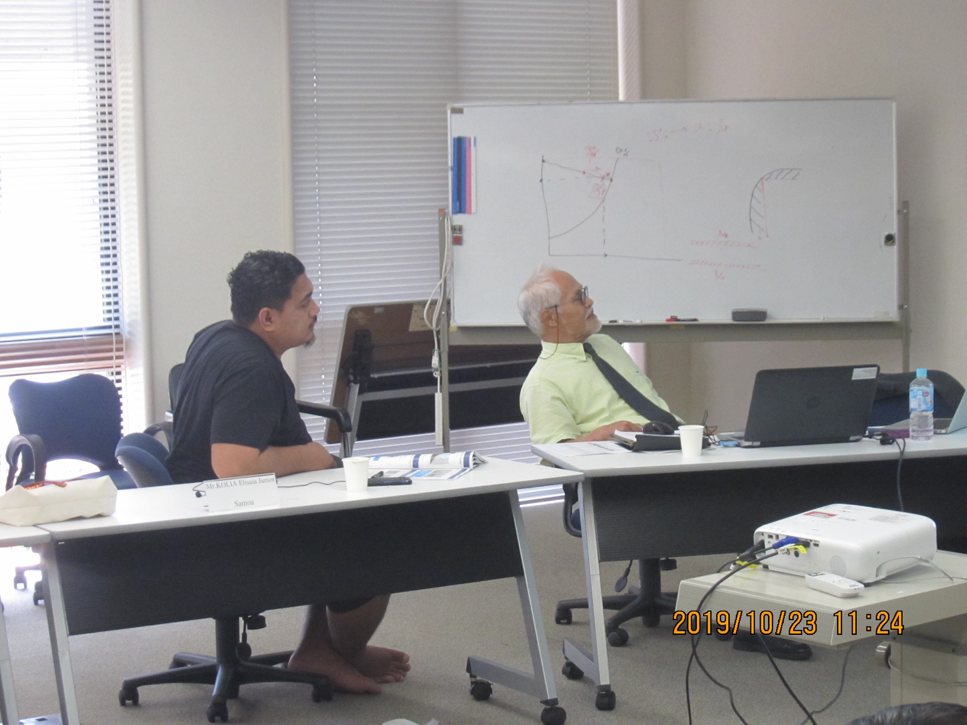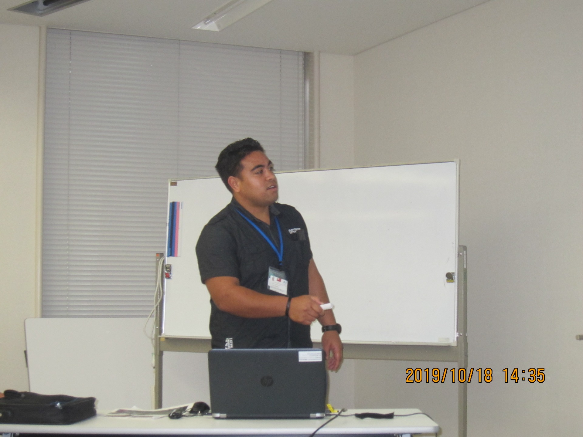 本日は研修生の「サマリーレポート発表会」でした。今回の研修で学んだことを自国の課題等にどのように役立てられるのか等をレポートに纏め、研修生一人一人が発表しました。発表時間はひとり30分(発表15分、質疑応答等15分)でした。コメンテーターとして矢吹先生(琉球大学)、下地さん(沖縄総合事務局)、前村さん(沖縄県)、及び松田さん(しまたて協会)に出席して頂きました。各コメンテーターと各研修生の質疑応答、また適切なコメンテーターからのアドバイス等を頂きました。研修生各国の課題解決に向けて、前向きな議論、アドバイス等があり、今後の取組が待たれます。