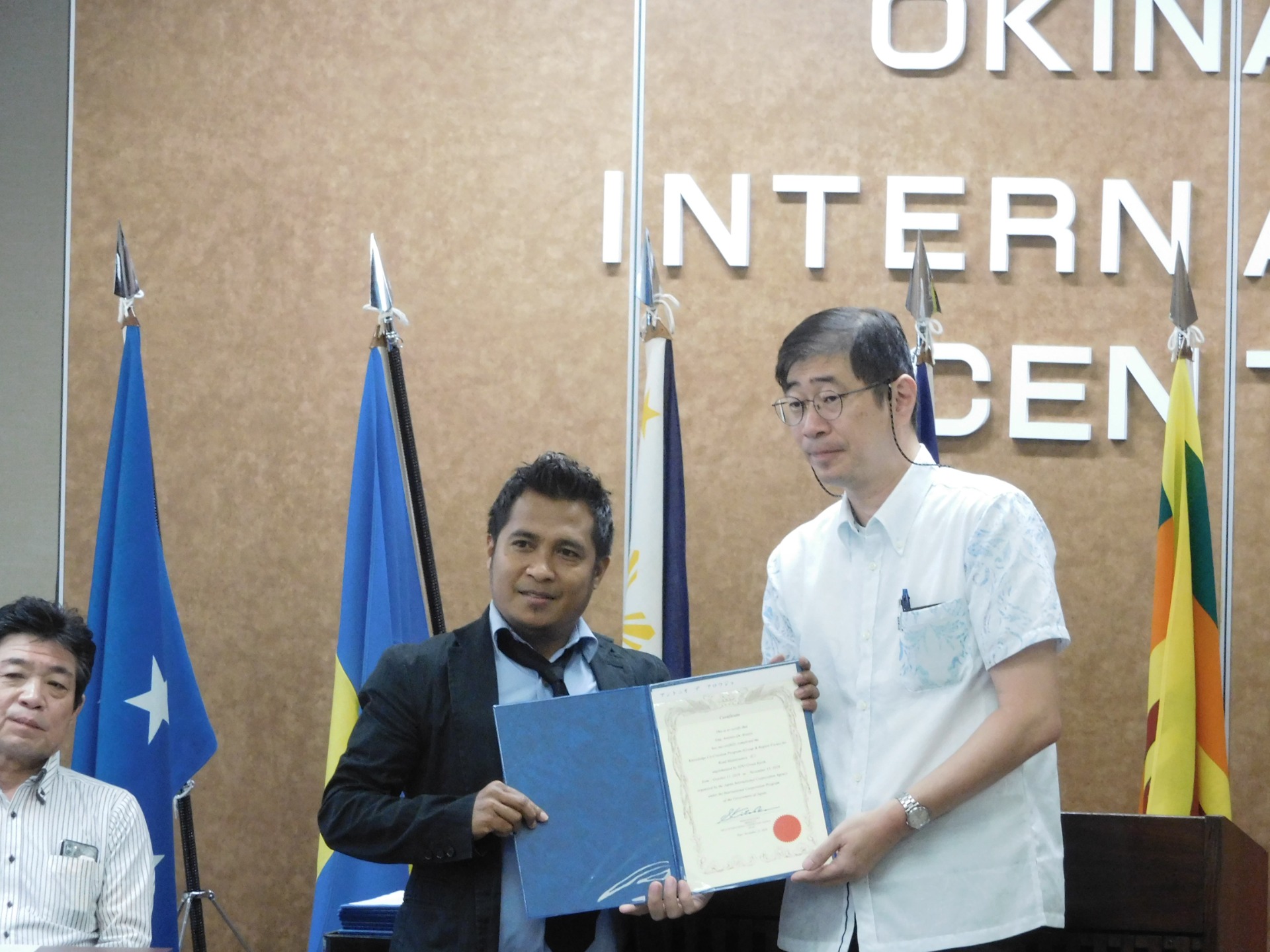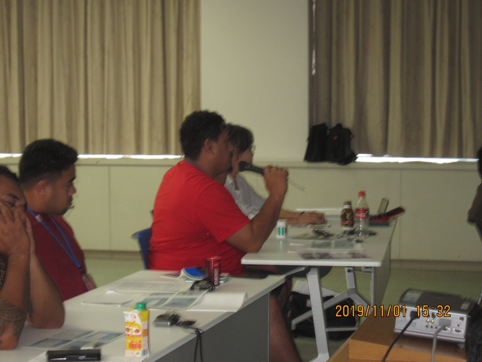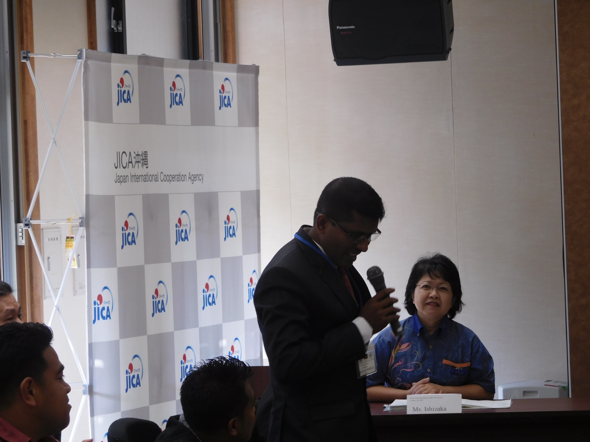 This was the day of summary report presentation. Each participant produced a report in which they summarized what they have learnt and what can be utilized to solve issues in their countries. Thirty minutes was allocated to each participant which included 15 minutes of presentation and 15 minutes of Q and A. Invited commentators were Prof. Yabuki (University of the Ryukyus), Mr. Shimoji (Okinawa General Bureau), Mr. Maemura (Okinawa Prefectural Government), and Mr. Matsuda (Shimatate Association). They have asked questions to the presenter and provided advices. There were questions raised from participant side as well. In order to find solutions to the challenges faced, participants had many advices and discussion toward positive direction. We all look forward to see the issues to be addressed.