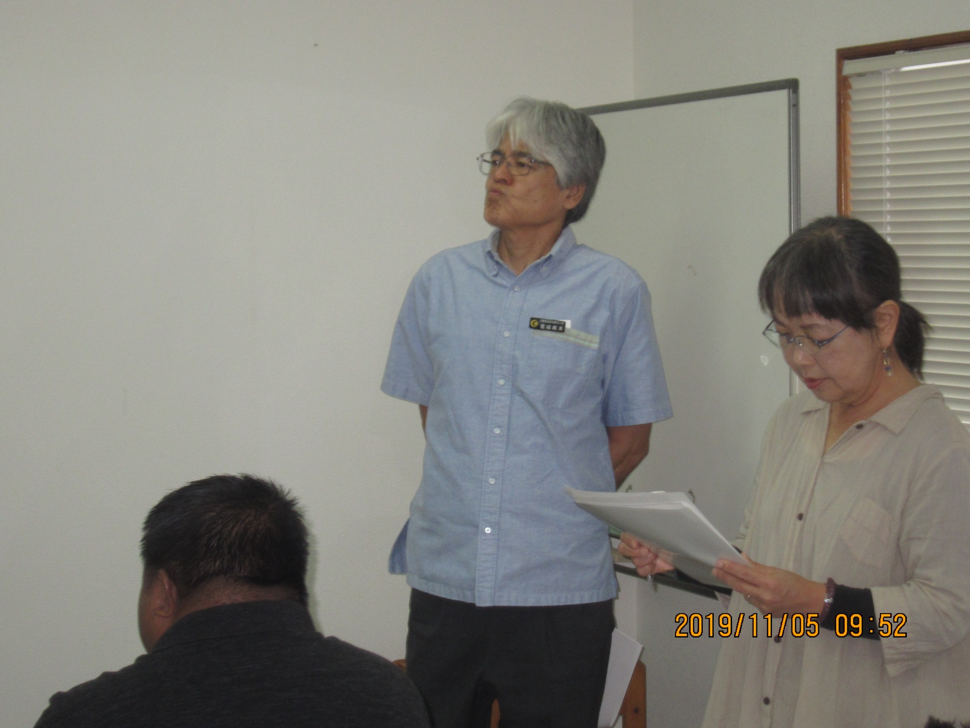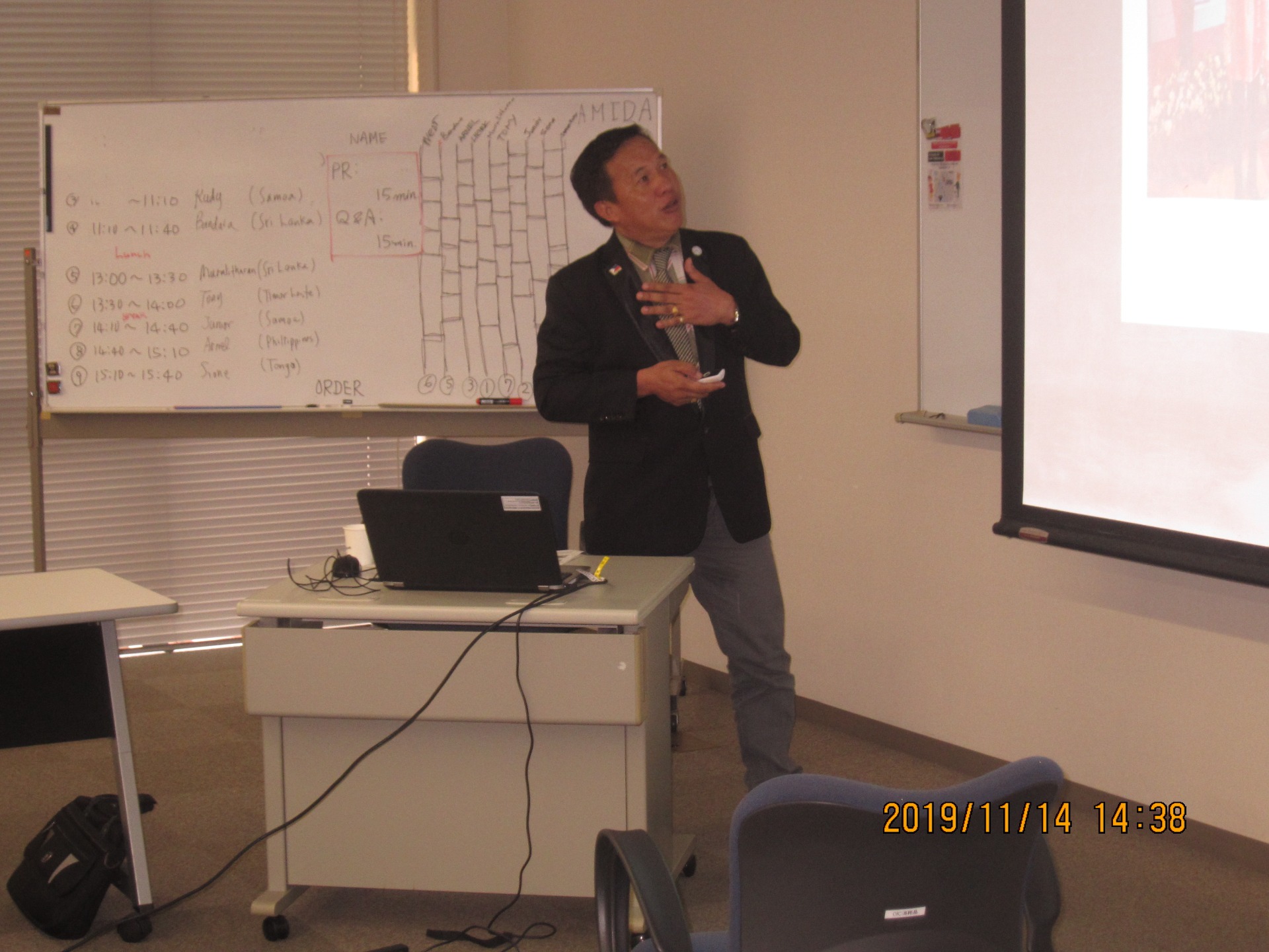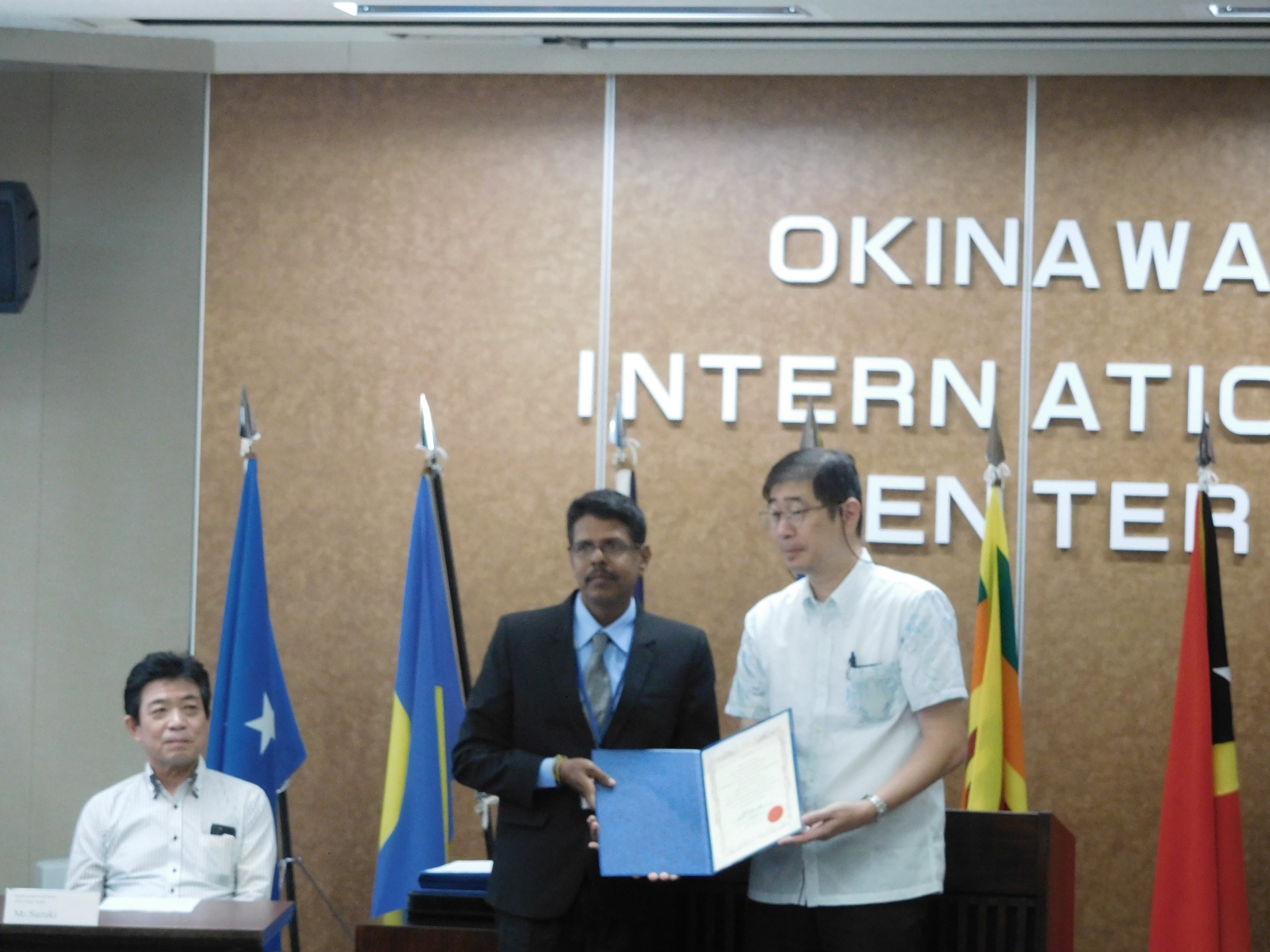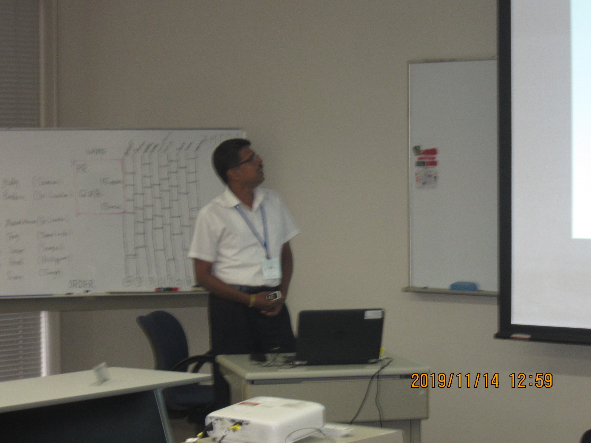 This was the day of summary report presentation. Each participant produced a report in which they summarized what they have learnt and what can be utilized to solve issues in their countries. Thirty minutes was allocated to each participant which included 15 minutes of presentation and 15 minutes of Q and A. Invited commentators were Prof. Yabuki (University of the Ryukyus), Mr. Shimoji (Okinawa General Bureau), Mr. Maemura (Okinawa Prefectural Government), and Mr. Matsuda (Shimatate Association). They have asked questions to the presenter and provided advices. There were questions raised from participant side as well. In order to find solutions to the challenges faced, participants had many advices and discussion toward positive direction. We all look forward to see the issues to be addressed.