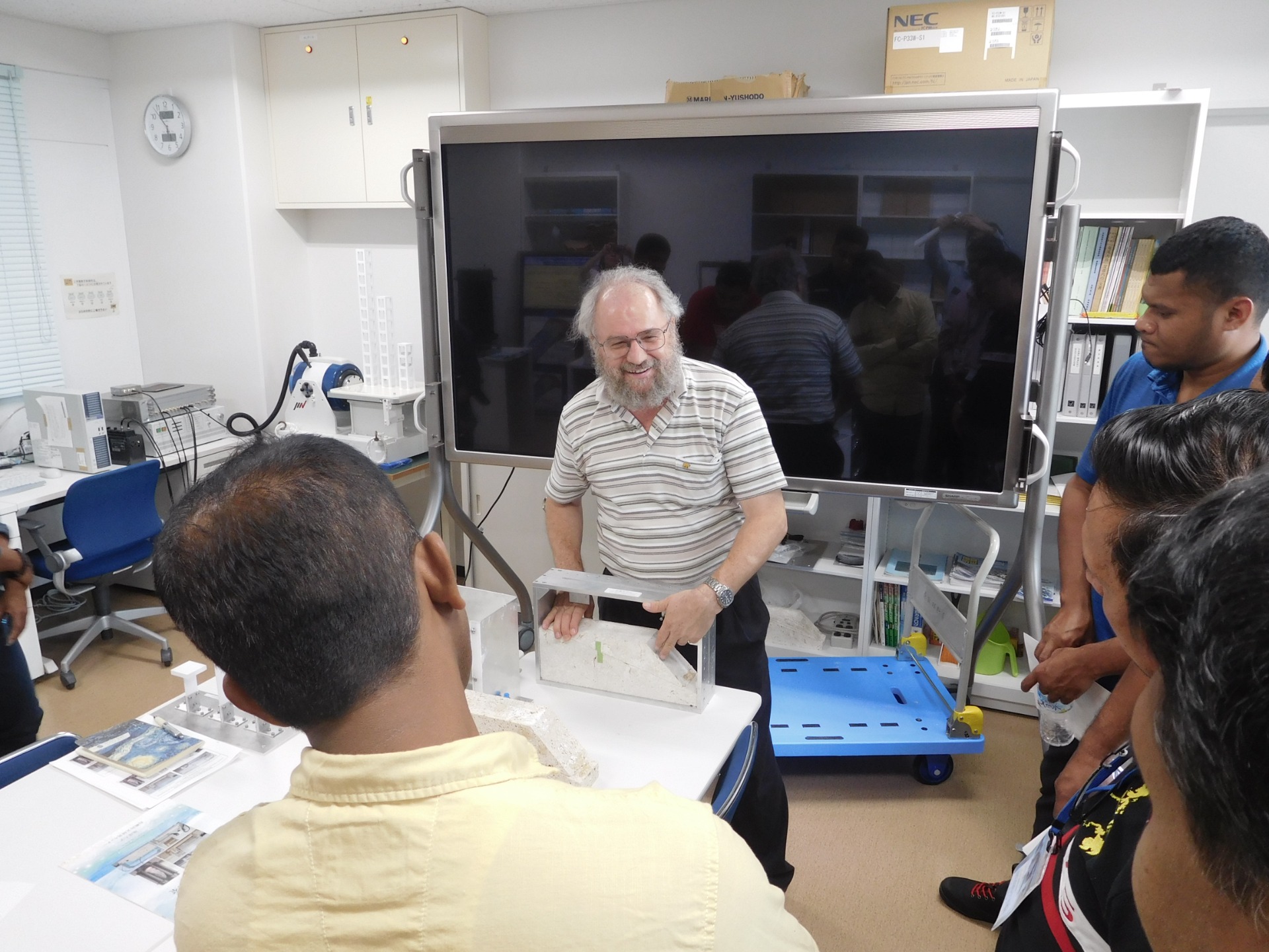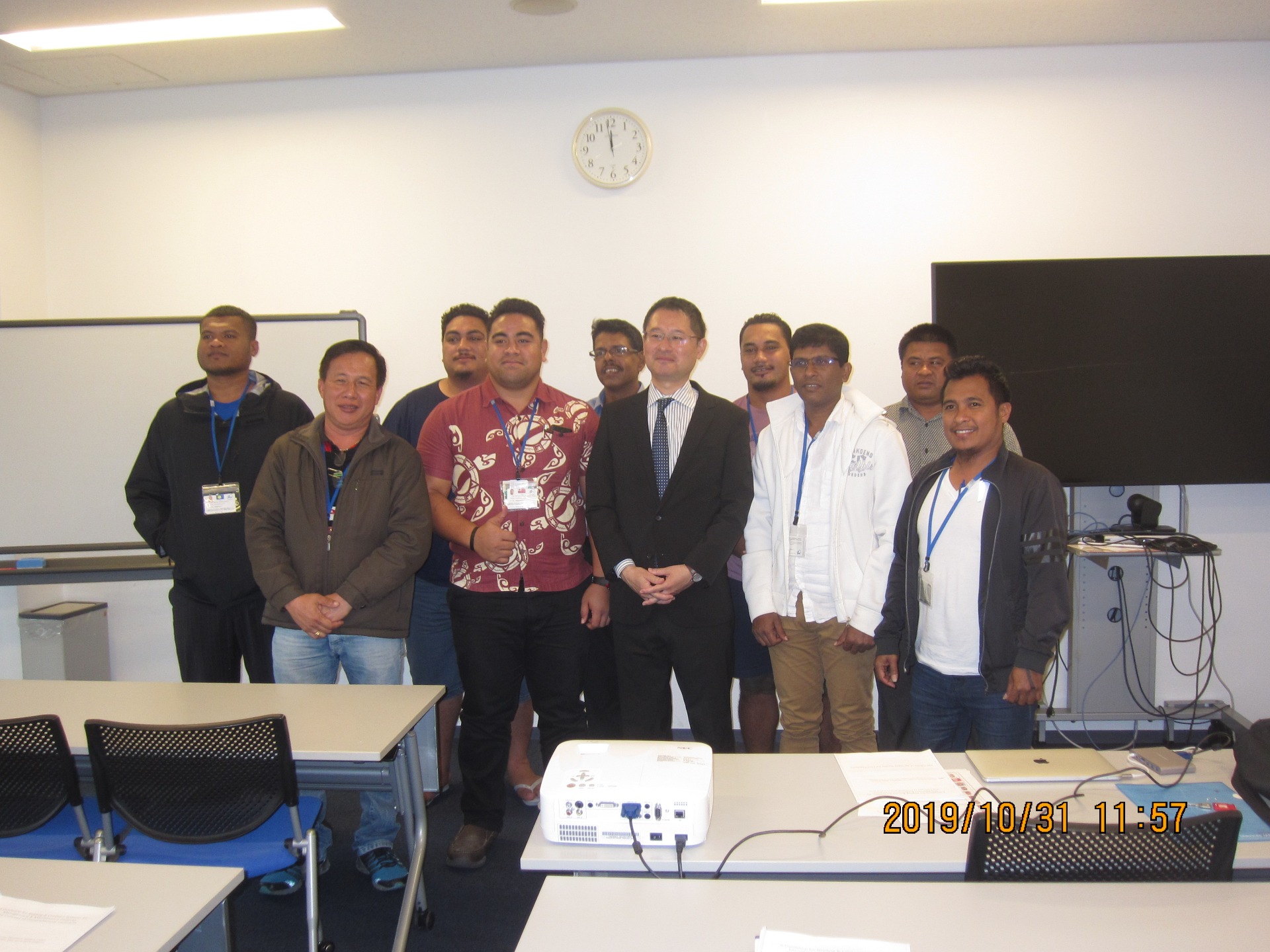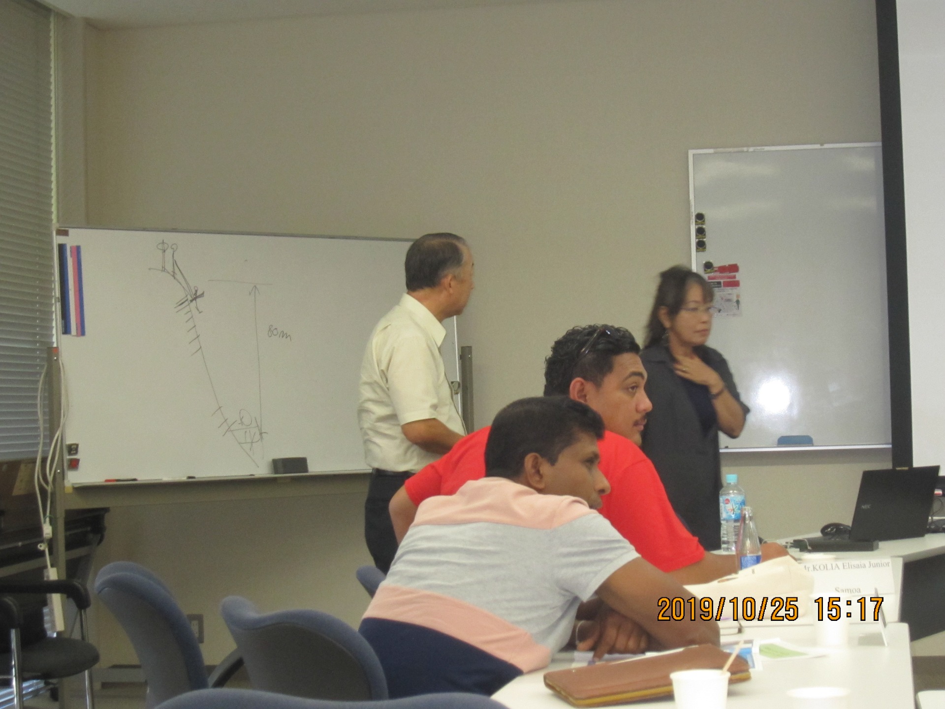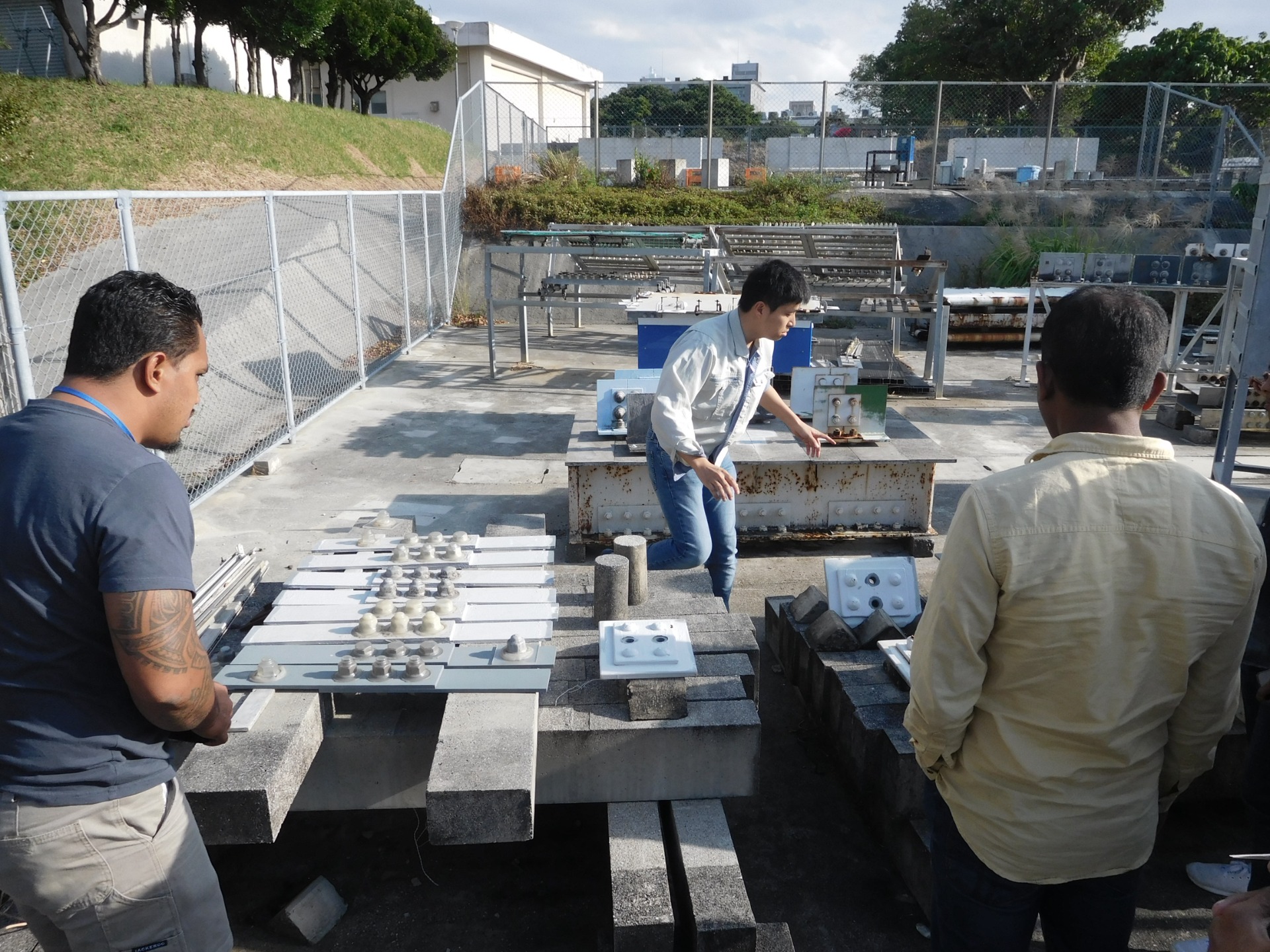 琉球大学工学部において、午前は藍檀教授による地盤工学に関する講義と、島嶼防災研究センターの自然災害再現展示室の研究装置見学でした。研修員からは最先端の津波再現装置等に興味を示していました。