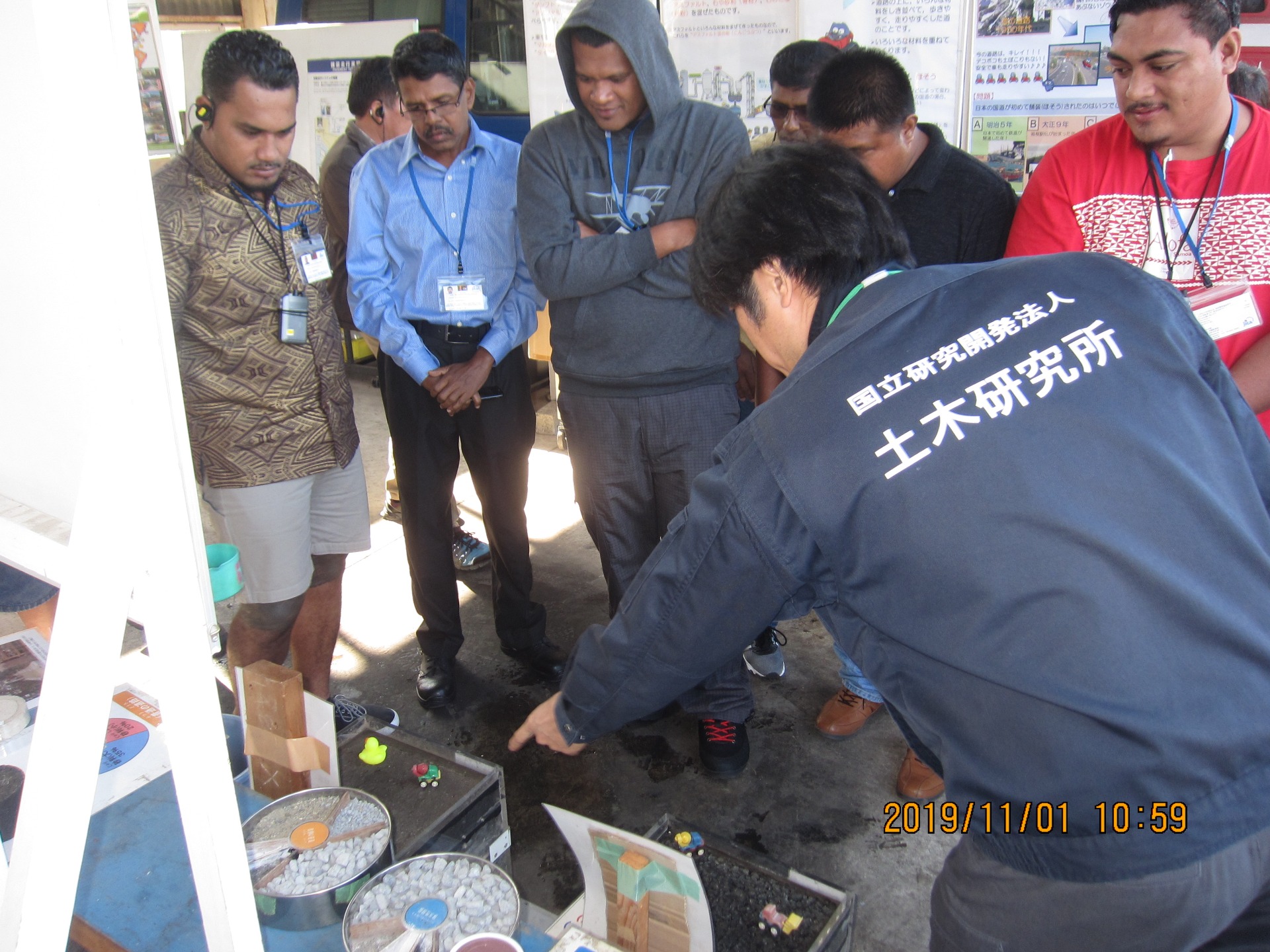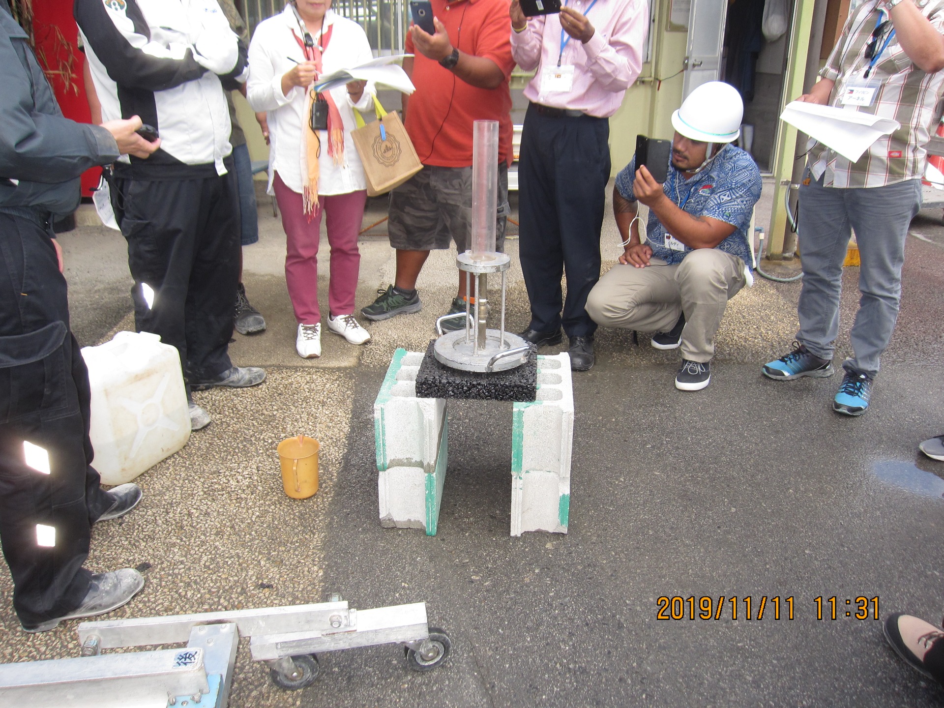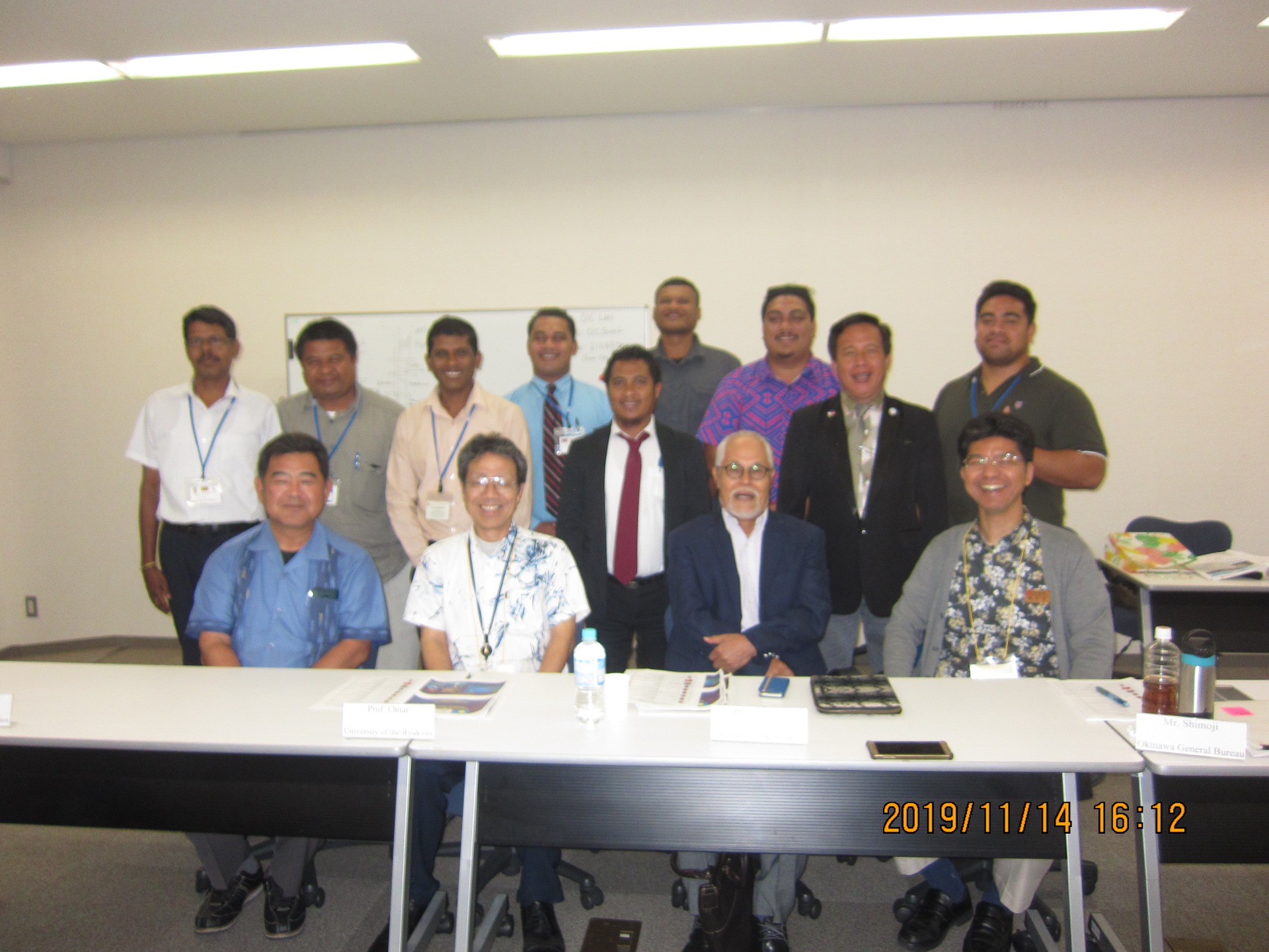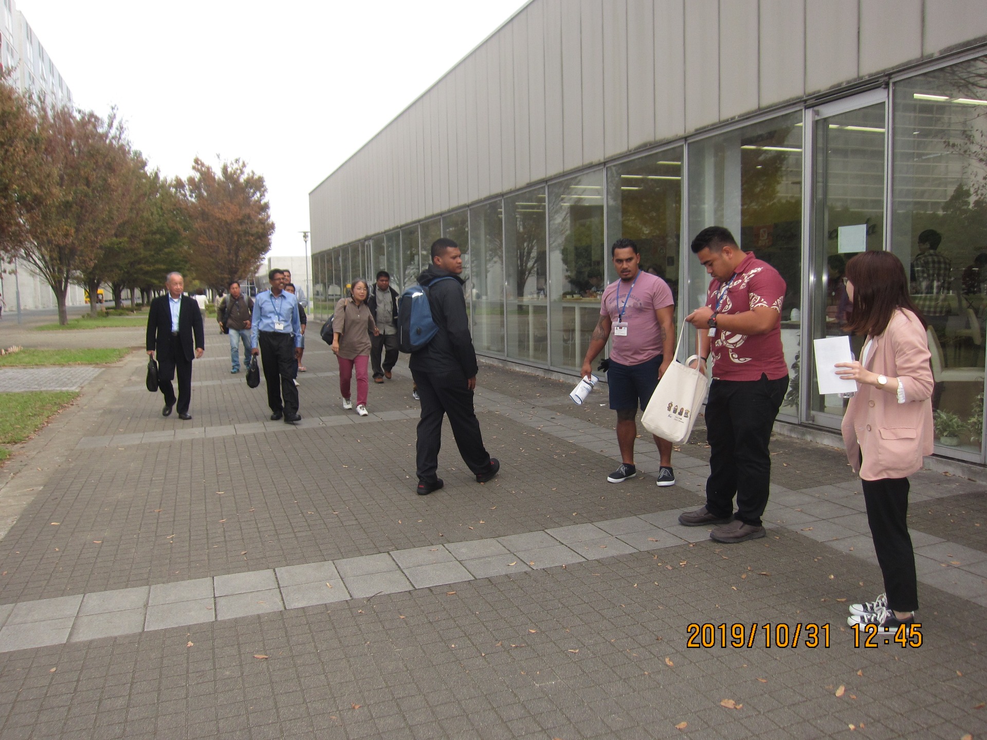 琉球大学工学部において、午前は藍檀教授による地盤工学に関する講義と、島嶼防災研究センターの自然災害再現展示室の研究装置見学でした。研修員からは最先端の津波再現装置等に興味を示していました。