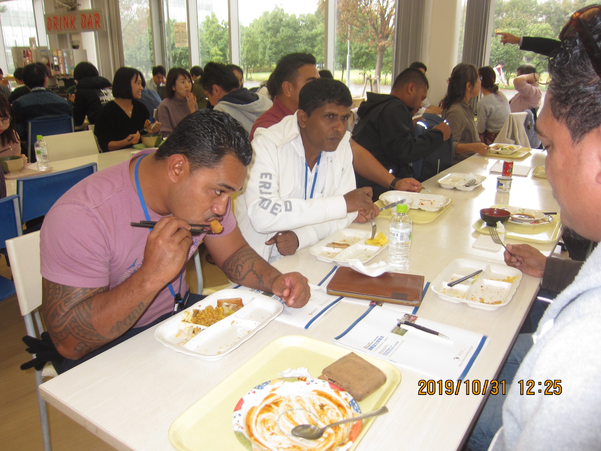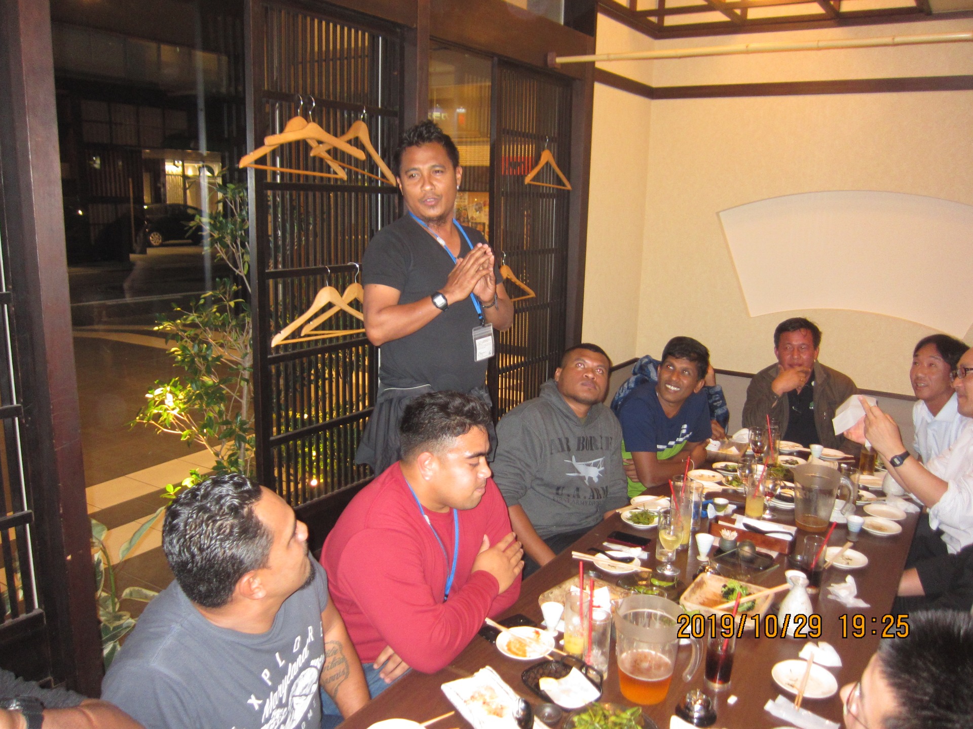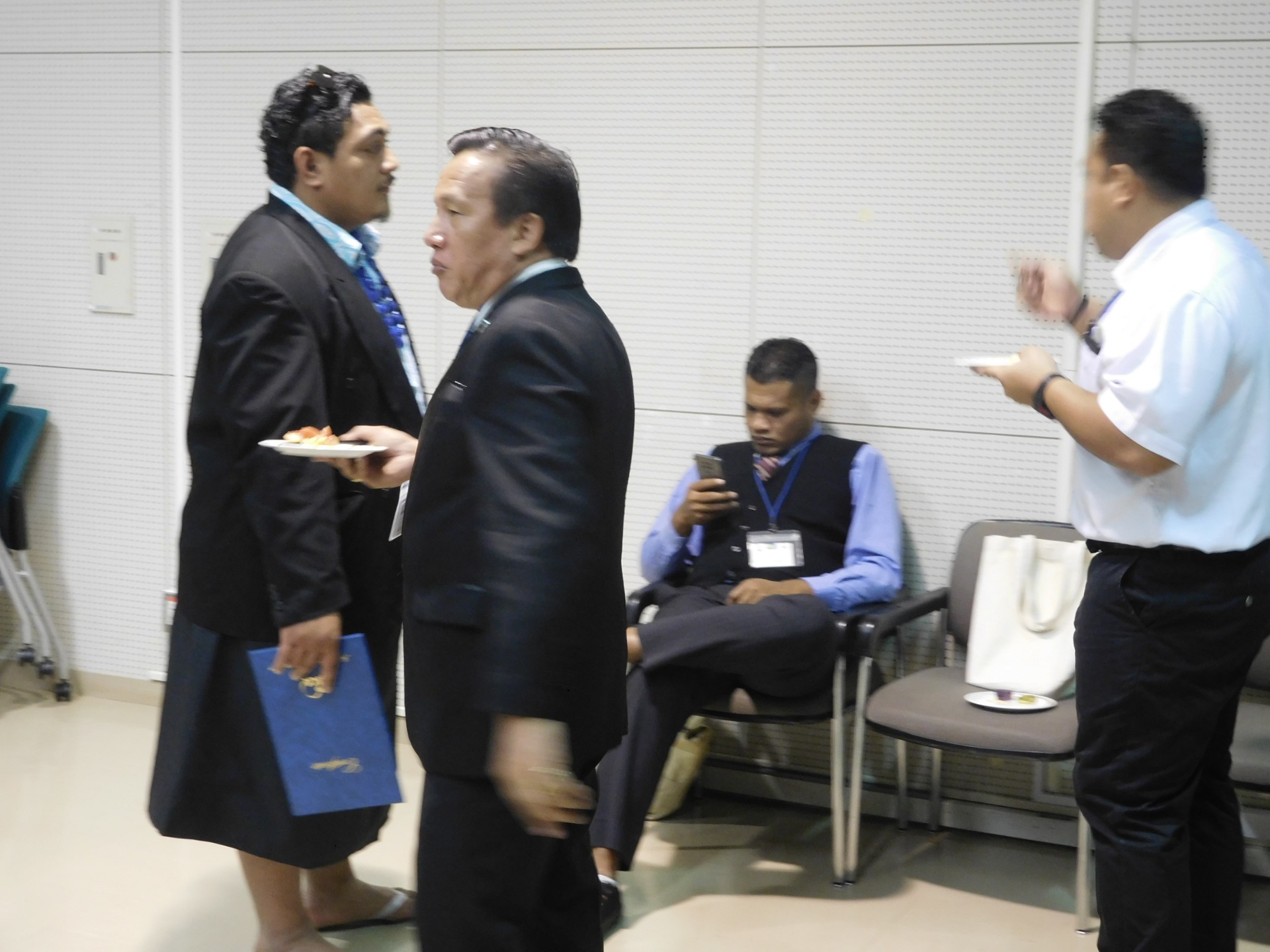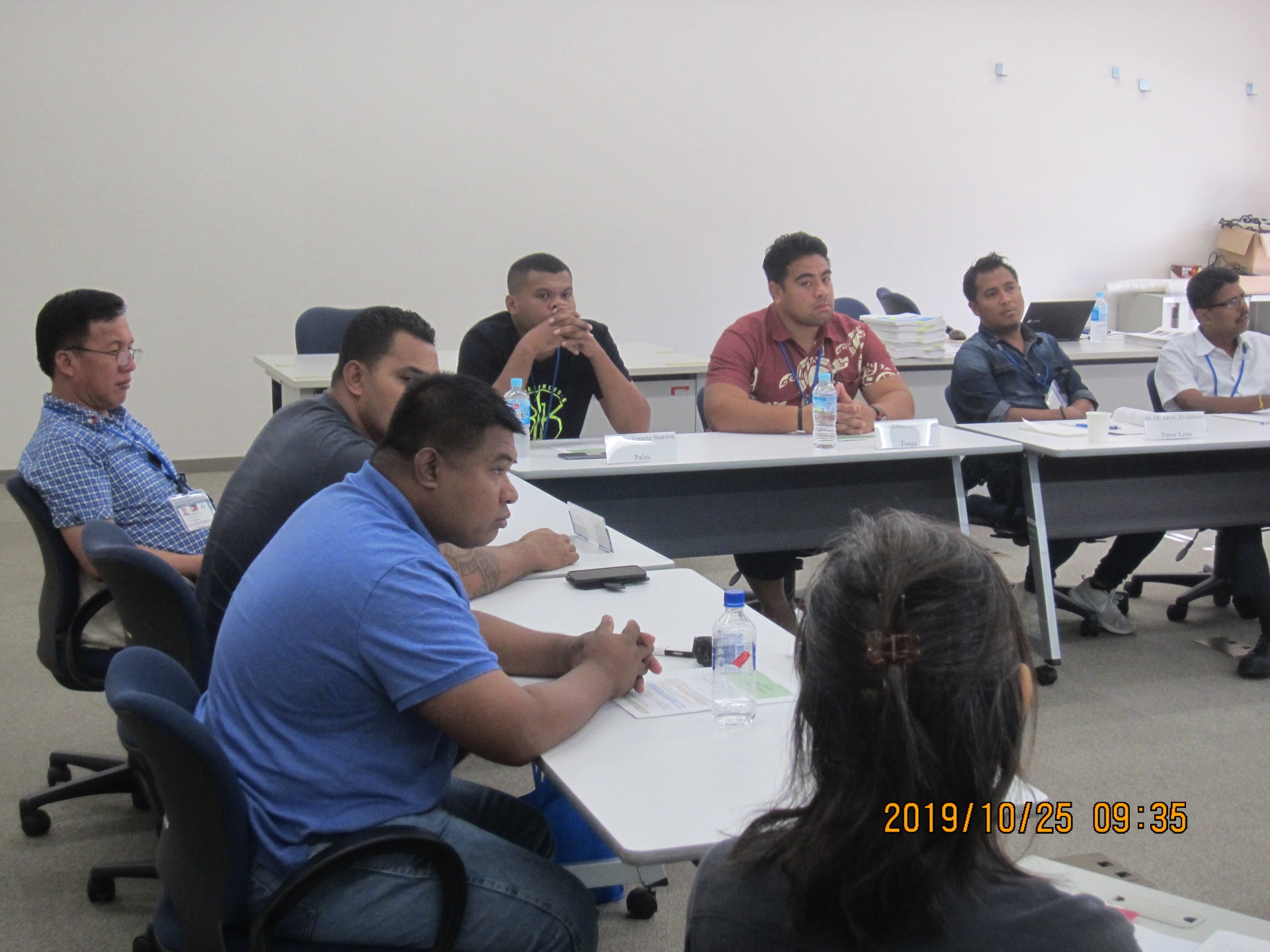 We held Final Evaluation Meeting, convened by Road Maintenance © course participants and JICA officer, starting at 10:00am. Based on the answers in JICA questionnaire submitted a week ago, each participant was asked to speak on his/her impression and thought on this program. In general, they seemed satisfied with the training (lecture, site visit, mainland program, OIC life, etc.). This event was followed by Closing Ceremony at 11:15am held in a room on 1st floor, in which all participants received a certificate. Then, all concerted staff and participants joined the Farewell Party.