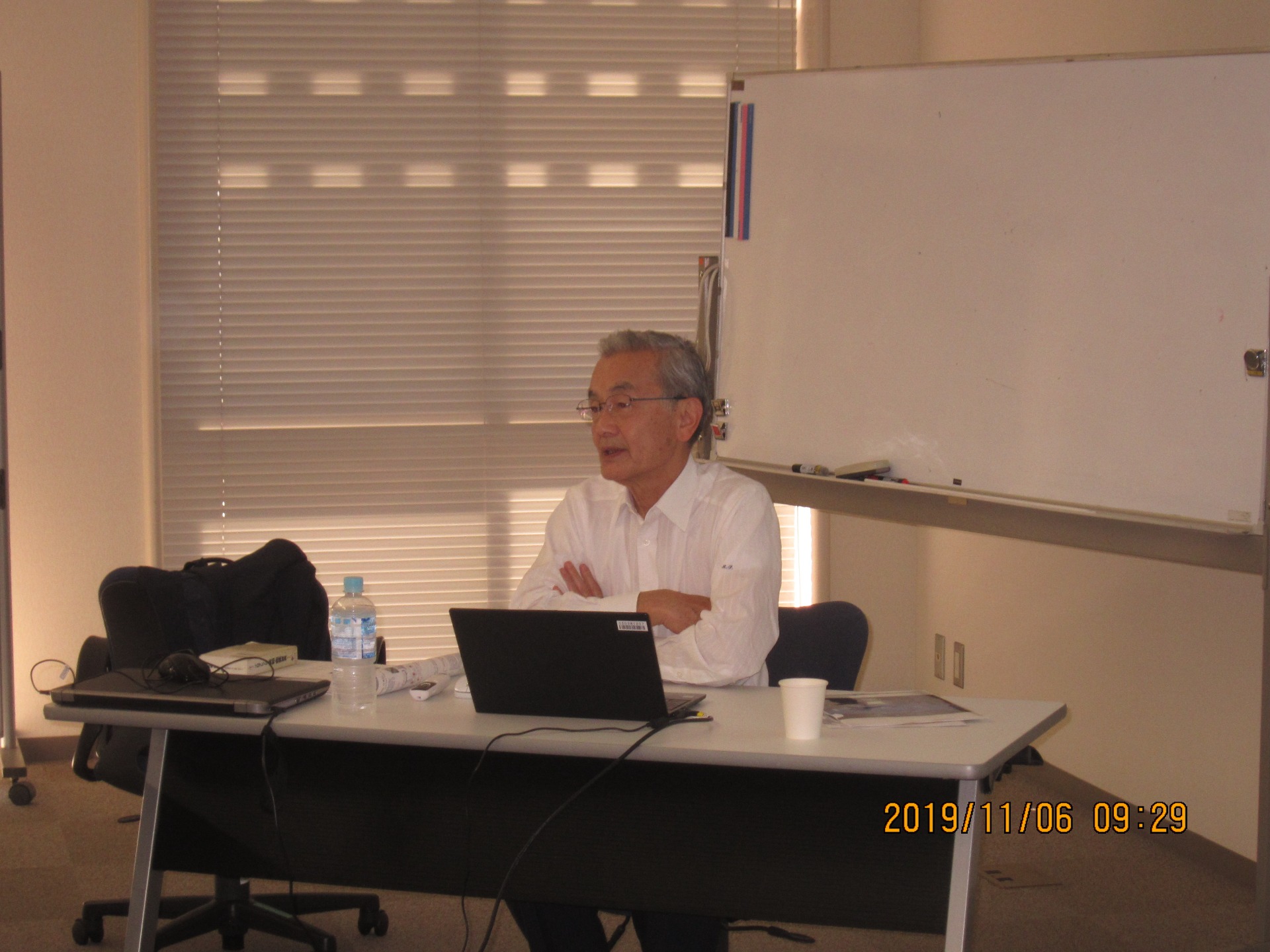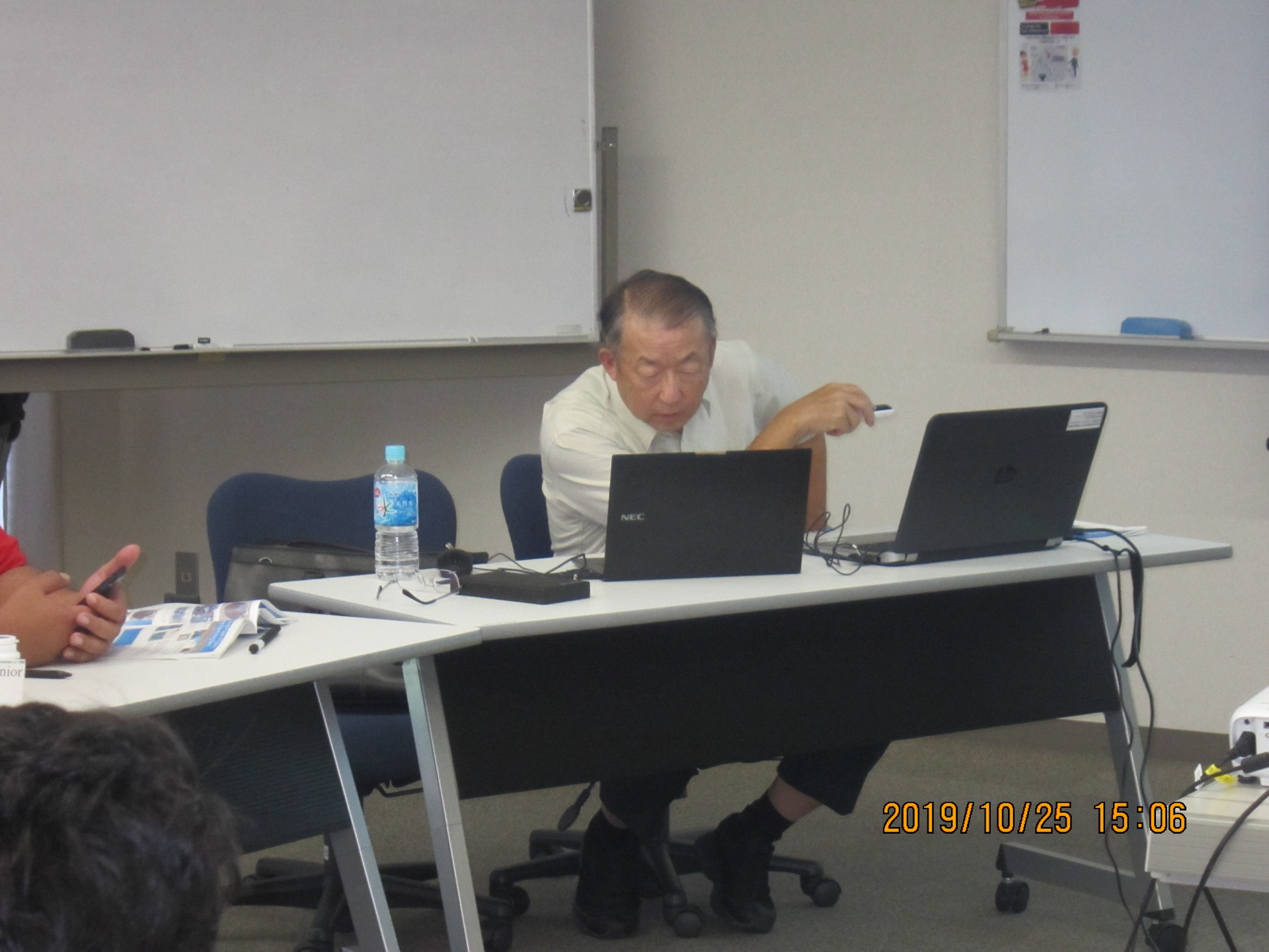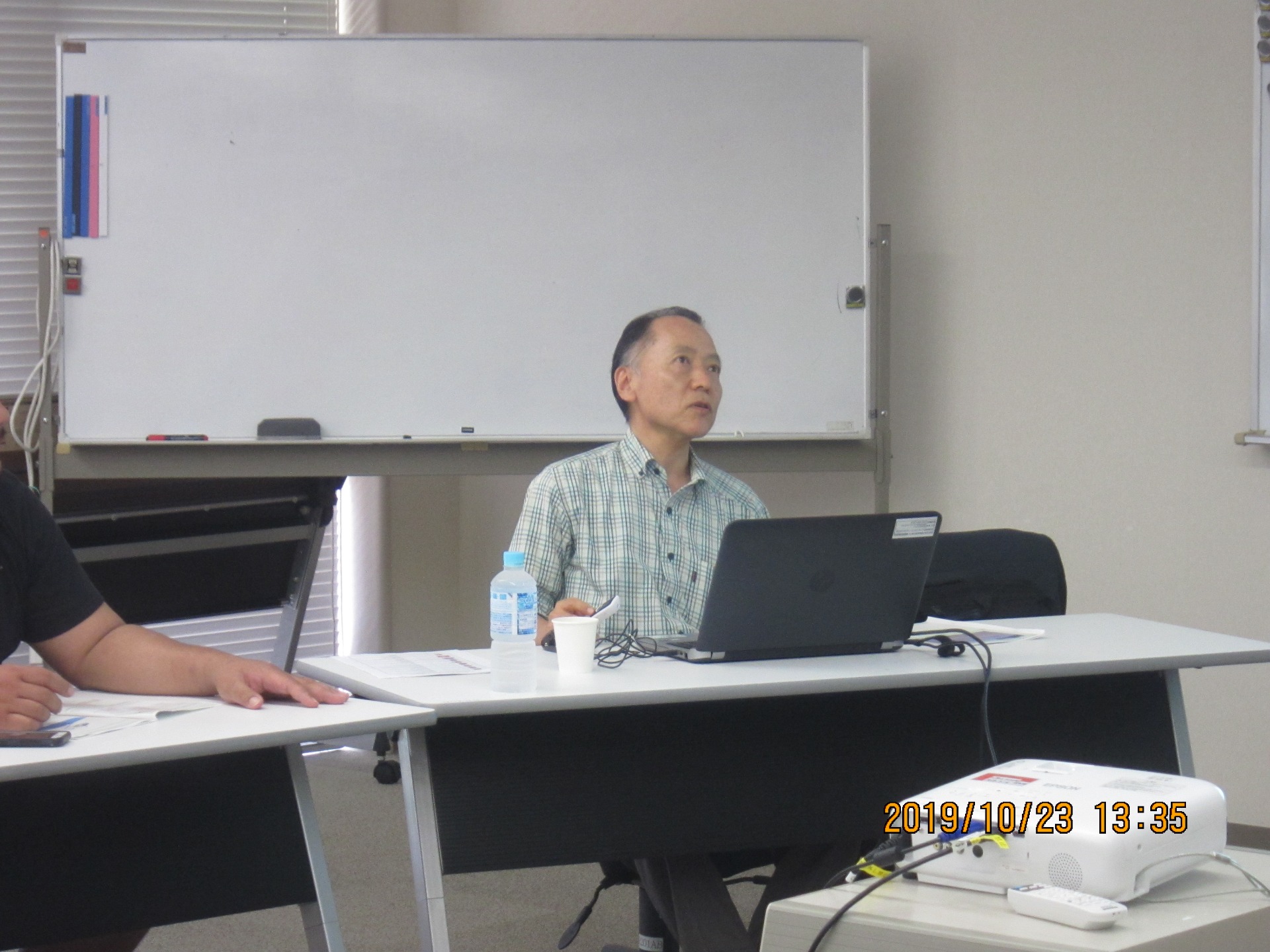 午前は、「国の道路防災対策」をテーマにした沖縄総合事務局開発建設部の防災課の中園課長の講義でした。中園課長は、近々の台風19号の被災状況を具体的な事例として、国の災害発生時等への対応について解説しました。最後に総合事務局の防災対策について解説されました。途中、質疑応答の繰り返しでした。