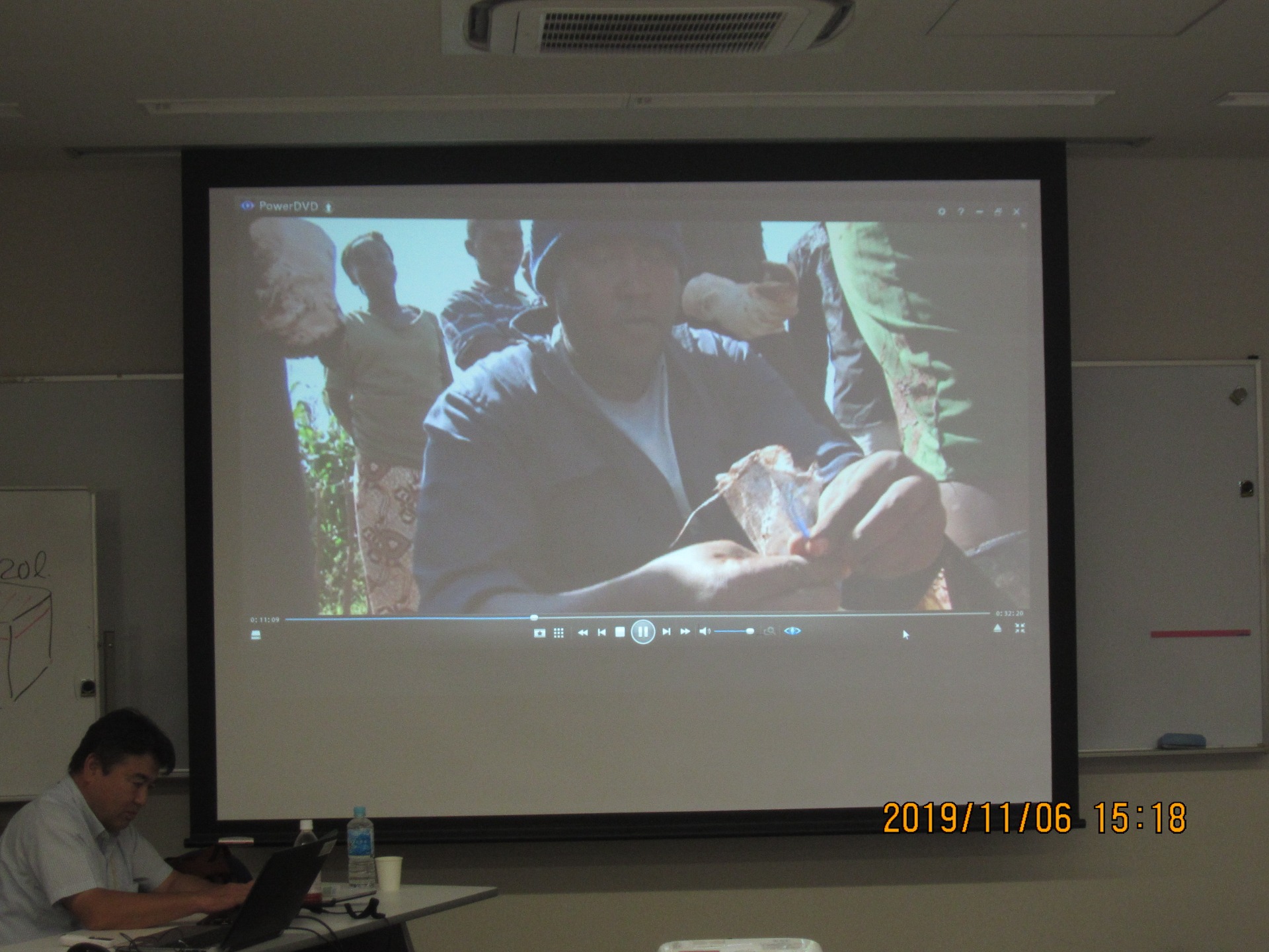 午後からは、京都大学大学院の木村誠教授による「住民参加型未舗装道路整備」の講義でした。講師自らNGO活動でのアフリカを中心とした数々の世界各国での実績を紹介し、「土のう」が未舗装道路整備等にいかに有効かを解説されました。また、インフラの中で占める道の重要性について、ビデオで説明されました。講義中、研修員は講師の説得力があり、ユーモアある話に熱中していました。