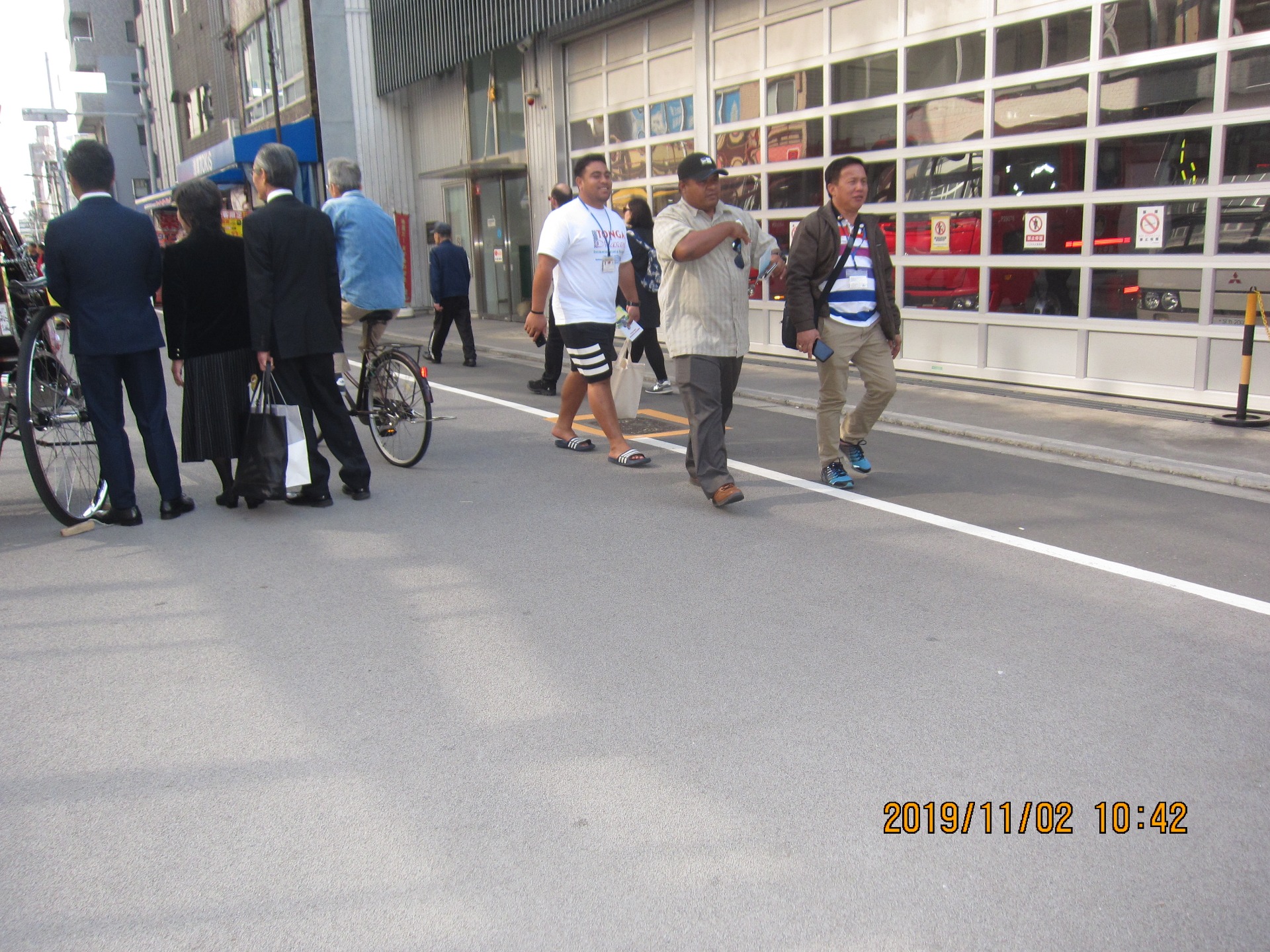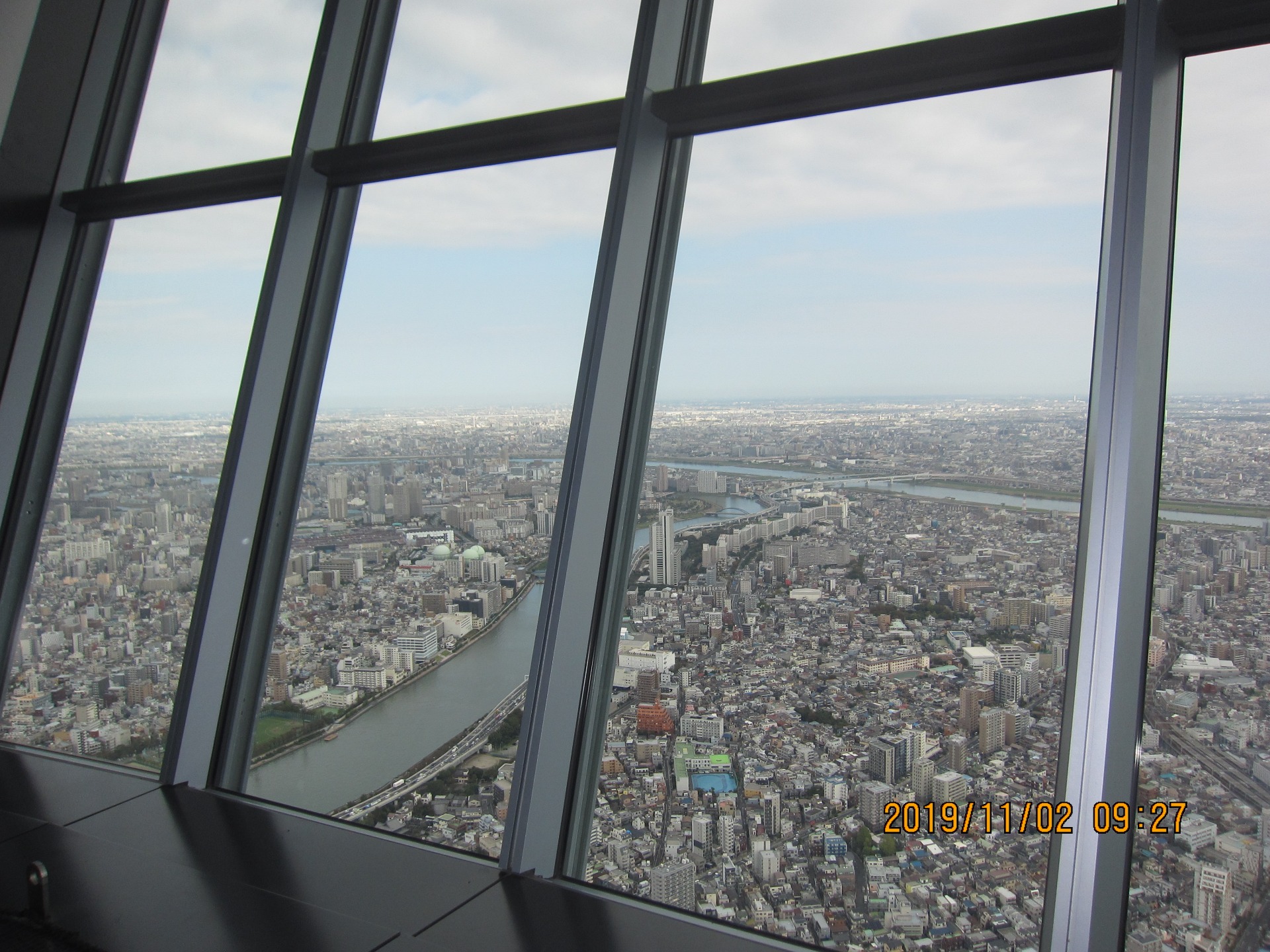 終日、東京の主要道路状況、及び下町の街路状況視察でした。まず、スカイツリー展望台から東京の整備された街並みや道路状況を確認しました。晴天に恵まれ、主要幹線道路や都庁等は見ることができましたが、残念ながら富士山を眺めることは出来ませんでした。