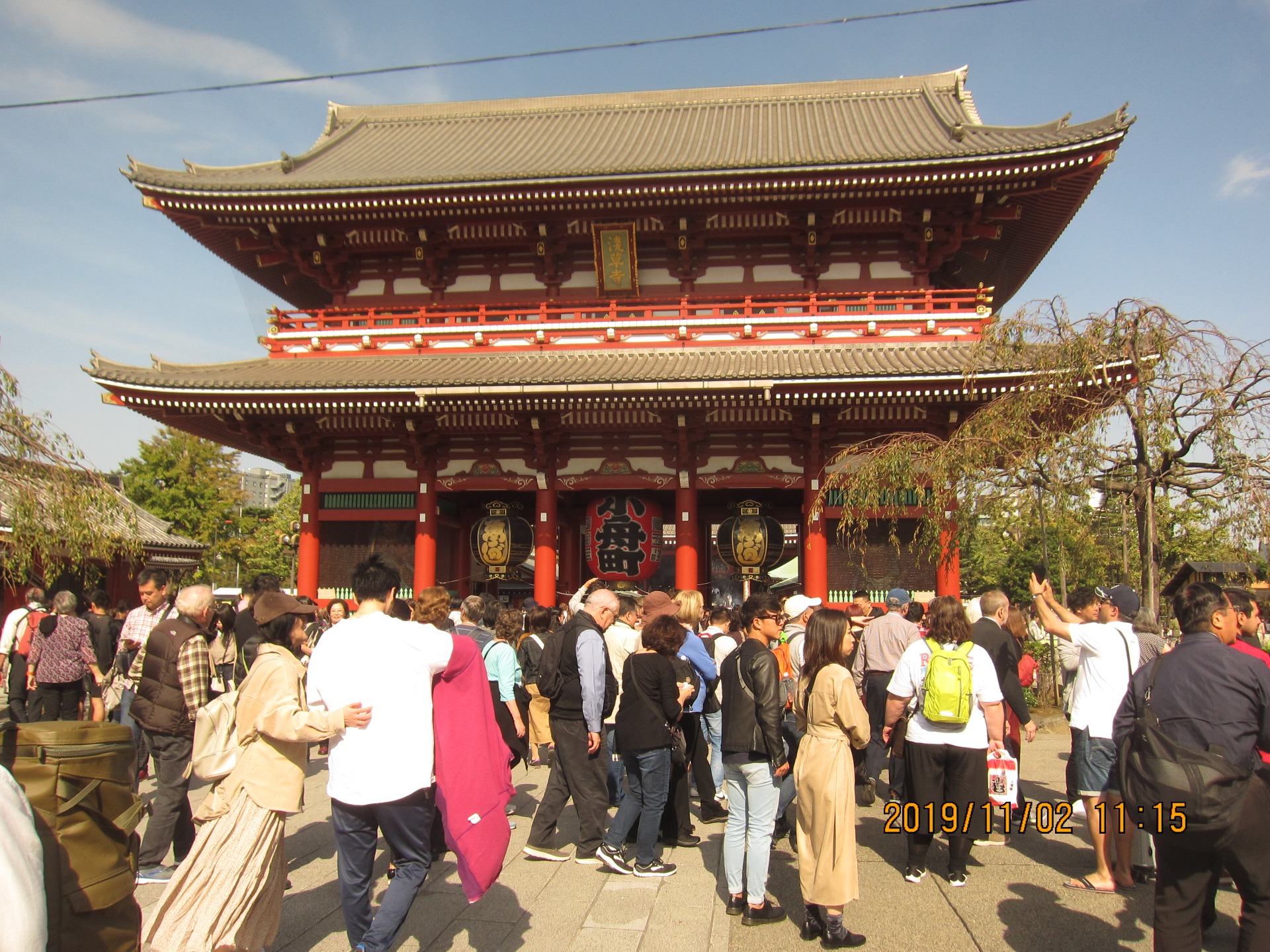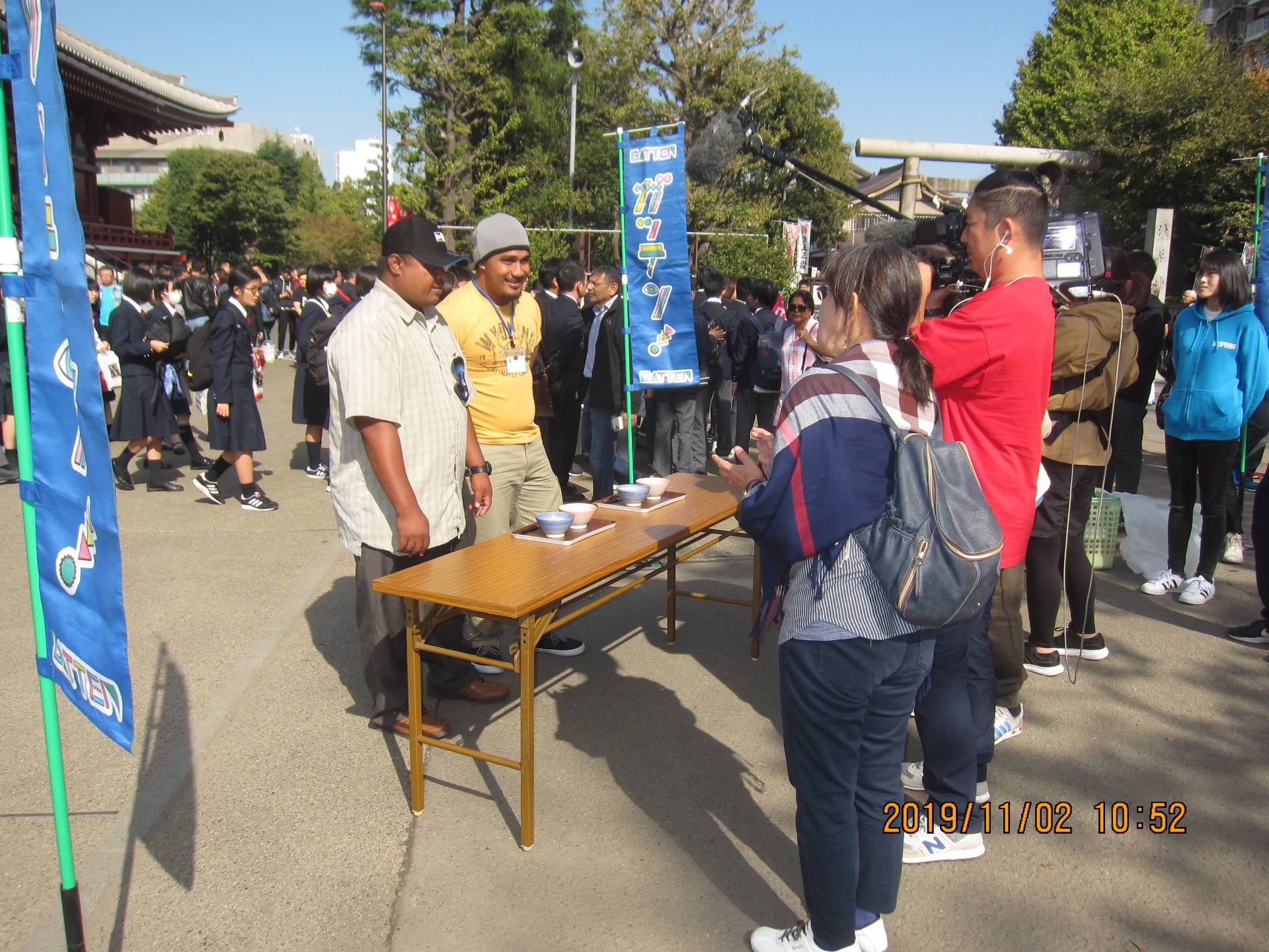 その後、浅草にマイクロバスで移動し、浅草寺から徒歩で各自が歴史的な街並みの整備状況を視察しました。外国観光客を含め、非常に多い人波に驚いていました。途中、NHKテレビ放送の収録に研修生2人が協力しました。予定よりやや遅れ、午後7時前に那覇空港に全員無事で戻りました。