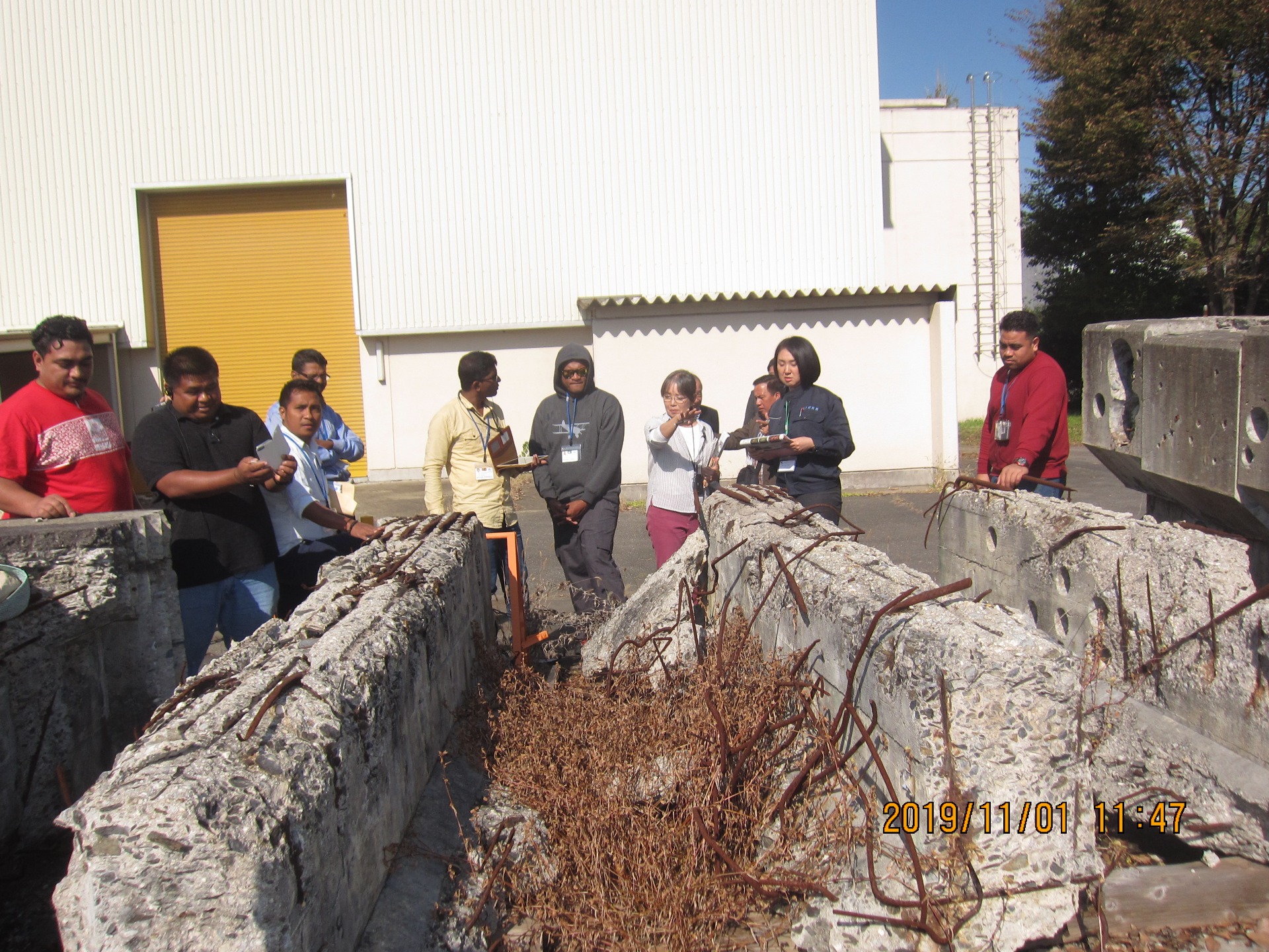 In the afternoon, we had lectures given by Prof. Shimozato and his laboratory staff. After the lecture, they showed us exposure experiment field, and laboratory facilities. Participants observed with high interest the progress of corrosion in steel members and bolt cap, etc., taking pictures and videos.
