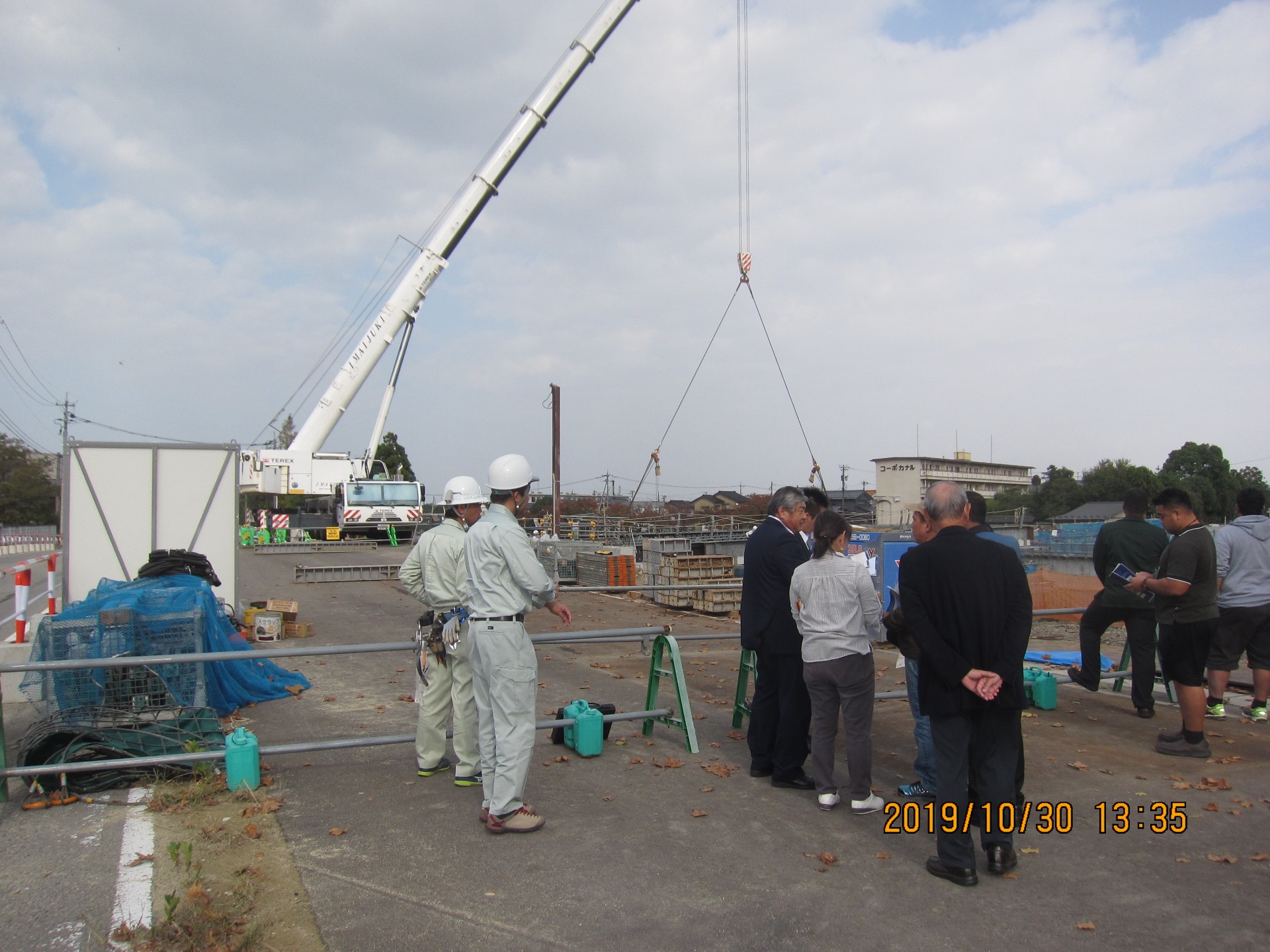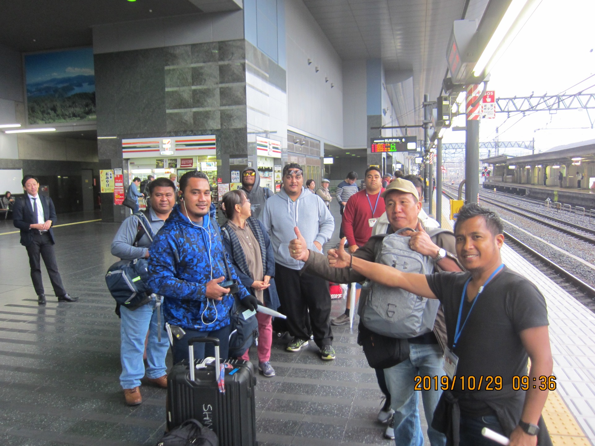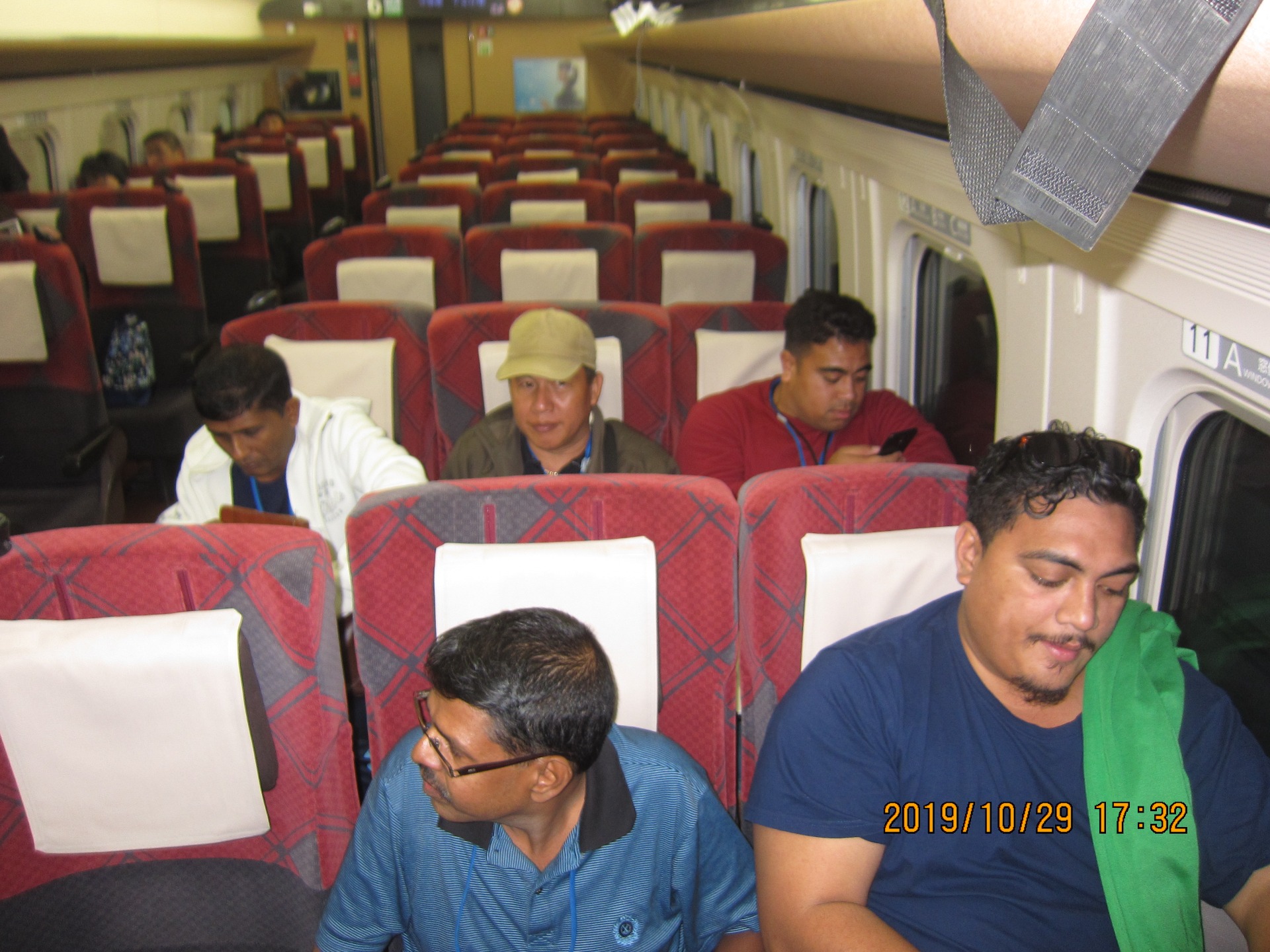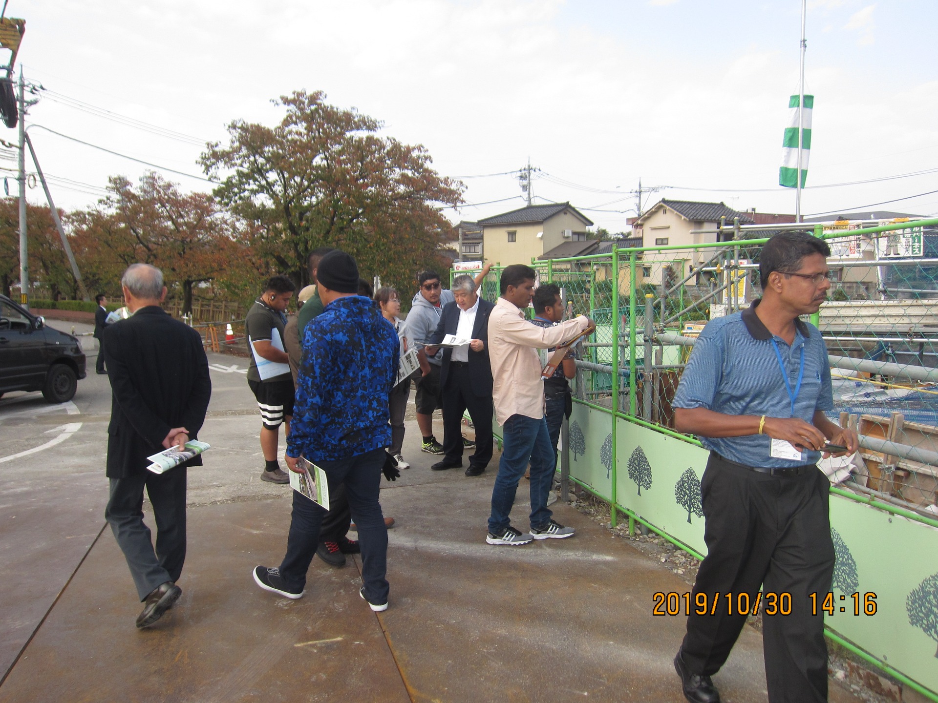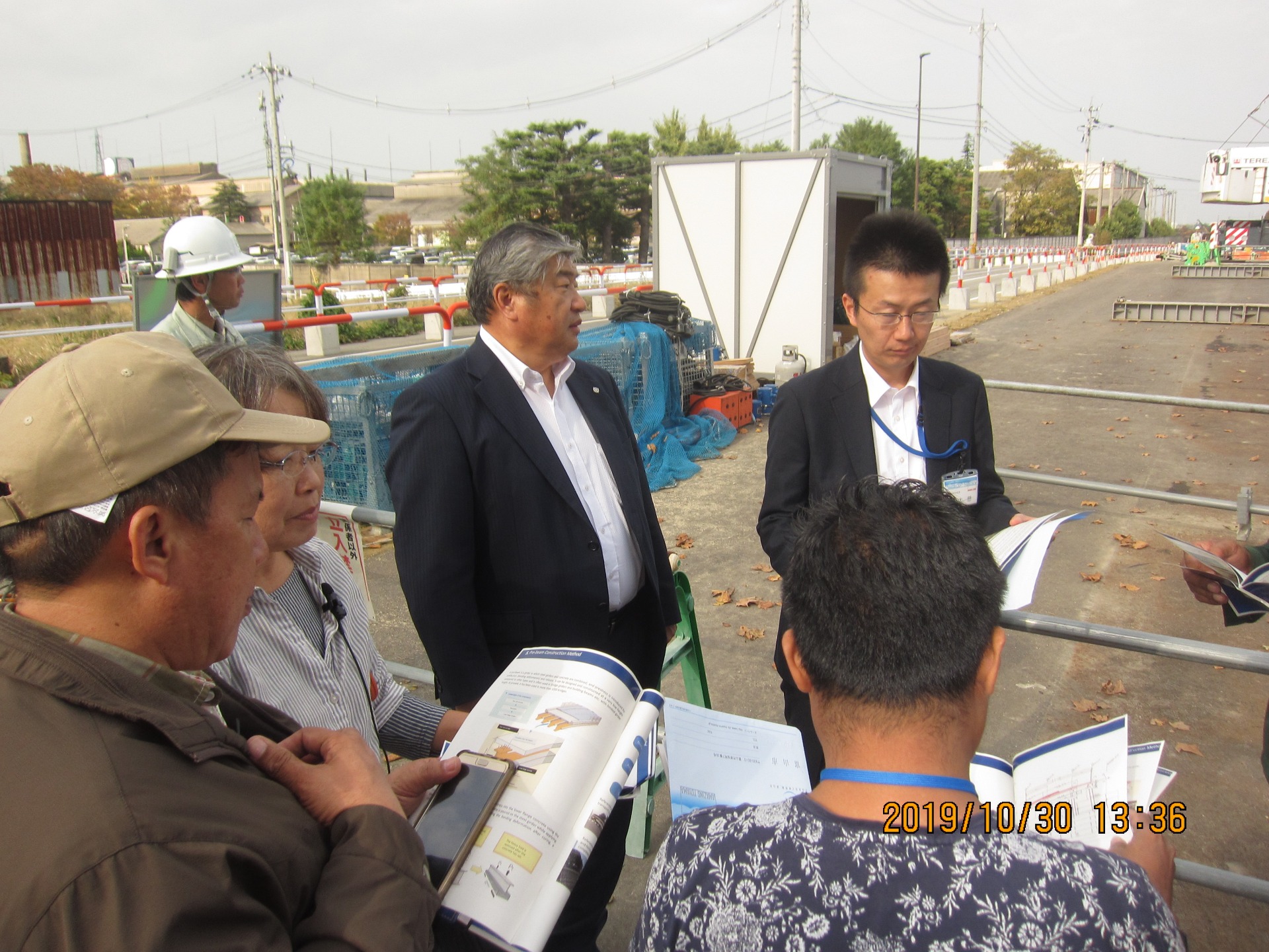 This is a week of study tour in the mainland Japan. We took an express train, "Thunderbird", to move from Kyoto to Fukui to observe a site near Fukui Station where railway for Hokuriku Shinkansen (super express "bullet" train) was under construction. It was a massive project covering an extensive length between Fukui Station to Asua River and employing multiple construction methods. The foundation had already been constructed. Mr. Horita, Group Director, and Mr. Masuda, Director of branch office briefed us the overview of the project and explained construction methods, and escorted us to the site. Participants saw a work of cantilever bridge being prepared and were inquisitively asking questions about method of foundation works. In the evening, we moved to Toyama after transferring train to Shinkansen. The engineers of Toyama City Office welcomed us to dinner at a local restaurant.