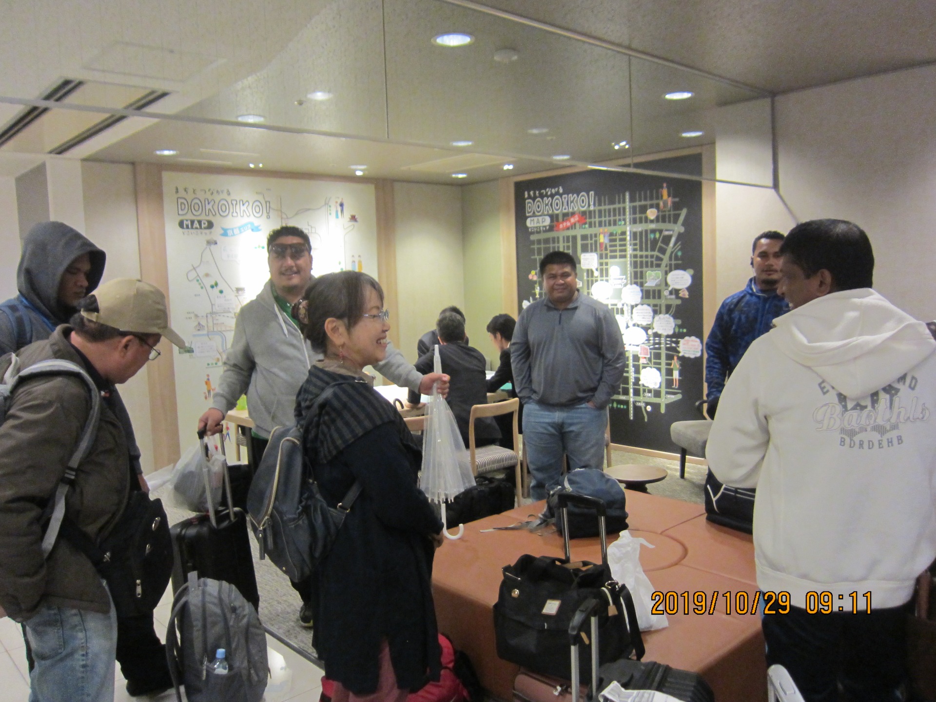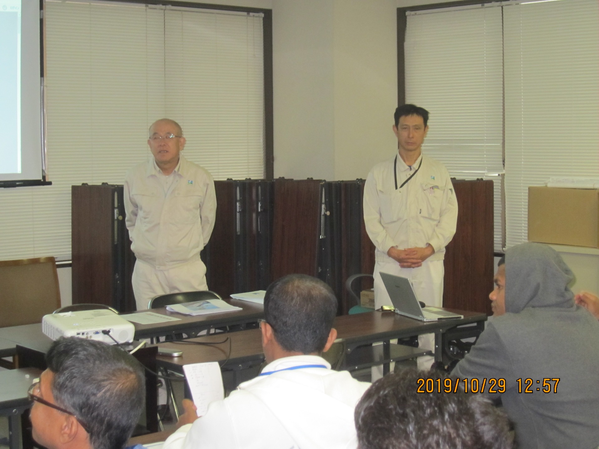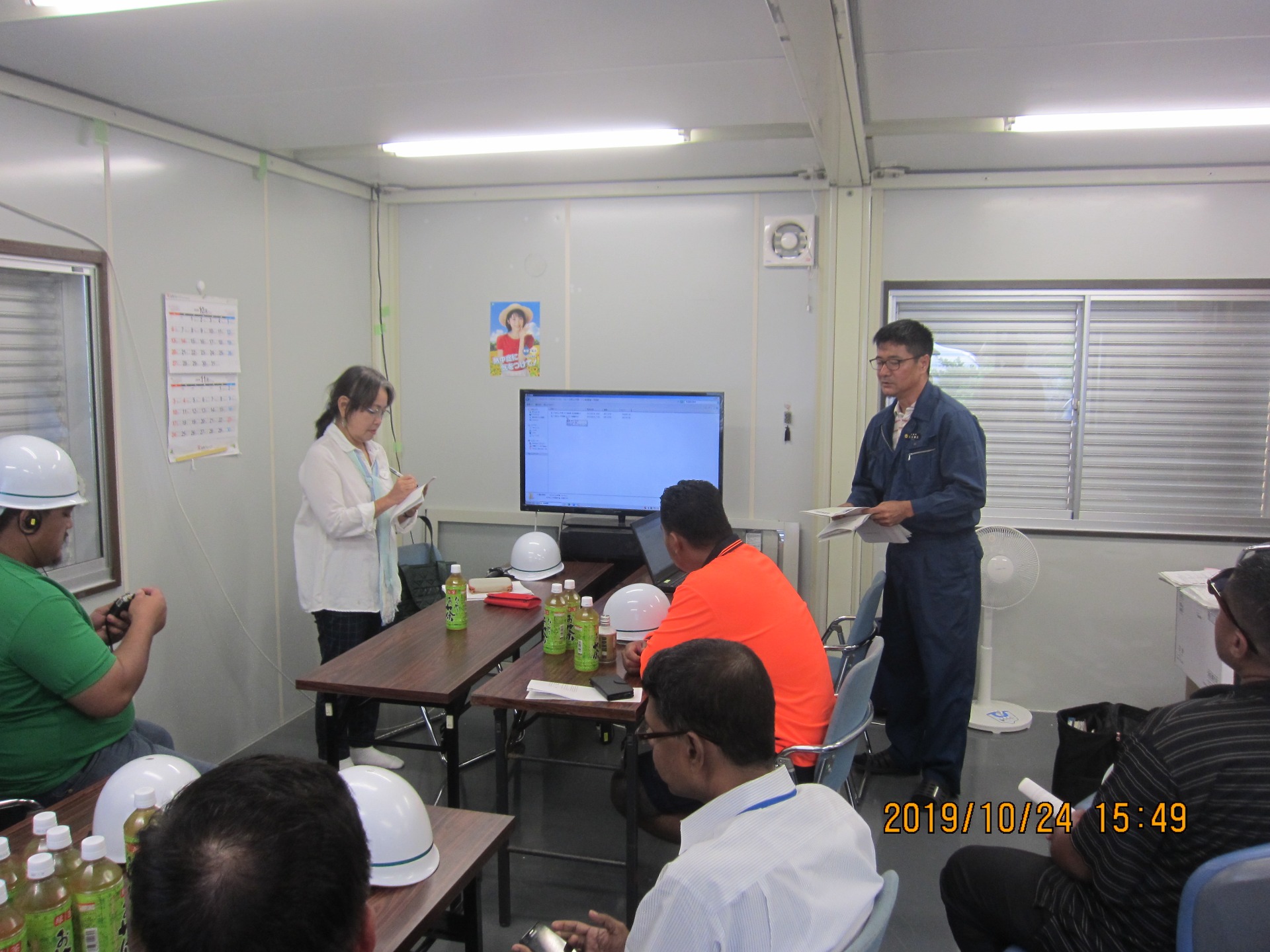 本日10時から研修生とJICA担当者の「評価会」でした。以前のアンケート結果を踏まえ、今回の研修で体験した感想や意見を研修生にひとりひとり話してもらいました。研修事業である講義、現場見学・視察、県外視察や、JICA宿舎での生活等の対し、概ね良い評価を得られました。