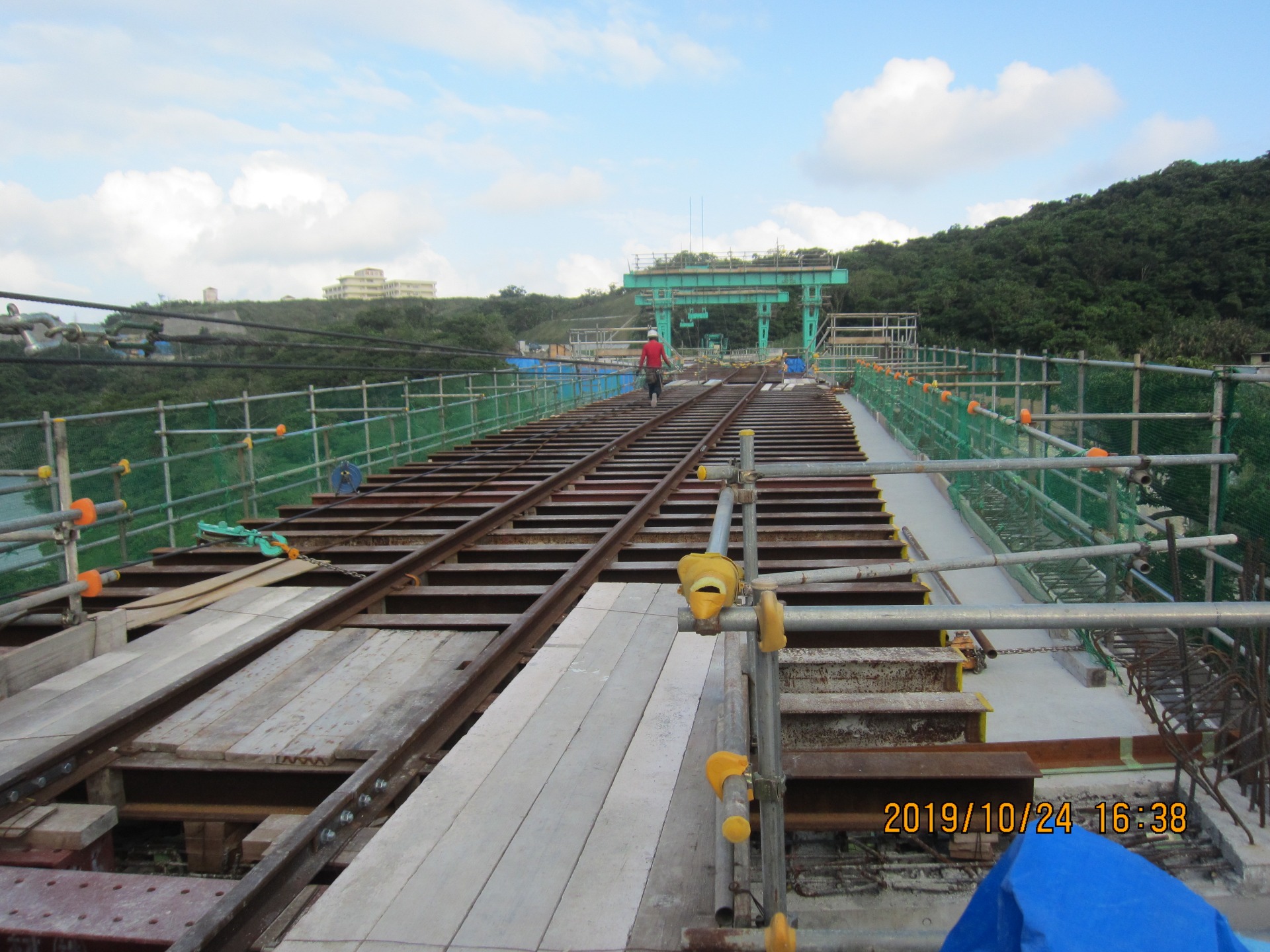The first site in the afternoon was Seikai Bridge of Kaichu Road where the bridge pier reinforcement work to meet requirement of anti-seismic standard was ongoing. We were able to see Epoxy resin coated rebars arranged around the pier. The second site was the erection of bridge girder at Southern East Road. It was a rare chance that we saw the drawing out of the girders.