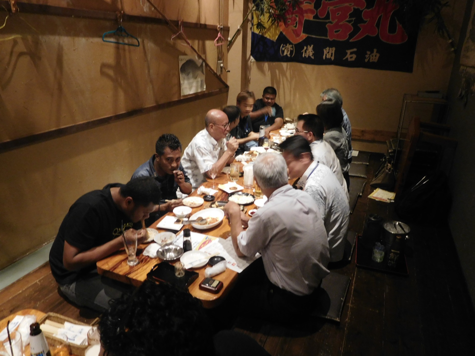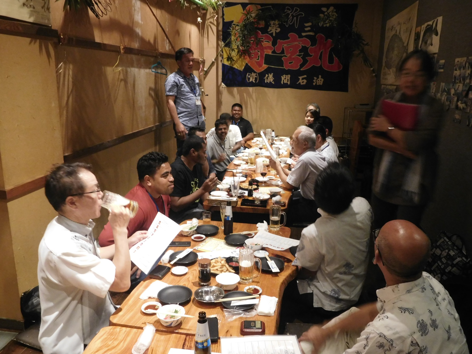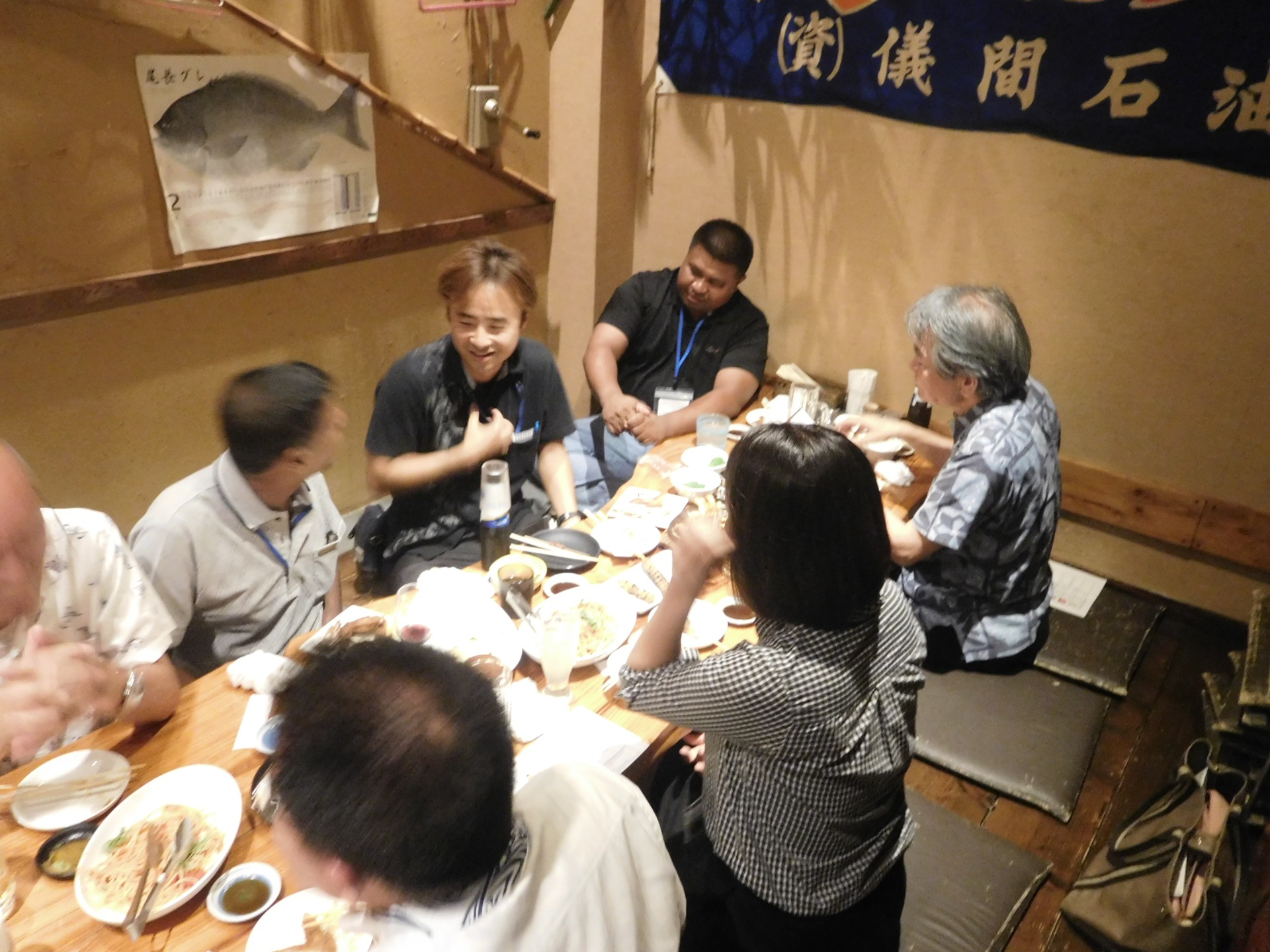 又、夜には那覇市内の居酒屋で懇親会を開催し、国、沖縄県、大学、及び民間会社の講師の方々とオリオンビールやワイン、泡盛等を飲みながら楽しい時間を過ごしました。